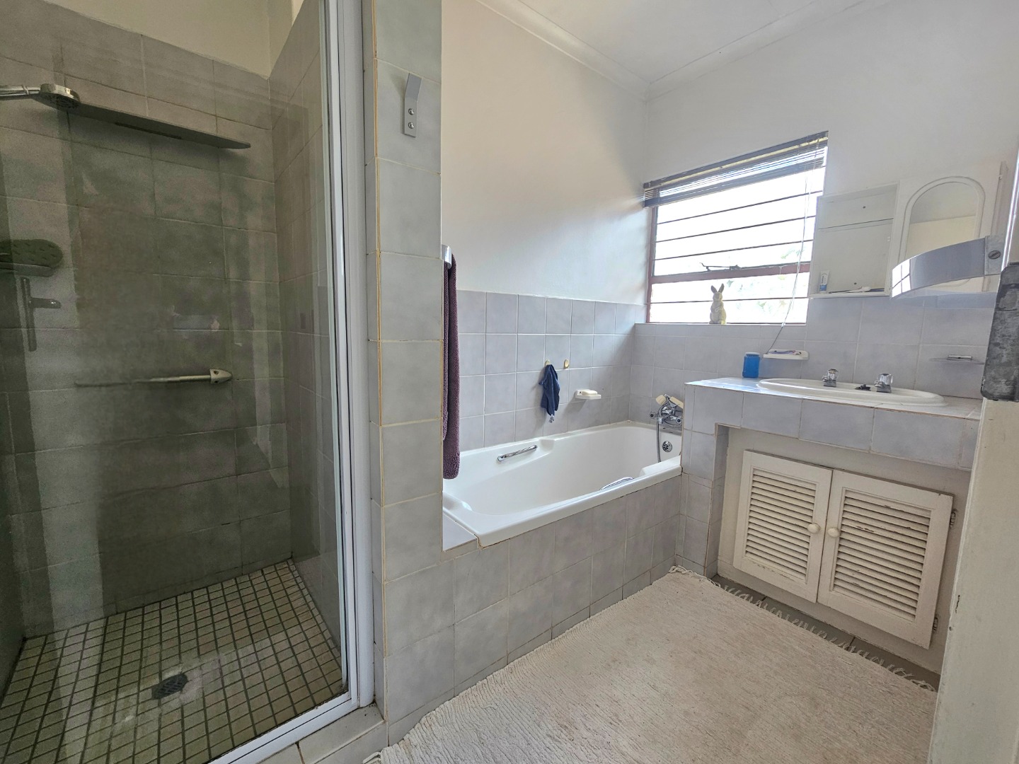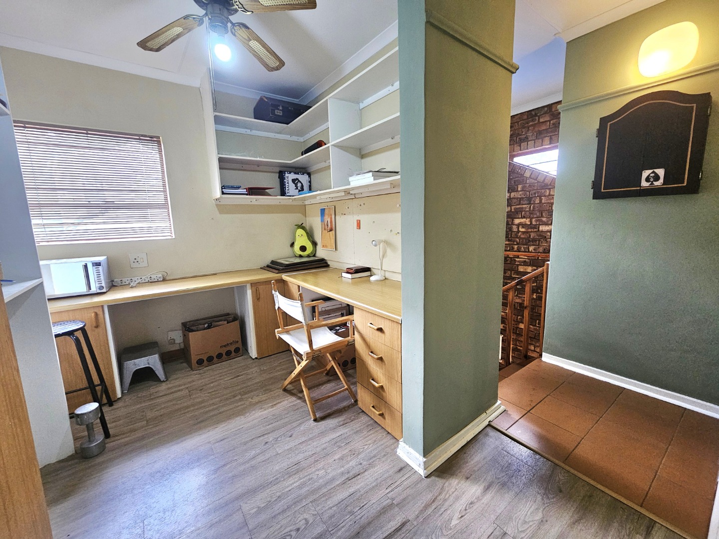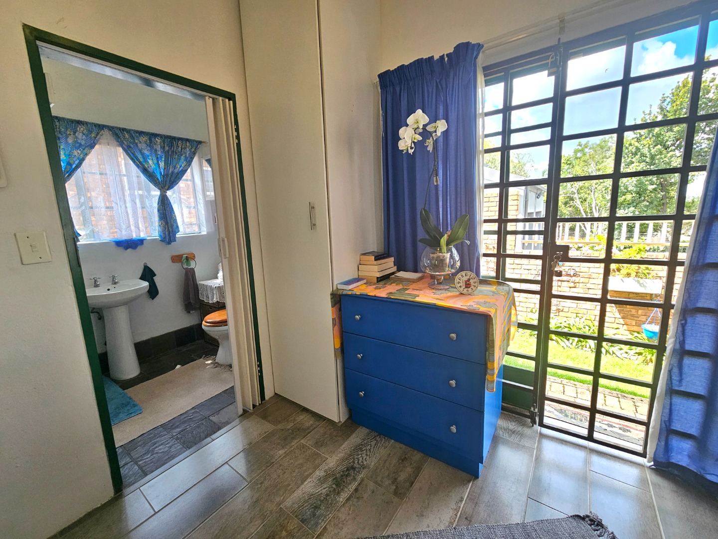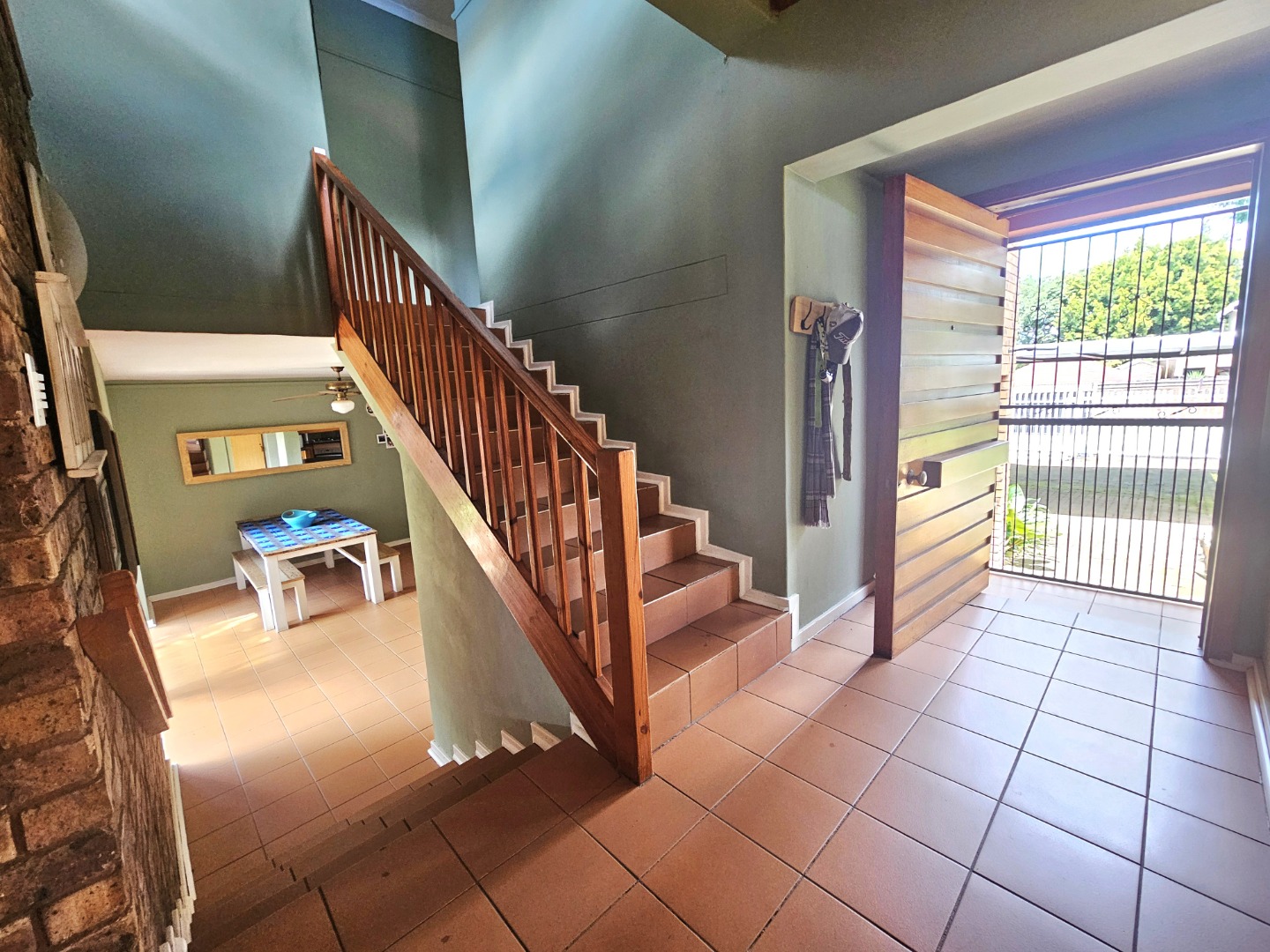 The principal dwelling features three well-appointed bedrooms and a dedicated study, catering to both family life and professional pursuits. The upper level is dedicated to a study and a master en-suite bedroom, a private sanctuary complete with air conditioning, a ceiling fan, and a private balcony affording serene vistas of the sparkling swimming pool. Downstairs boasts two spacious lounges one with a door leading to the garden ideal for both intimate gatherings and grand entertaining. These flow seamlessly into the dining room which is open plan with the kitchen. The kitchen has ample cupboards extending into the scullery with a big pantry, a laundry shute and space for 2 fridges and 3 appliances.