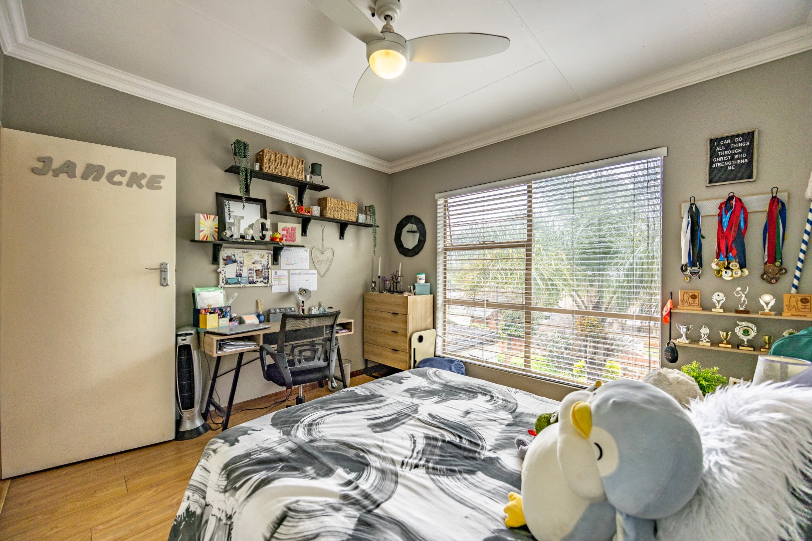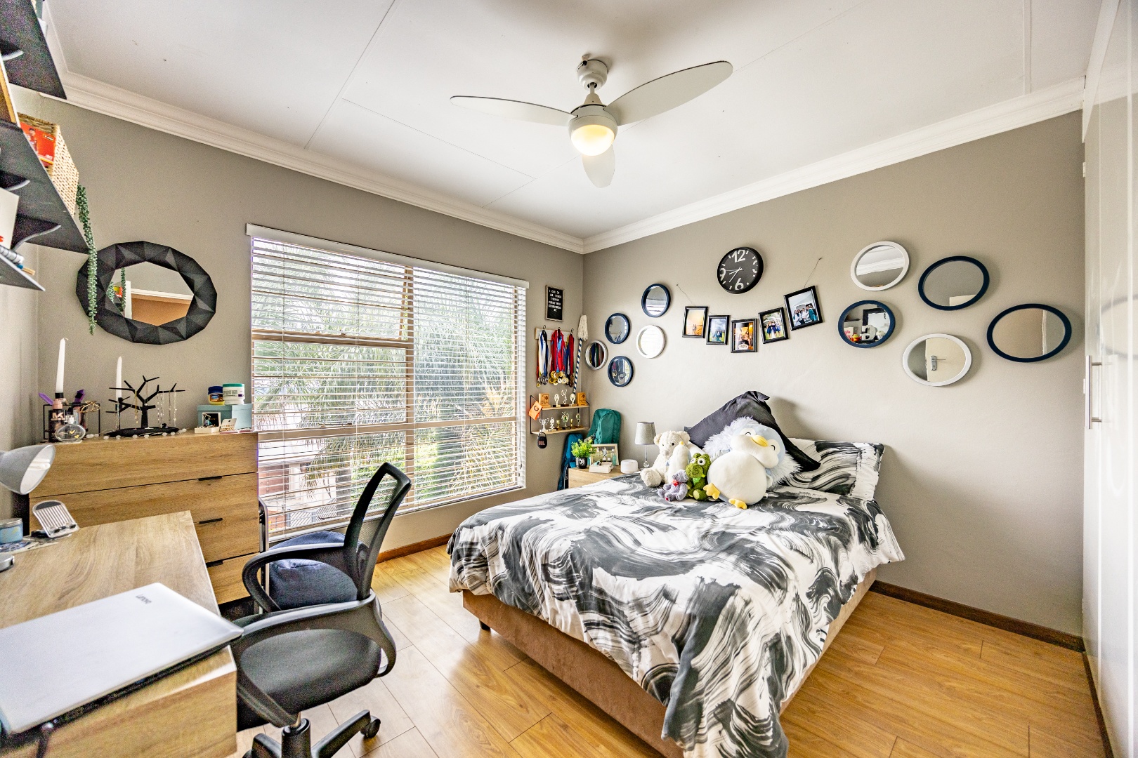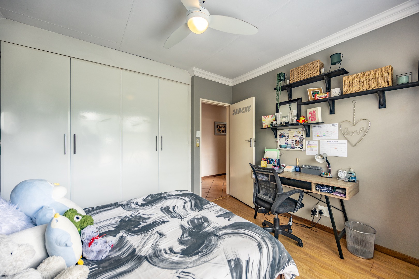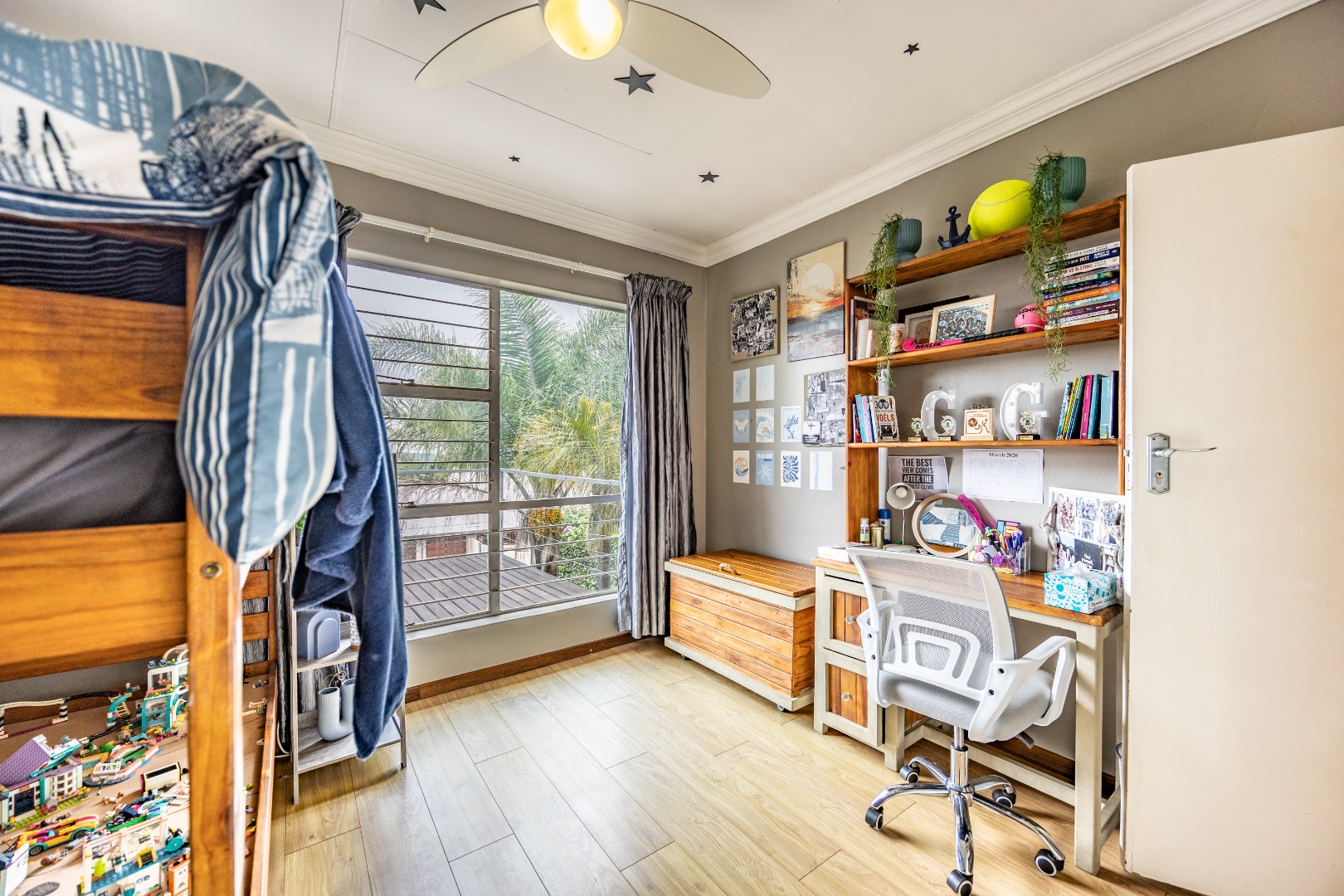 Upstairs, the home offers four comfortable bedrooms and a study, ideal for families or those working from home. The main bedroom forms a private retreat, complete with a walk-in cupboard, full en-suite bathroom, and a balcony deck overlooking Moreleta Park, where the views stretch across the suburb. It’s the perfect place to start the day with fresh air and sunlight or unwind in the evening as the neighbourhood lights begin to glow. Located in a quiet, established part of Moreleta Park with controlled access and excellent security, and within easy reach of schools, shopping centres, and main routes, this home offers a lifestyle defined by space, independence, and effortless everyday living. Come experience it in person today!