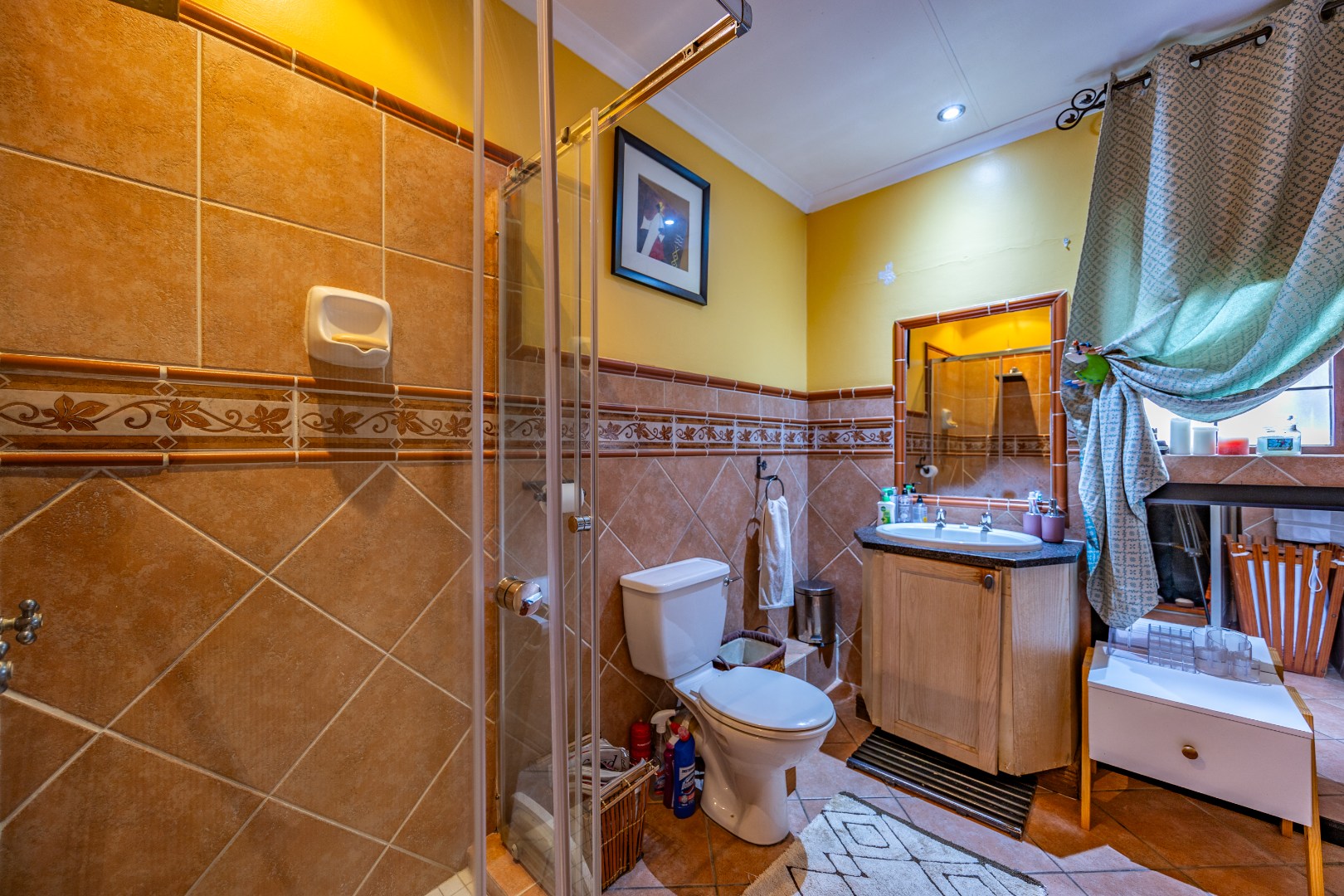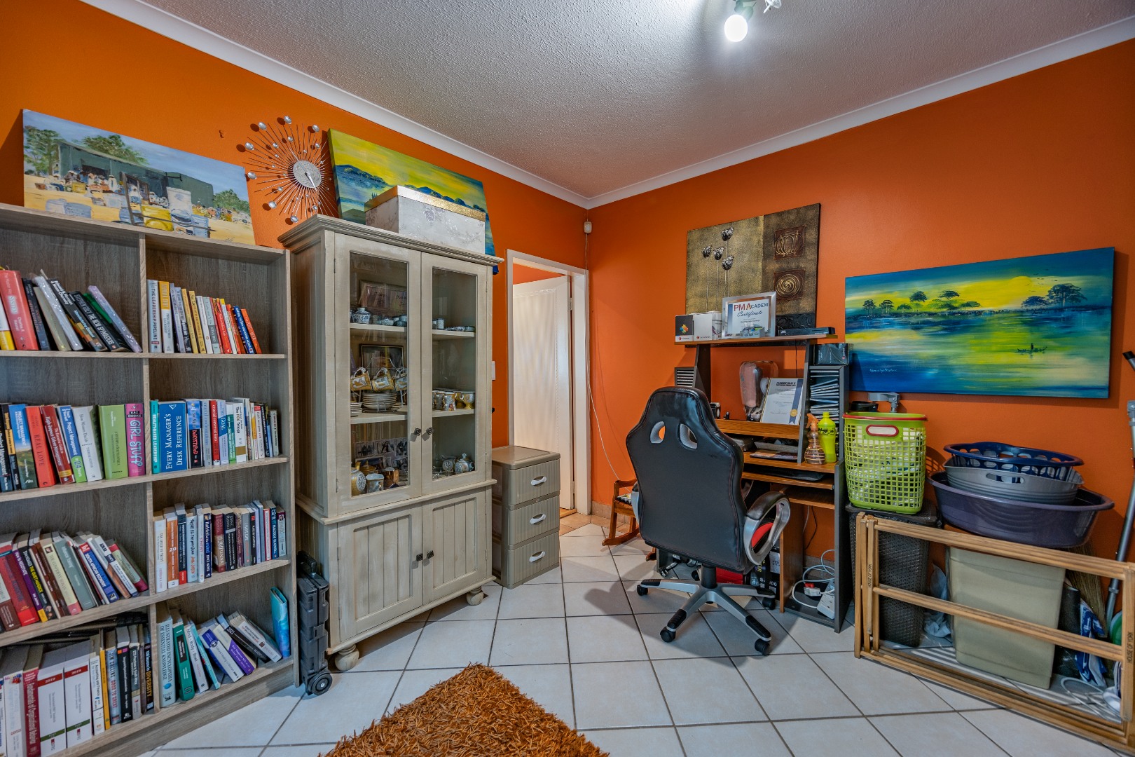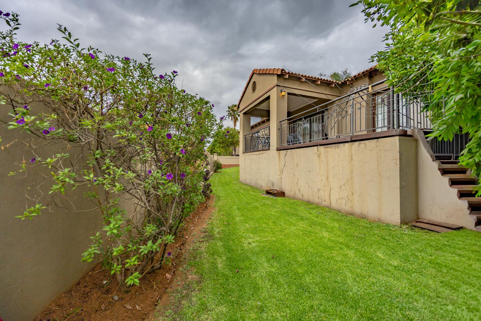 On one wing you’ll find three generous bedrooms, with built-in cupboards; the master features its own private ensuite. On the opposite side, the fourth bedroom sits adjacent the living area perfect for a teenager, guest suite or work-from-home retreat. Outdoors, a lush, fully fenced garden offers peace of mind for kids and pets, while a covered patio with built-in braai stands ready for weekend gatherings under the stars. With a double automated garage, separate laundry/storage zone, fibre-ready connectivity and estate security, all rounded off with the level of finish you’d expect from a discerning homeowner, this is turnkey.