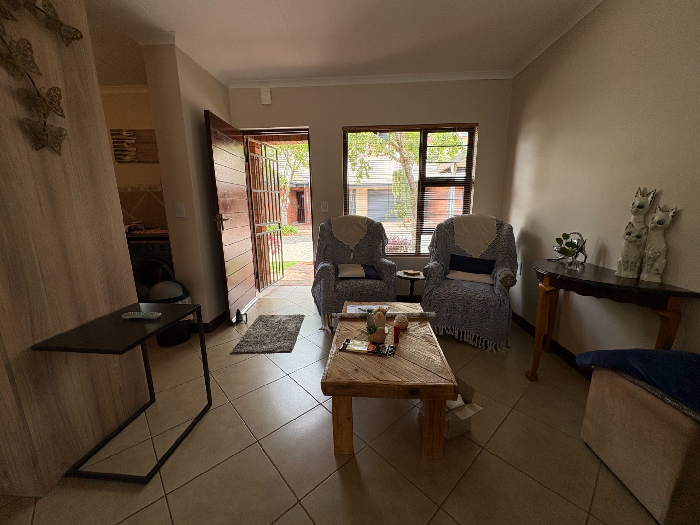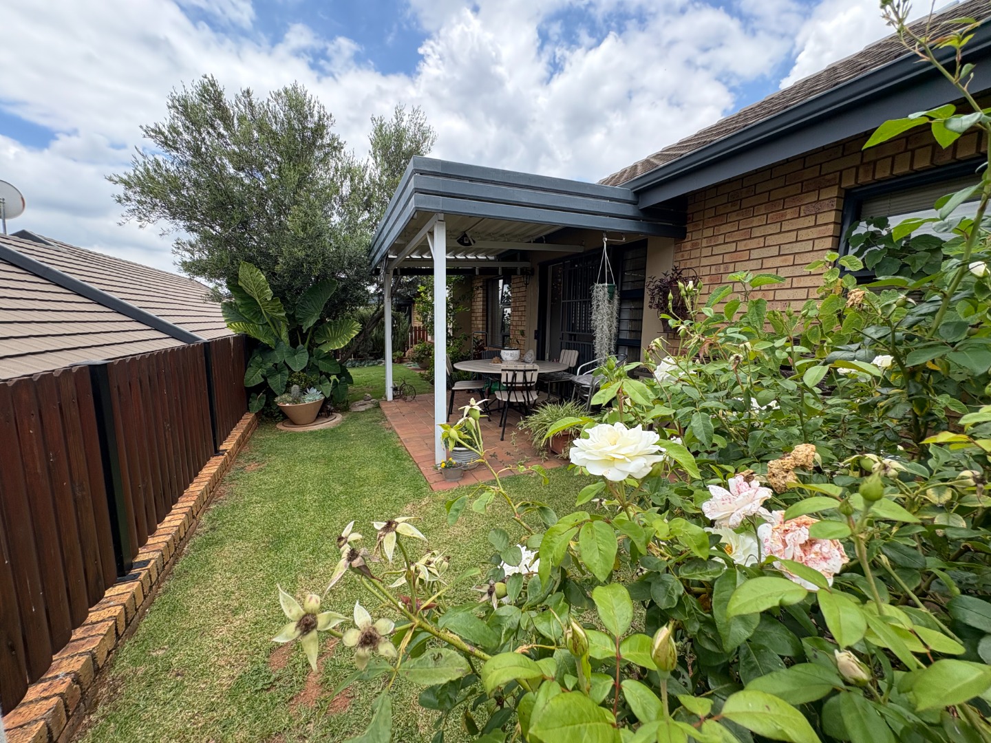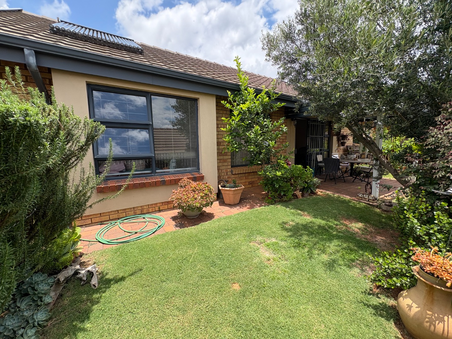 Situated in the highly regarded Bronberg Retirement Estate, this well-kept 2-bedroom townhouse offers the perfect balance between comfort, security and easy living — exactly what most retirees are looking for. The home features two spacious bedrooms with built-in cupboards and a wheelchair-friendly bathroom fitted with a generous shower and assistance rails, making it practical and future-proof. The neat kitchen is fitted with an electric stove and oven, includes space for a single-door fridge, and is complemented by a solar geyser for energy-efficient living. The open-plan dining and lounge area is spacious and inviting, flowing effortlessly onto a covered patio with a Louvre roof. From here, you look onto a private, spacious garden that is pet friendly — ideal for relaxed outdoor living. A single garage leads directly into the house, offering safe, convenient access without stepping outside, with an additional carport in front of the garage.