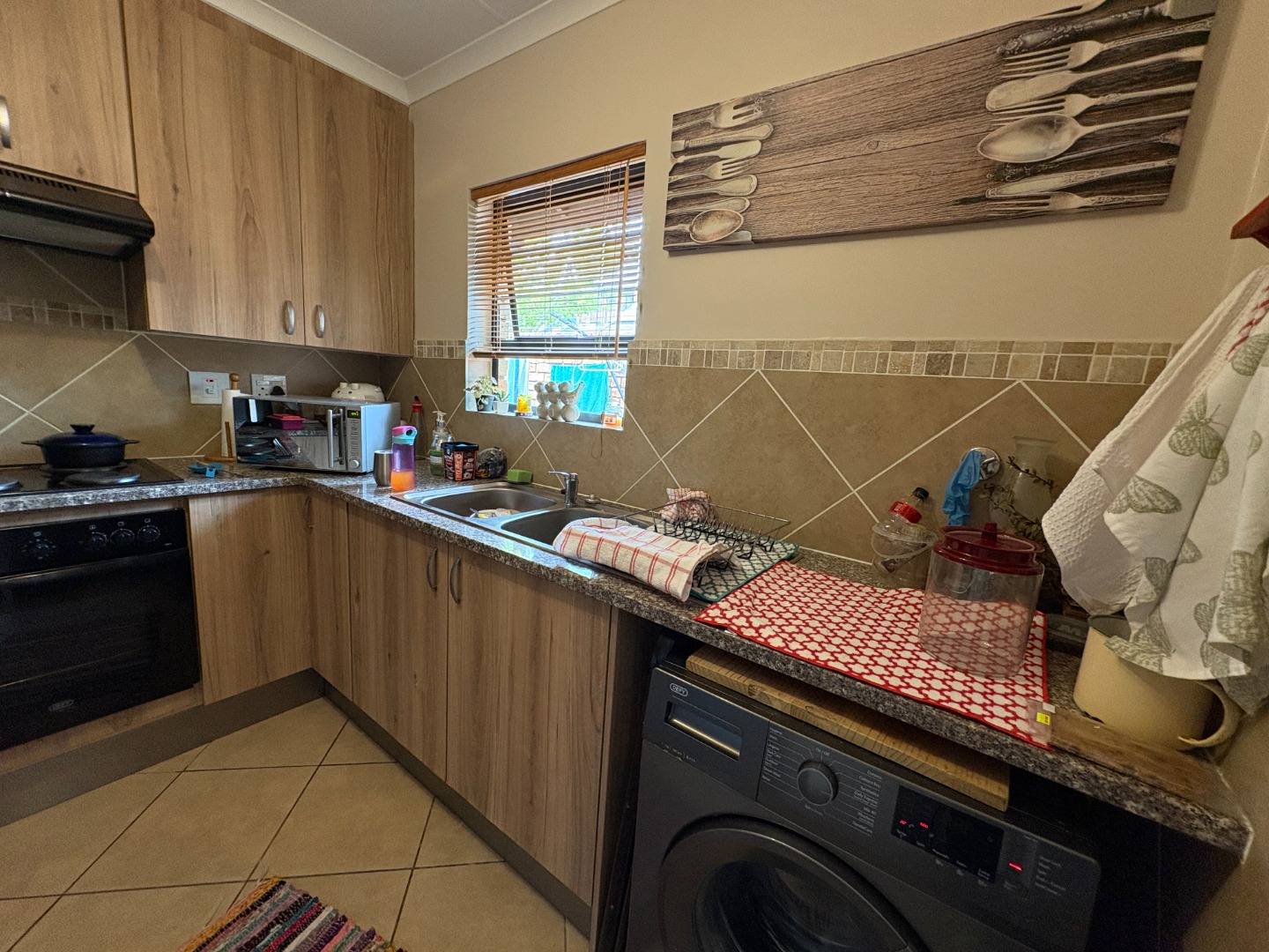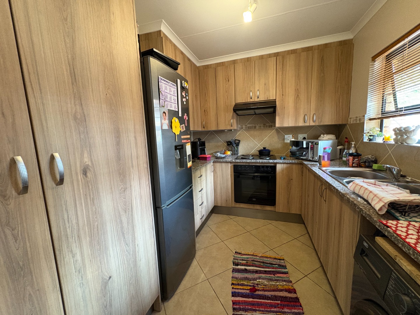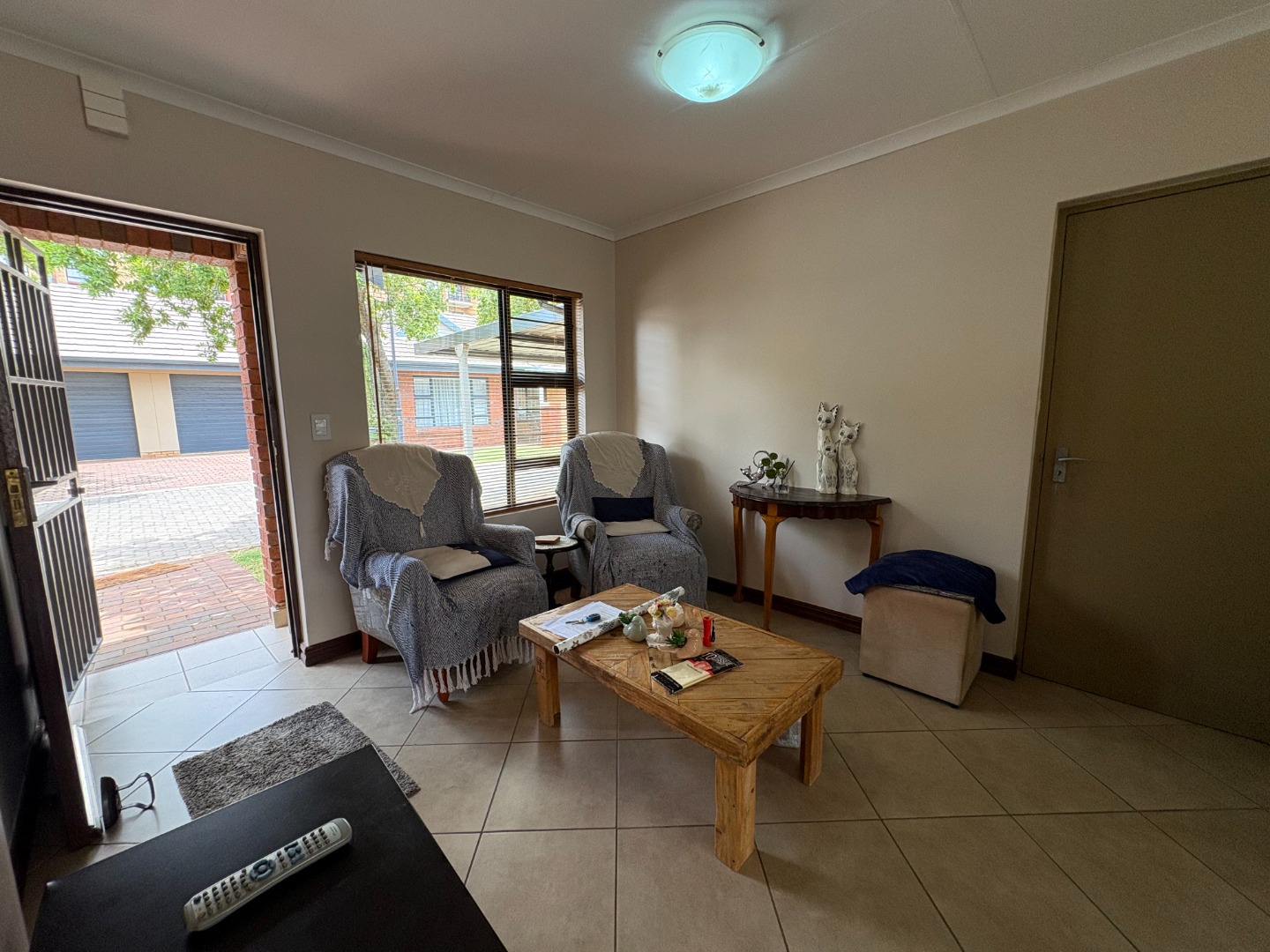 Situated in the highly regarded Bronberg Retirement Estate, this well-kept 2-bedroom townhouse offers the perfect balance between comfort, security and easy living — exactly what most retirees are looking for. The home features two spacious bedrooms with built-in cupboards and a wheelchair-friendly bathroom fitted with a generous shower and assistance rails, making it practical and future-proof. The neat kitchen is fitted with an electric stove and oven, includes space for a single-door fridge, and is complemented by a solar geyser for energy-efficient living. The open-plan dining and lounge area is spacious and inviting, flowing effortlessly onto a covered patio with a Louvre roof. From here, you look onto a private, spacious garden that is pet friendly — ideal for relaxed outdoor living. A single garage leads directly into the house, offering safe, convenient access without stepping outside, with an additional carport in front of the garage.