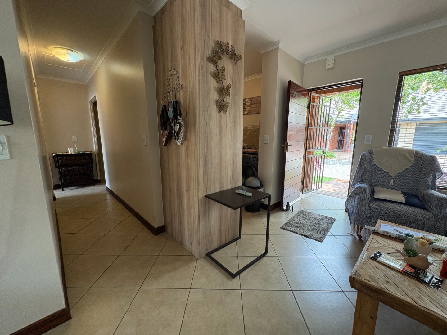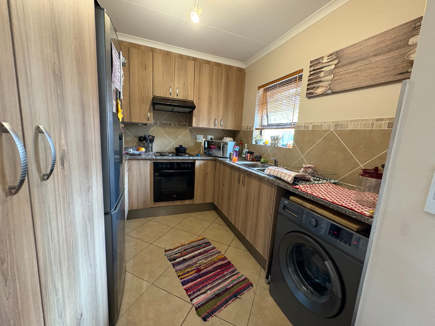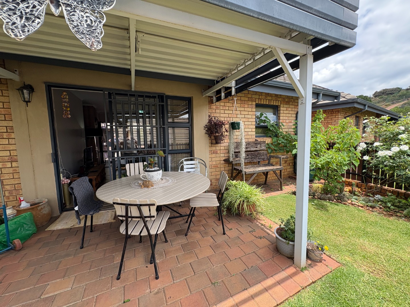 Situated in the highly regarded Bronberg Retirement Estate, this well-kept 2-bedroom townhouse offers the perfect balance between comfort, security and easy living — exactly what most retirees are looking for. The home features two spacious bedrooms with built-in cupboards and a wheelchair-friendly bathroom fitted with a generous shower and assistance rails, making it practical and future-proof. The neat kitchen is fitted with an electric stove and oven, includes space for a single-door fridge, and is complemented by a solar geyser for energy-efficient living. The open-plan dining and lounge area is spacious and inviting, flowing effortlessly onto a covered patio with a Louvre roof. From here, you look onto a private, spacious garden that is pet friendly — ideal for relaxed outdoor living. A single garage leads directly into the house, offering safe, convenient access without stepping outside, with an additional carport in front of the garage.