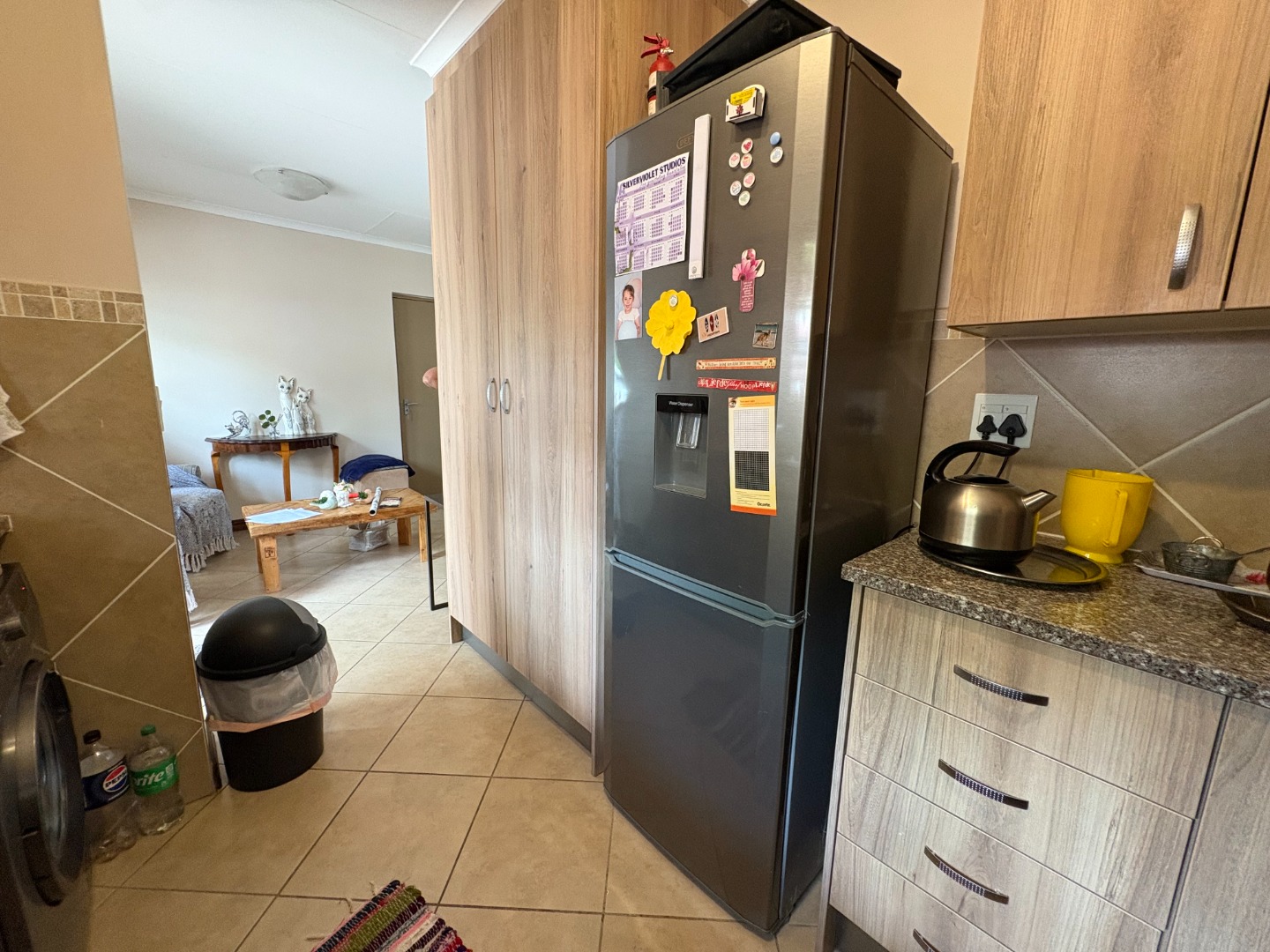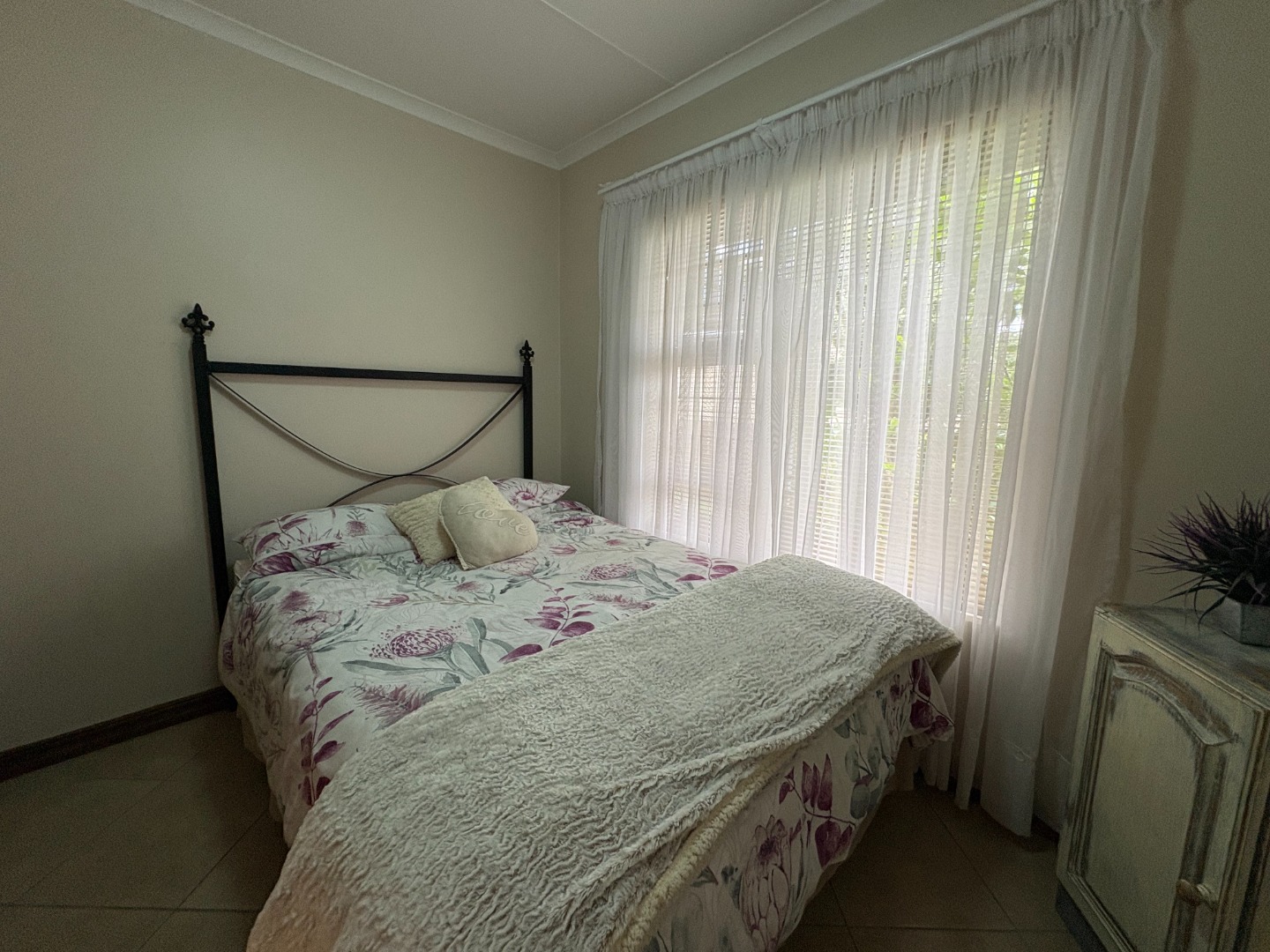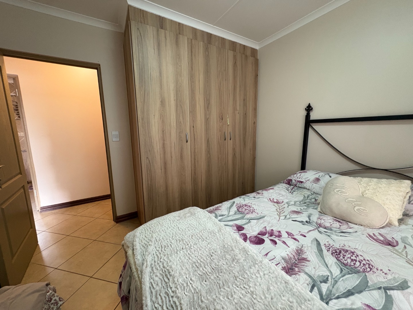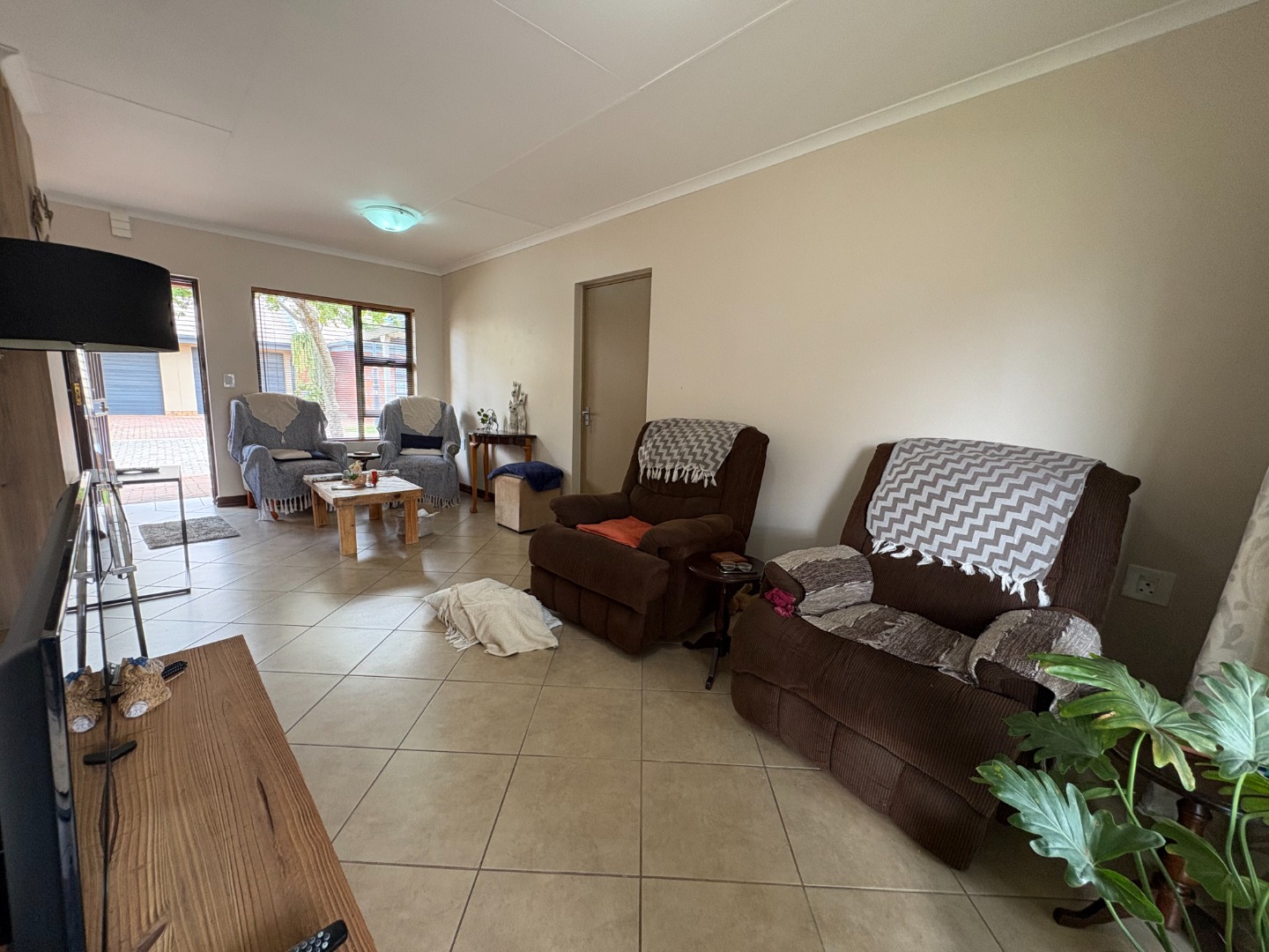 Situated in the highly regarded Bronberg Retirement Estate, this well-kept 2-bedroom townhouse offers the perfect balance between comfort, security and easy living — exactly what most retirees are looking for. The home features two spacious bedrooms with built-in cupboards and a wheelchair-friendly bathroom fitted with a generous shower and assistance rails, making it practical and future-proof. The neat kitchen is fitted with an electric stove and oven, includes space for a single-door fridge, and is complemented by a solar geyser for energy-efficient living. The open-plan dining and lounge area is spacious and inviting, flowing effortlessly onto a covered patio with a Louvre roof. From here, you look onto a private, spacious garden that is pet friendly — ideal for relaxed outdoor living. A single garage leads directly into the house, offering safe, convenient access without stepping outside, with an additional carport in front of the garage.