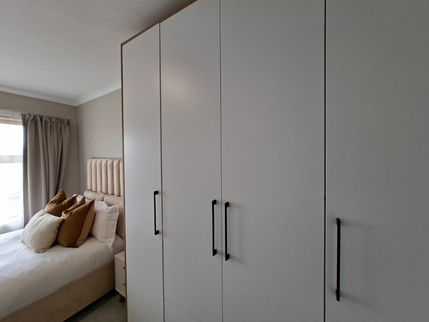 The open-plan kitchen and living area is thoughtfully designed to create an effortless flow, ideal for both relaxed evenings at home and easy entertaining. Modern finishes, sleek cabinetry, and quality fittings give the kitchen a clean, contemporary feel, while the lounge opens out to a private balcony or patio that invites in natural light and fresh air. Both bedrooms are generously proportioned with built-in cupboards, offering ample storage and comfort. The main bedroom features its own en-suite bathroom, providing privacy and convenience, while the second bathroom is finished with the same attention to detail, serving guests or family with ease.
