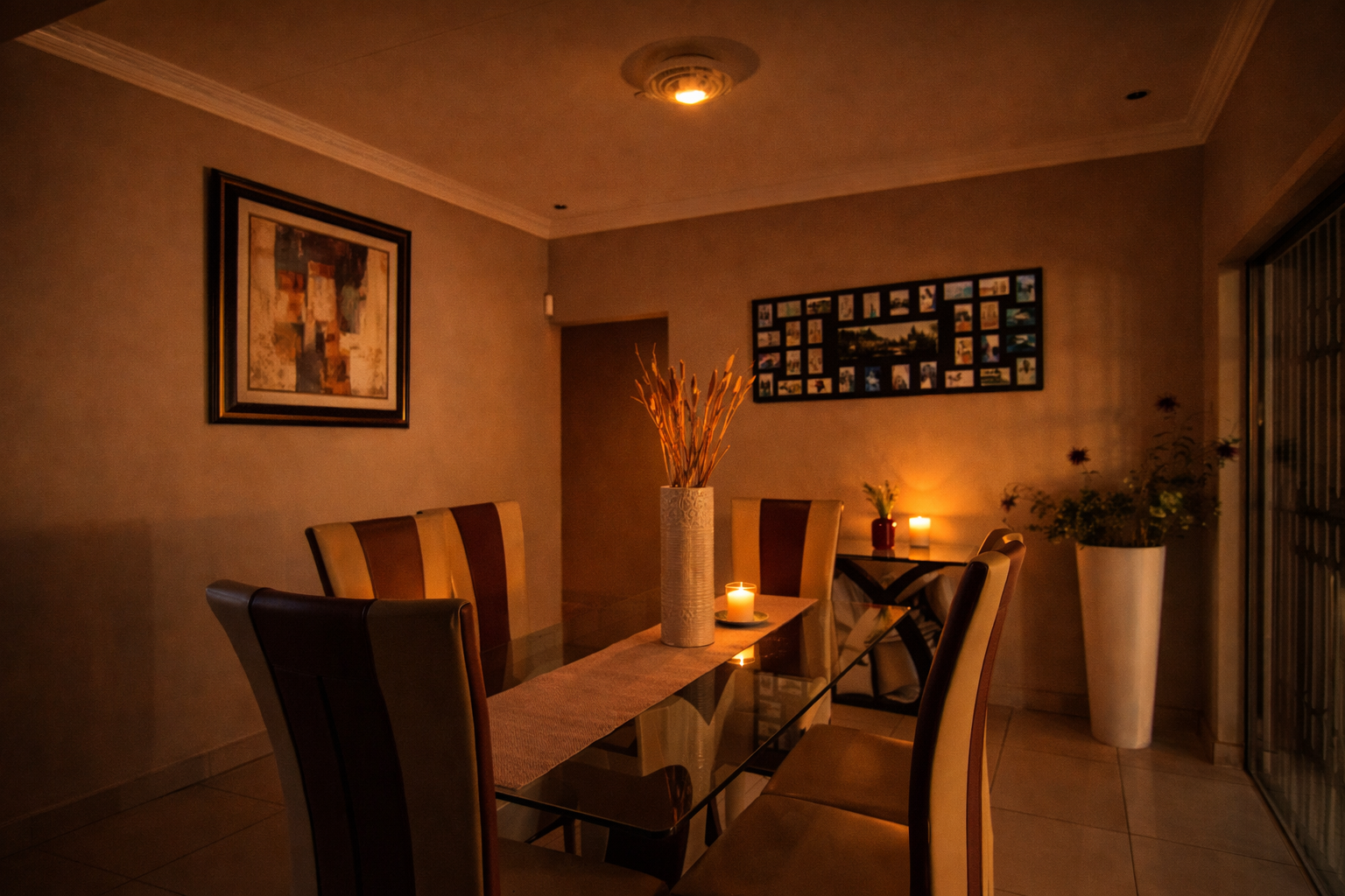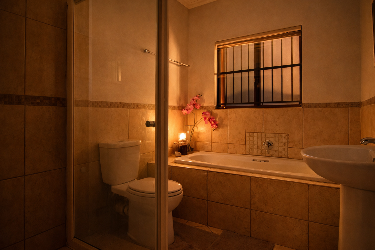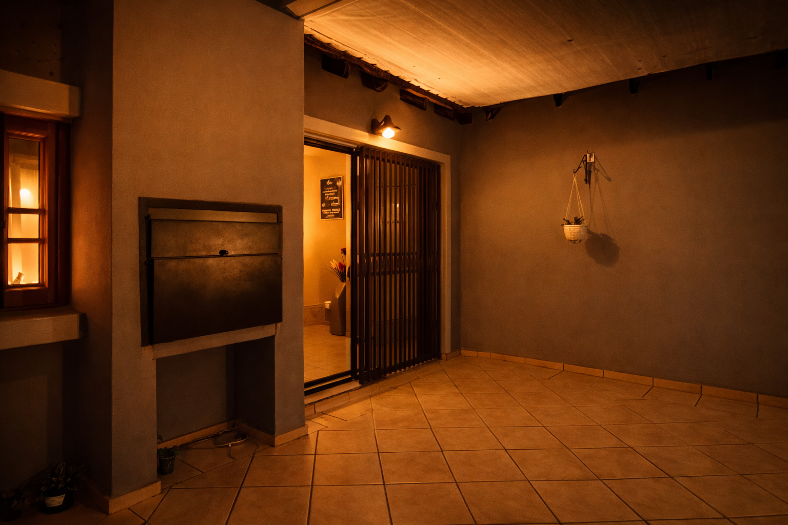 Inside, the open-plan kitchen flows to the dining area and out to the garden via sliding doors. There's a separate scullery with space for appliances, a welcoming TV lounge, and a ground-floor bedroom with built-in cupboards, serviced by a full bathroom with shower, basin, and toilet. Domestic quarters with their own shower and toilet can be accessed from both inside the garage and outside.