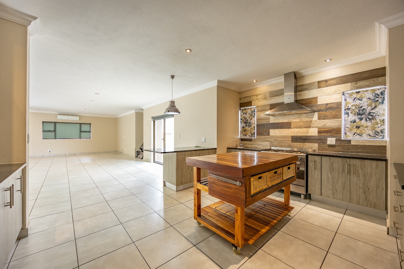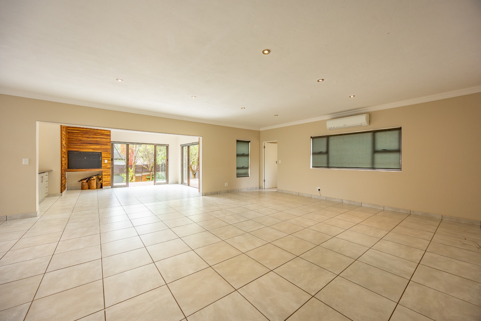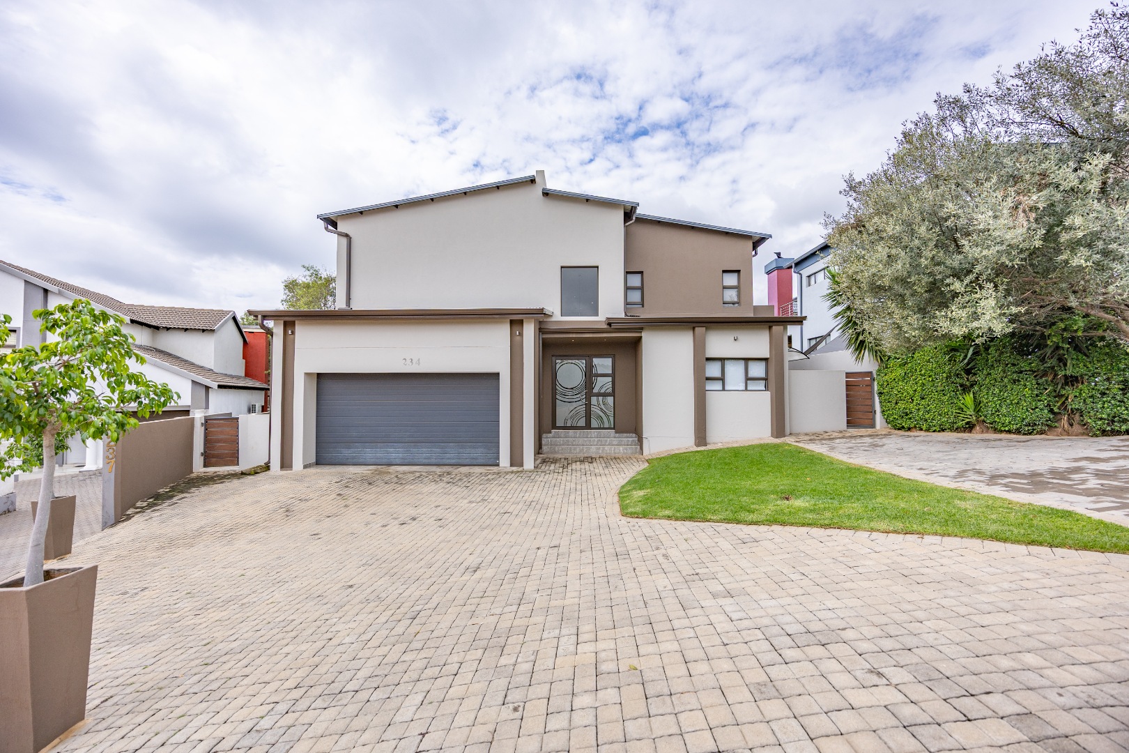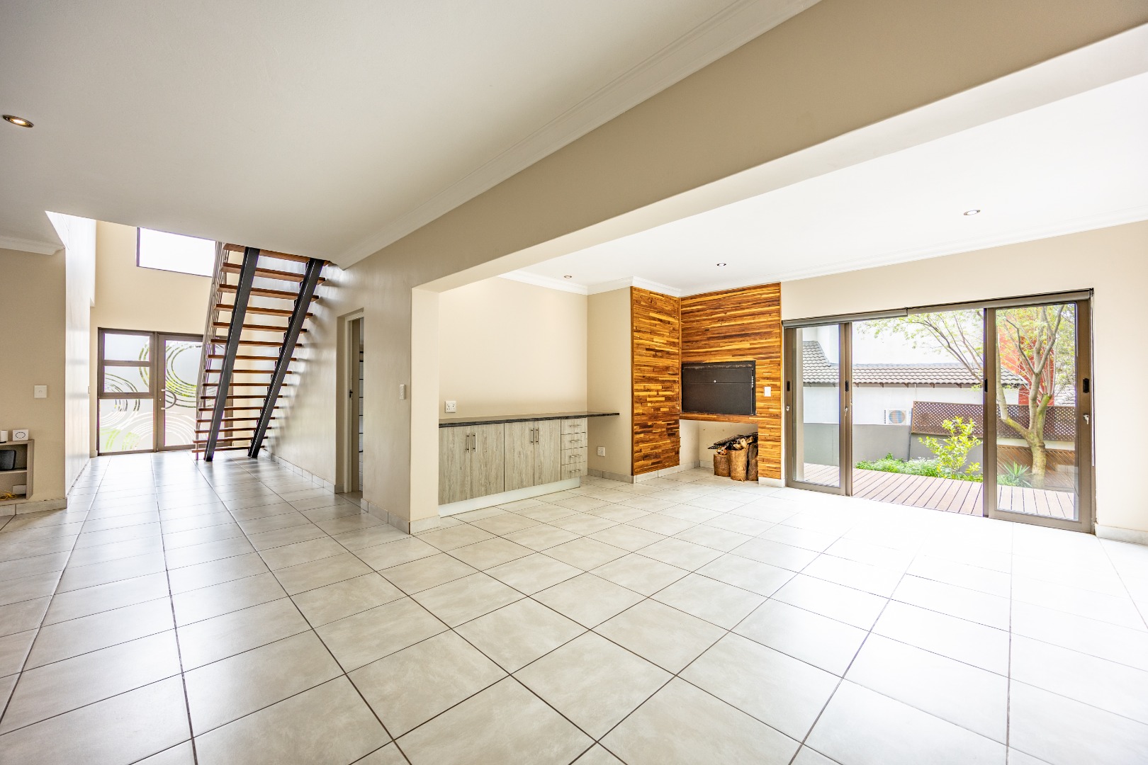 The ground floor showcases a stunning open-plan kitchen with granite countertops, breakfast nook, walk-in pantry and laundry facilities. The expansive dining and lounge area features a cozy fireplace, air conditioning and guest bathroom. The home flows effortlessly to an entertainment area with built-in braai, opening to a sunny patio with jacuzzi, all set within a spacious, private garden perfect for outdoor living.