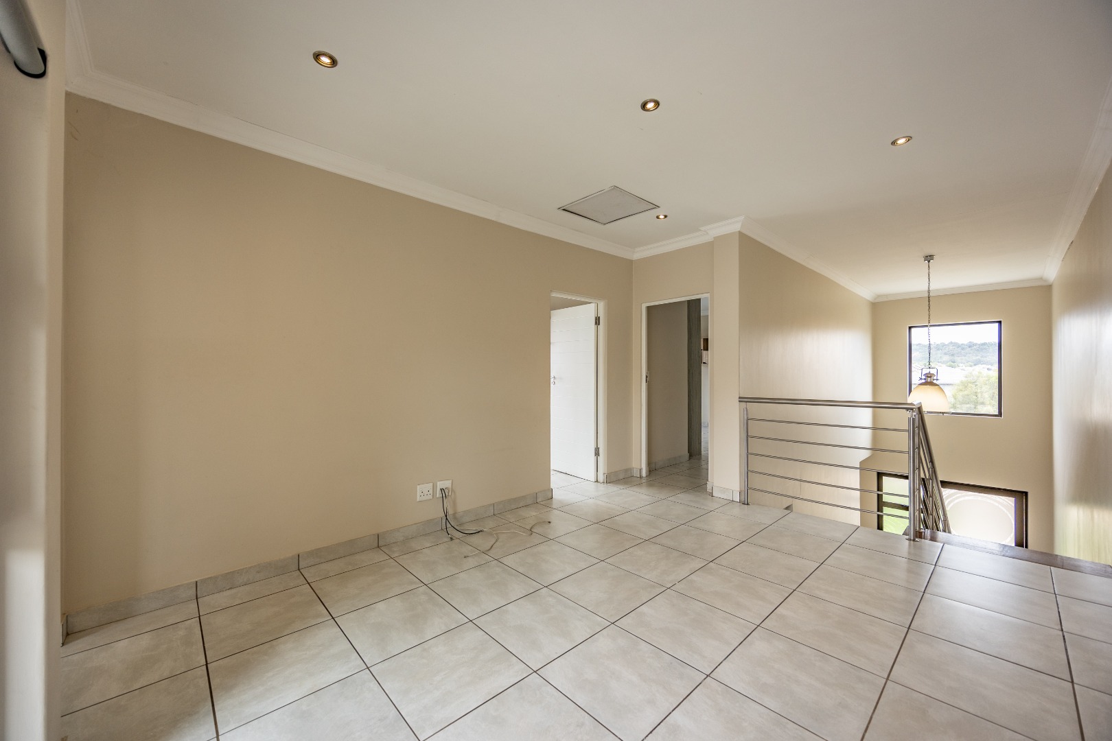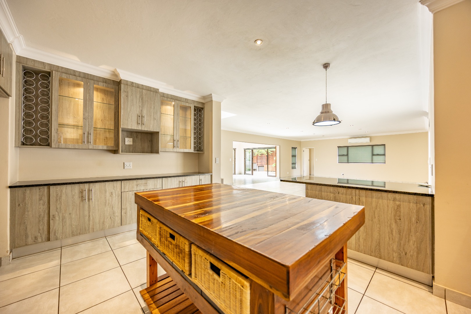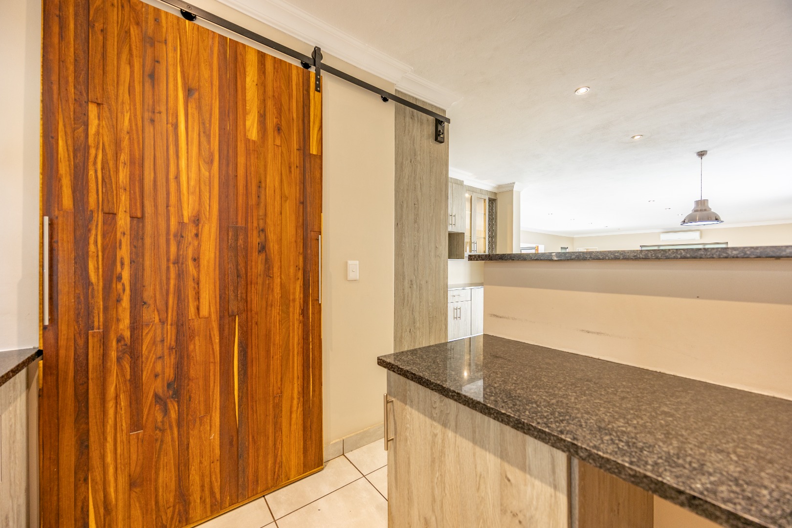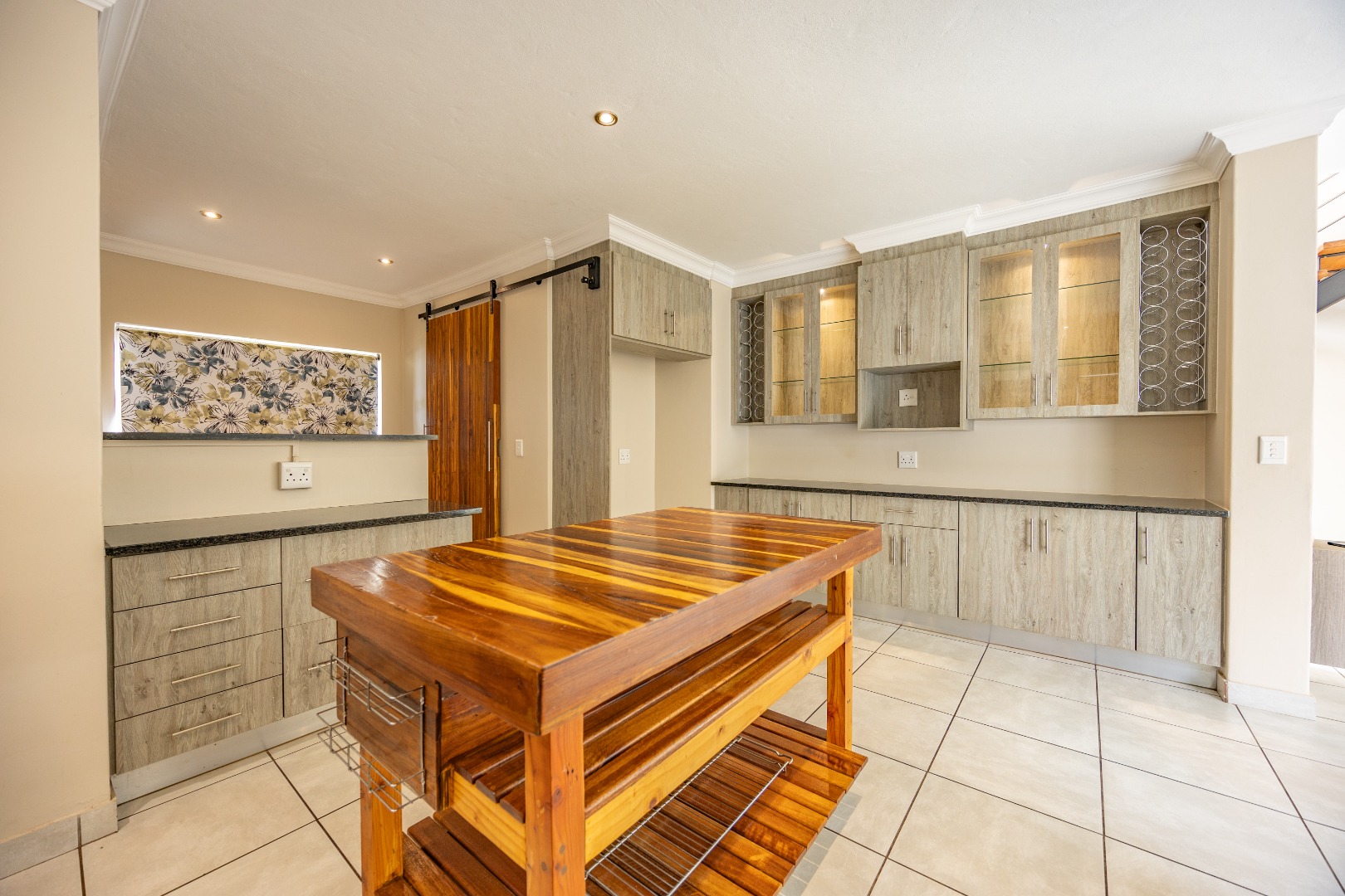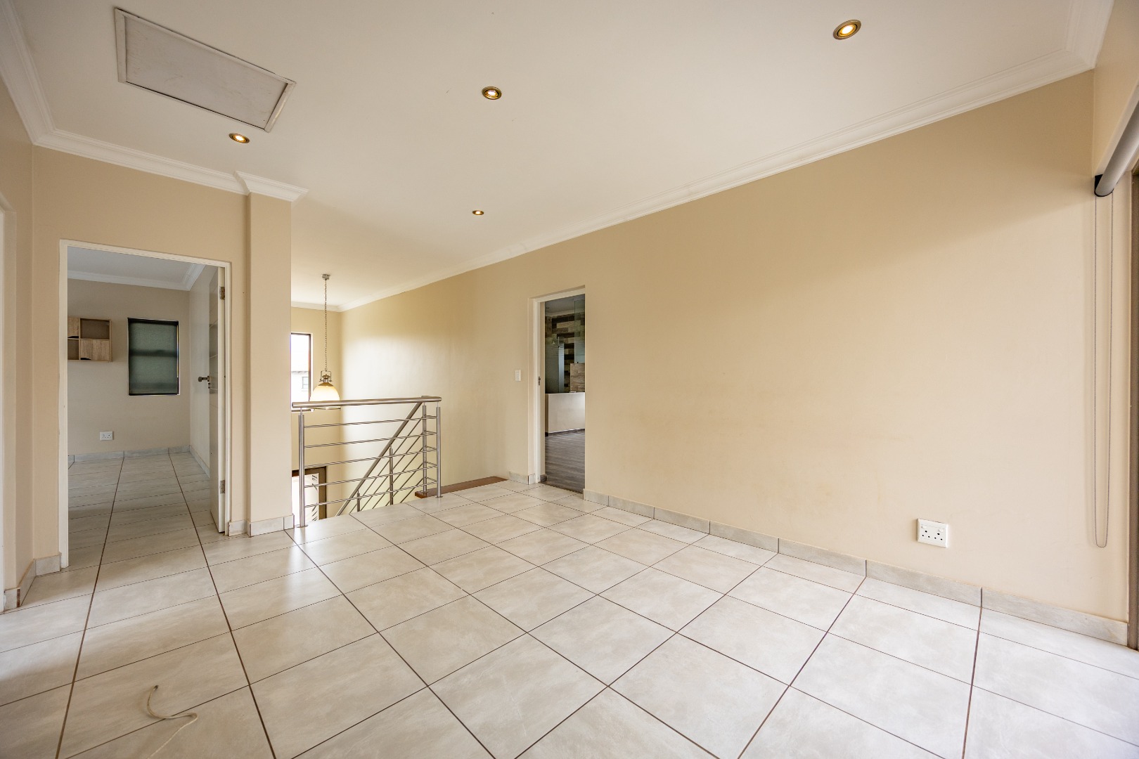 The ground floor showcases a stunning open-plan kitchen with granite countertops, breakfast nook, walk-in pantry and laundry facilities. The expansive dining and lounge area features a cozy fireplace, air conditioning and guest bathroom. The home flows effortlessly to an entertainment area with built-in braai, opening to a sunny patio with jacuzzi, all set within a spacious, private garden perfect for outdoor living.