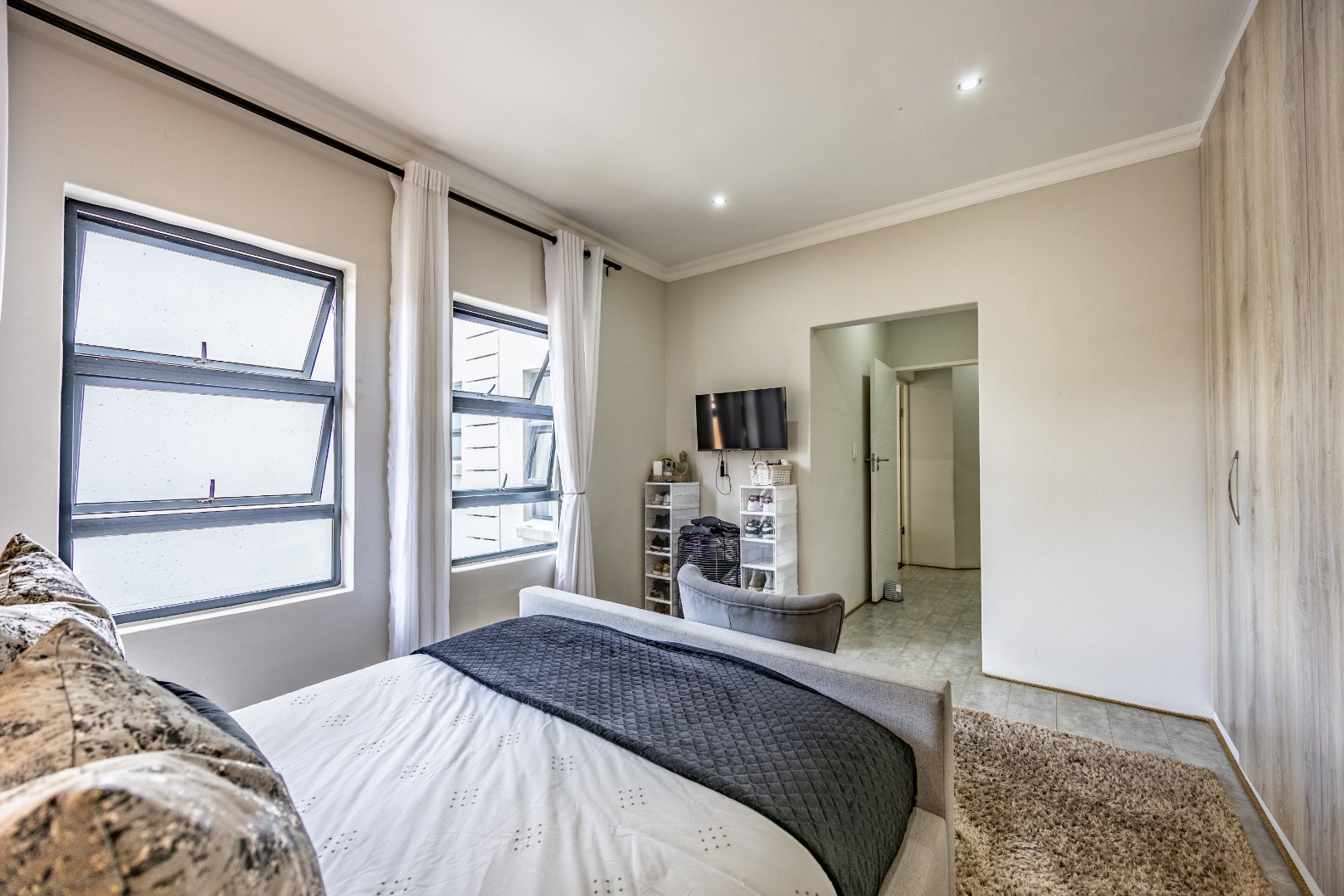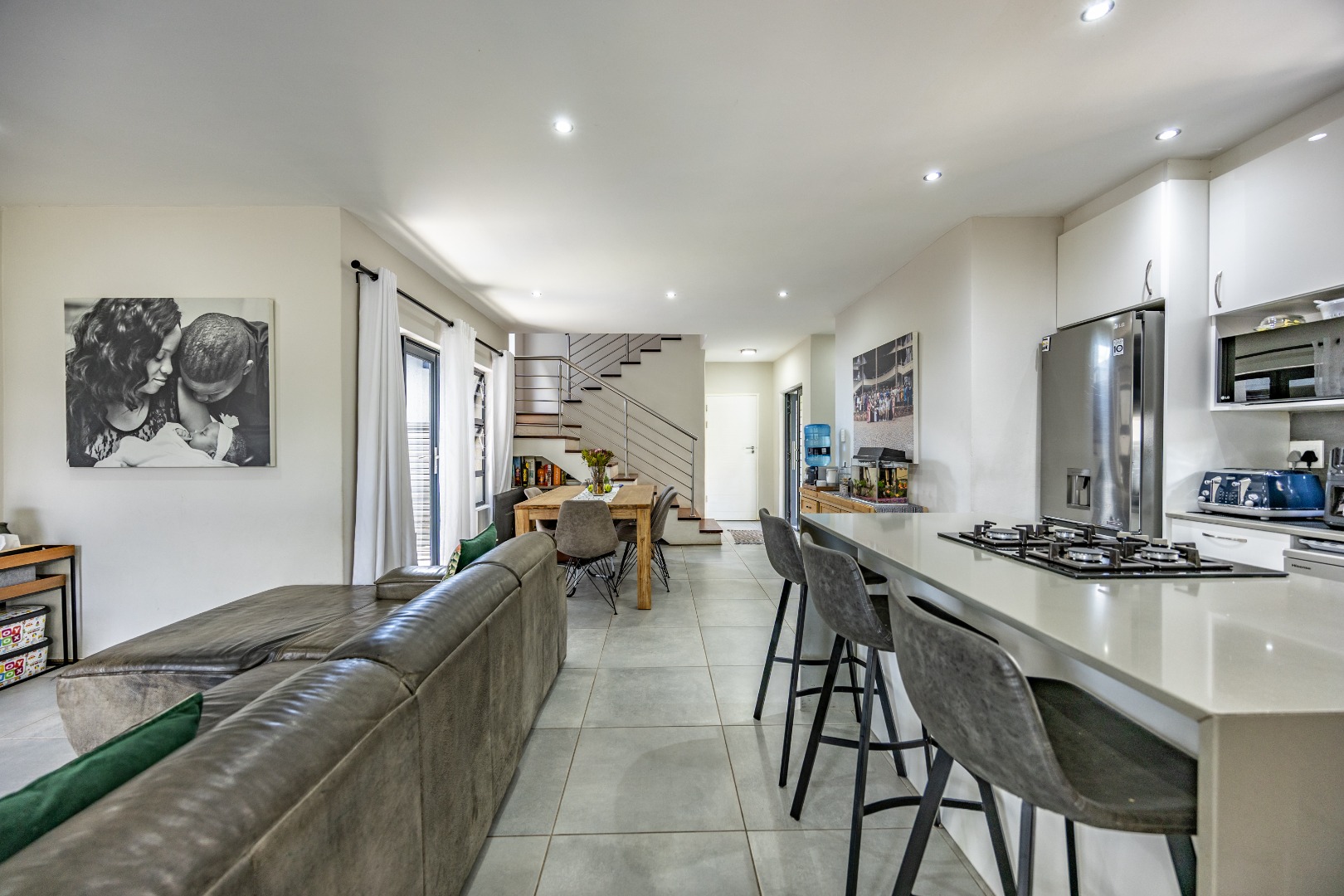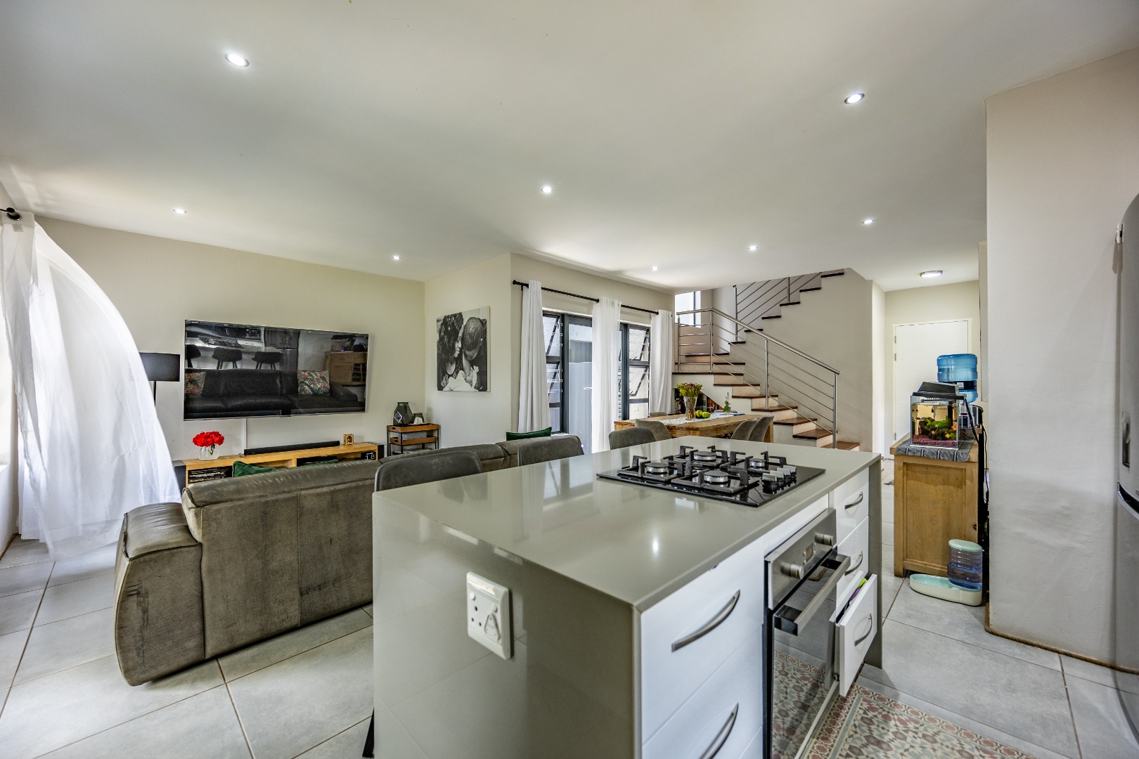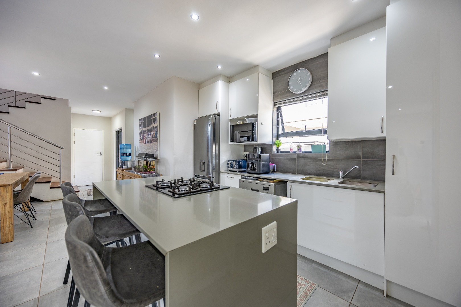 Upstairs, the home shifts gears into comfort and privacy. A small study nook creates a natural transition — perfect for working from home, schoolwork, or simply a quiet corner away from the living spaces below. From here, three bedrooms unfold, all well-proportioned and thoughtfully laid out. Two bedrooms share a neat bathroom with a shower, while the main bedroom is set apart as it should be, offering space, privacy, and a full en-suite bathroom that feels like a proper retreat. Set within a lovely Olympus estate, this is a home that delivers lifestyle without compromise — secure, modern, low-maintenance, and incredibly well balanced. It doesn’t shout for attention, but once you’re inside, it’s hard to imagine living anywhere else.