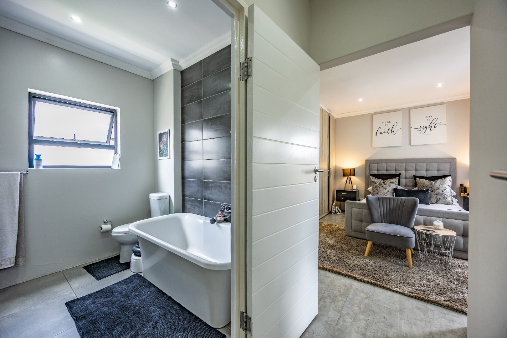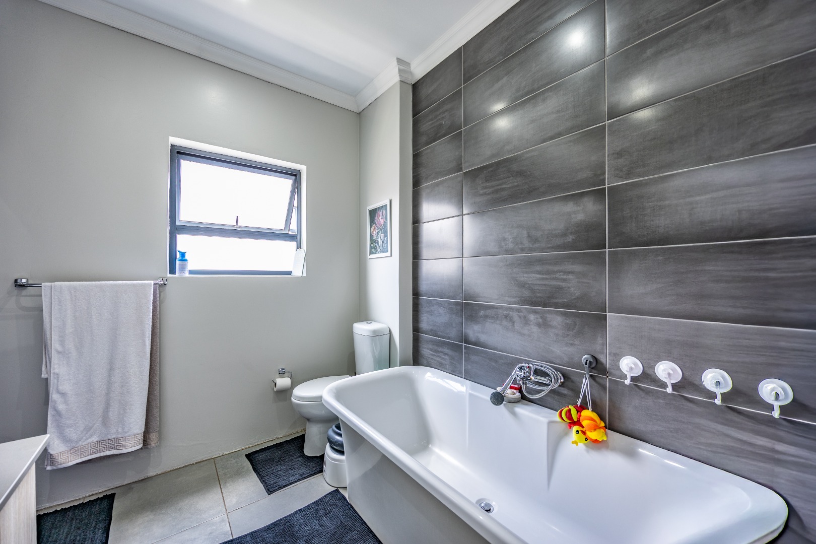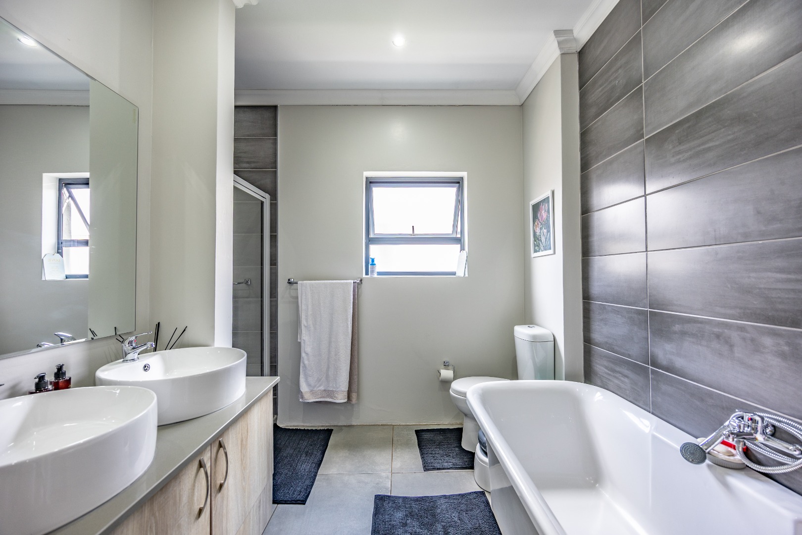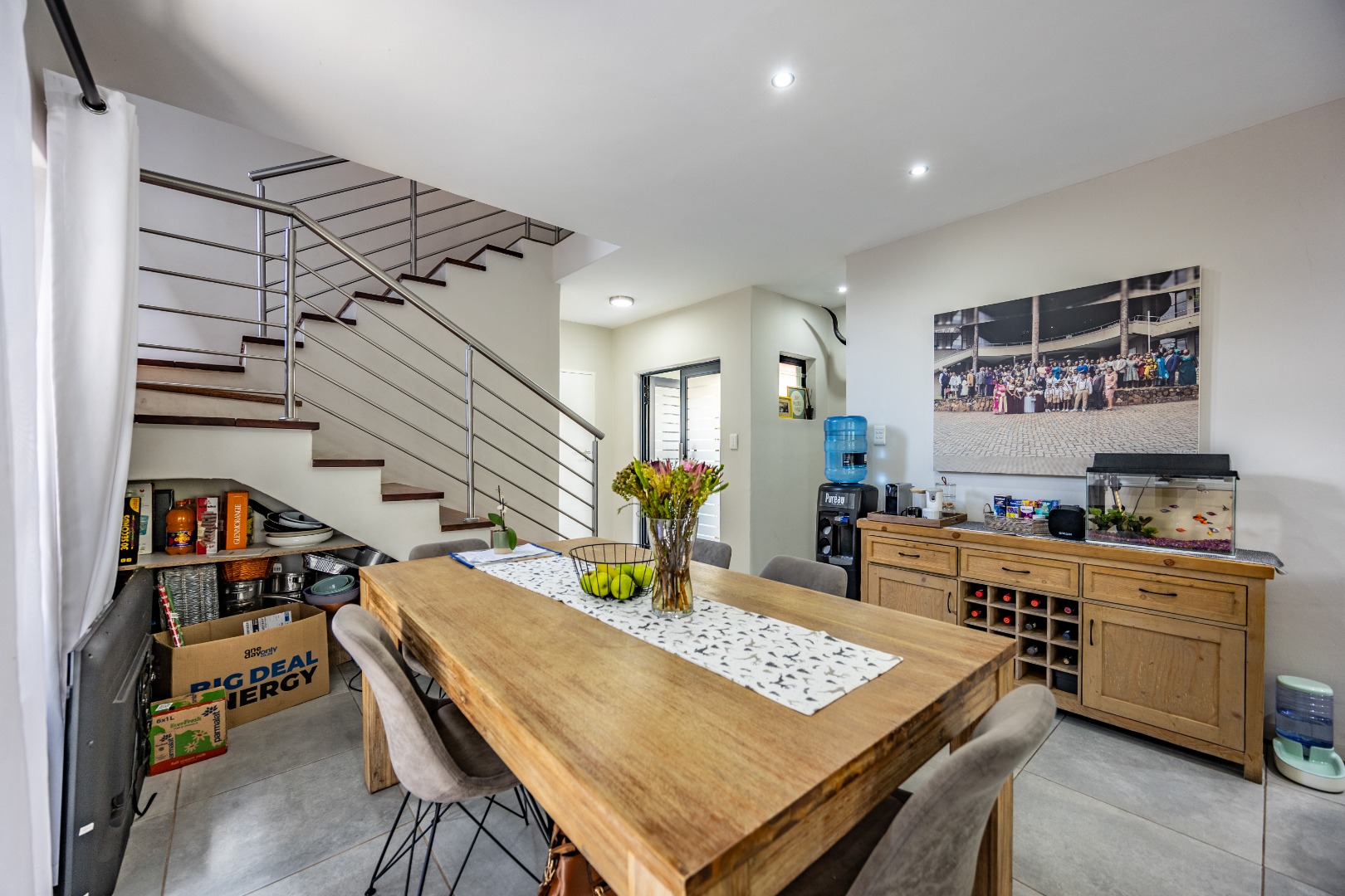 Upstairs, the home shifts gears into comfort and privacy. A small study nook creates a natural transition — perfect for working from home, schoolwork, or simply a quiet corner away from the living spaces below. From here, three bedrooms unfold, all well-proportioned and thoughtfully laid out. Two bedrooms share a neat bathroom with a shower, while the main bedroom is set apart as it should be, offering space, privacy, and a full en-suite bathroom that feels like a proper retreat. Set within a lovely Olympus estate, this is a home that delivers lifestyle without compromise — secure, modern, low-maintenance, and incredibly well balanced. It doesn’t shout for attention, but once you’re inside, it’s hard to imagine living anywhere else.