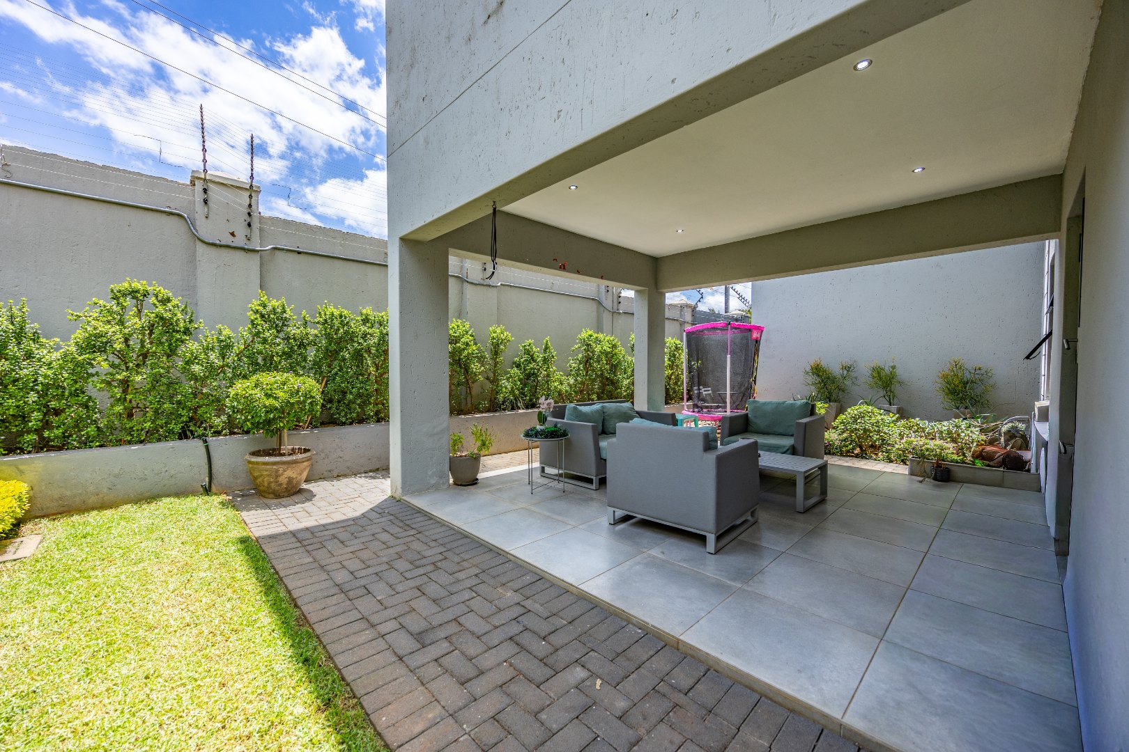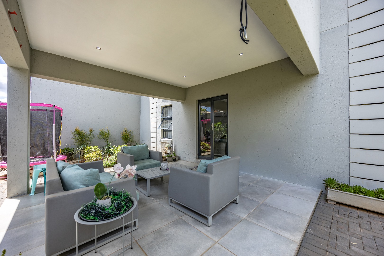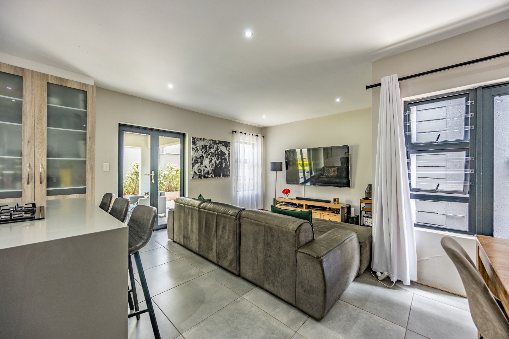 From the moment you step inside, this duet makes a quiet but confident statement: everything is exactly where it should be. Whether you enter through the front door or directly from the double garage, you’re welcomed into a seamless open-plan lounge and kitchen — light-filled, modern, and easy to live in. This is not a space that feels boxed in or overdesigned; it breathes. The kitchen anchors the home, staying connected to the living area so life can happen naturally around it. Then the folding doors slide away and the home opens completely to the patio and garden, creating that effortless indoor-outdoor flow buyers are chasing but seldom find done properly. It’s private, green, and just the right size — ideal for entertaining, unwinding after work, or letting kids and pets enjoy the outdoors. Downstairs is completed by a guest toilet and a serious practical bonus: a generator connection point with change-over switch already installed — because real convenience matters.