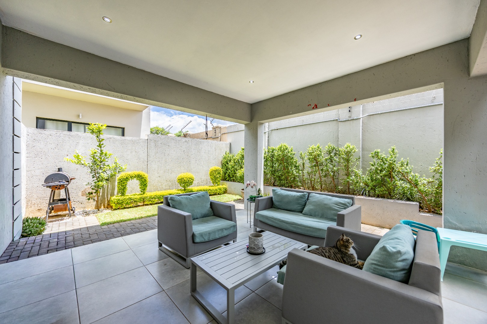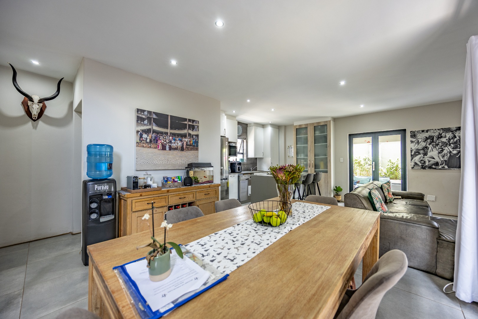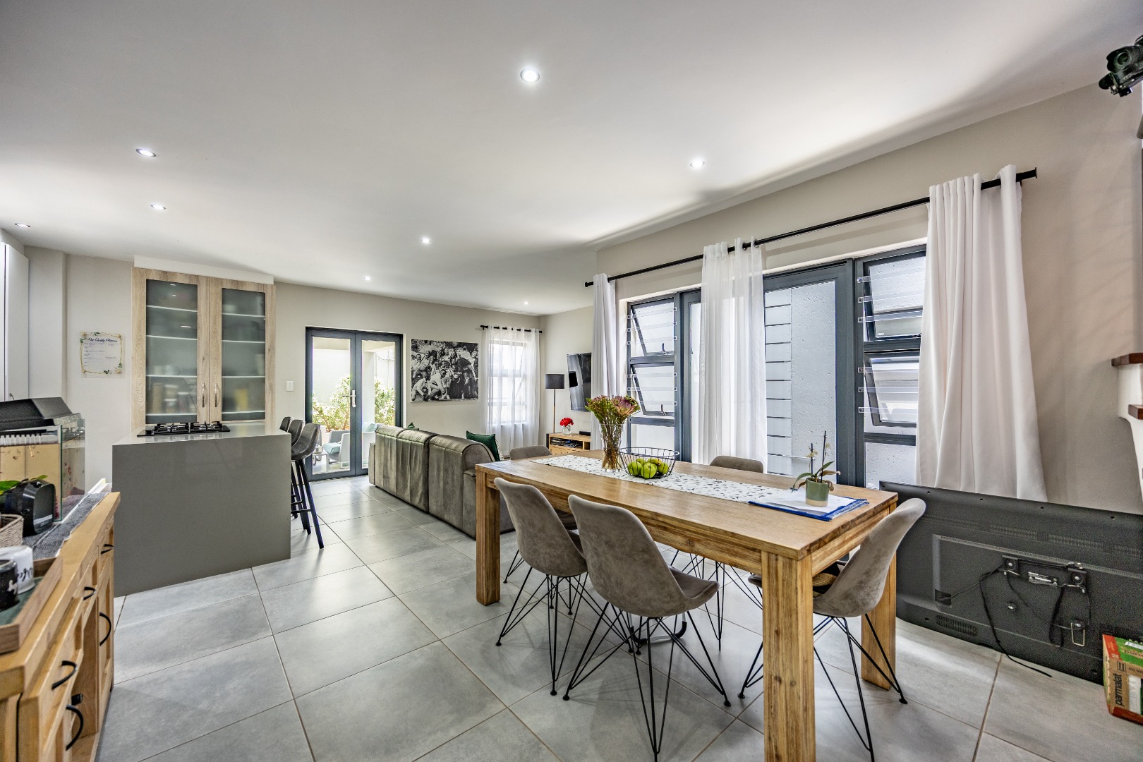 From the moment you step inside, this duet makes a quiet but confident statement: everything is exactly where it should be. Whether you enter through the front door or directly from the double garage, you’re welcomed into a seamless open-plan lounge and kitchen — light-filled, modern, and easy to live in. This is not a space that feels boxed in or overdesigned; it breathes. The kitchen anchors the home, staying connected to the living area so life can happen naturally around it. Then the folding doors slide away and the home opens completely to the patio and garden, creating that effortless indoor-outdoor flow buyers are chasing but seldom find done properly. It’s private, green, and just the right size — ideal for entertaining, unwinding after work, or letting kids and pets enjoy the outdoors. Downstairs is completed by a guest toilet and a serious practical bonus: a generator connection point with change-over switch already installed — because real convenience matters.