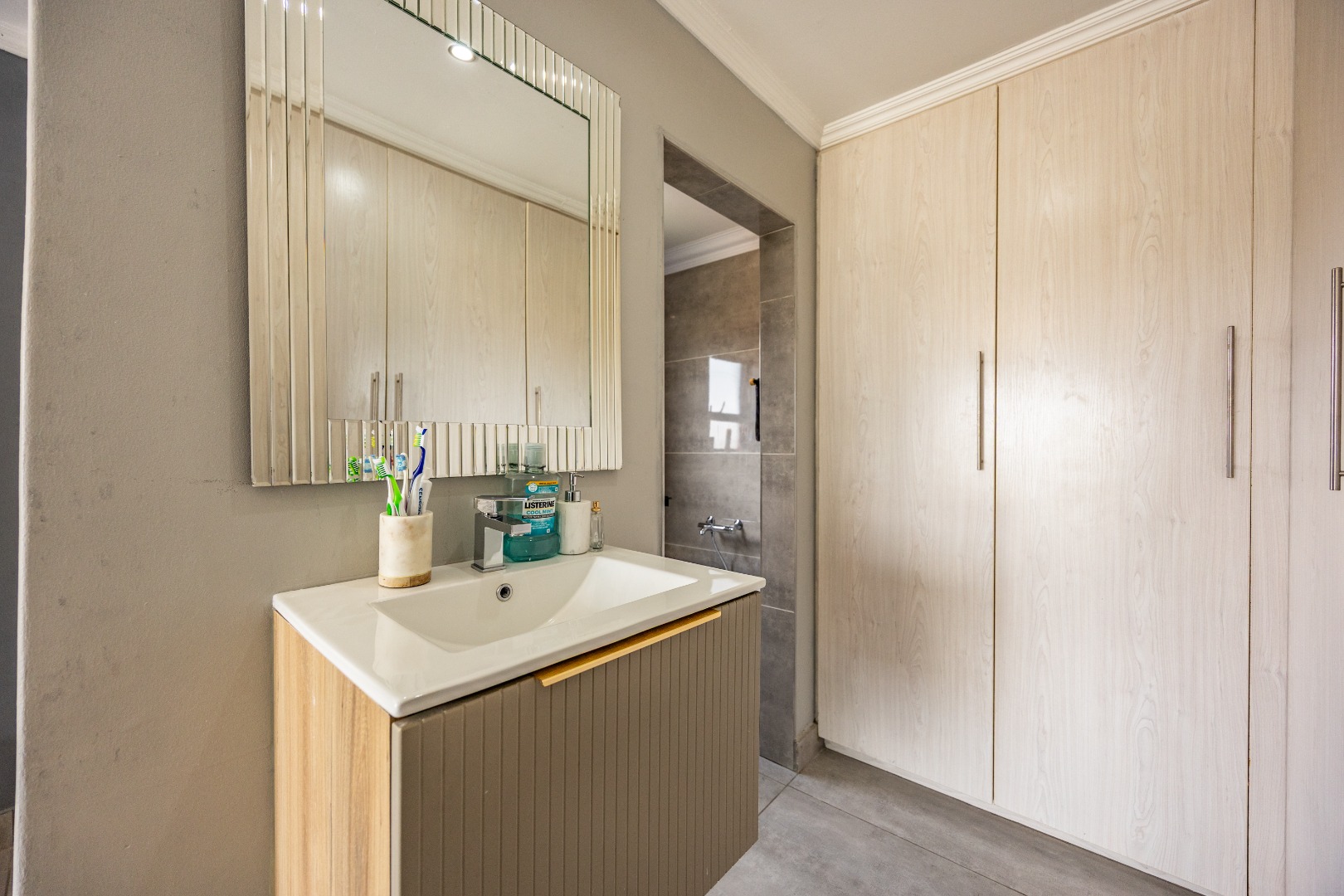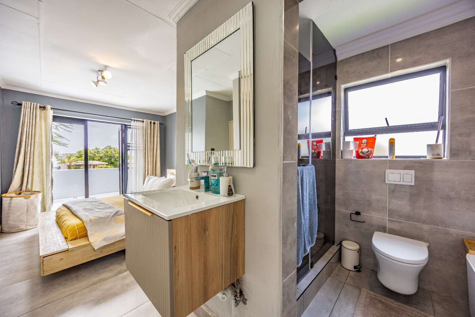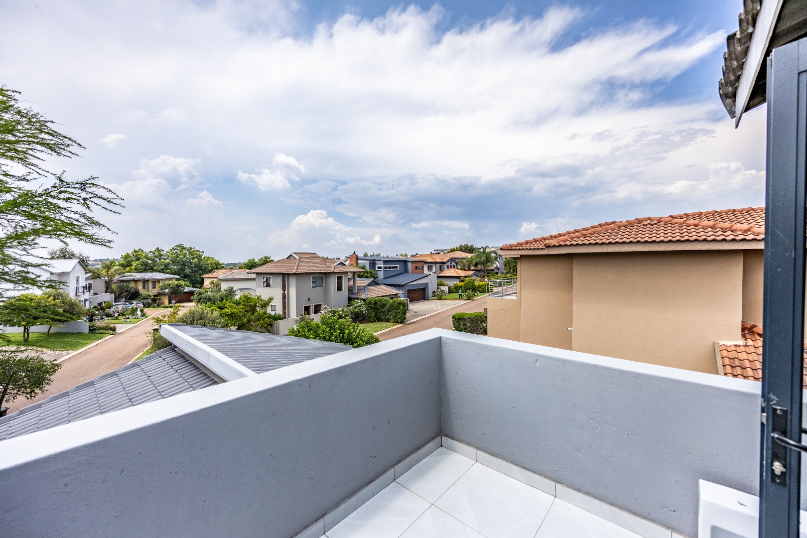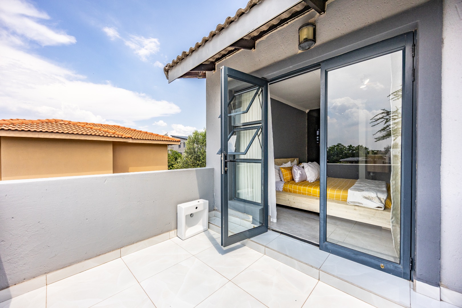 Upstairs, three bedrooms and two bathrooms complete the home. The main suite is a private retreat, offering a full en-suite bathroom and a balcony—your own elevated escape. The remaining bedrooms are serviced by a second bathroom, creating a clean, functional upper level designed for effortless living.