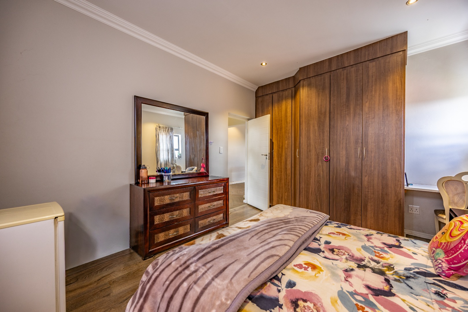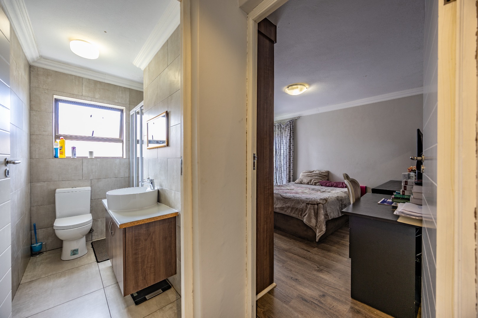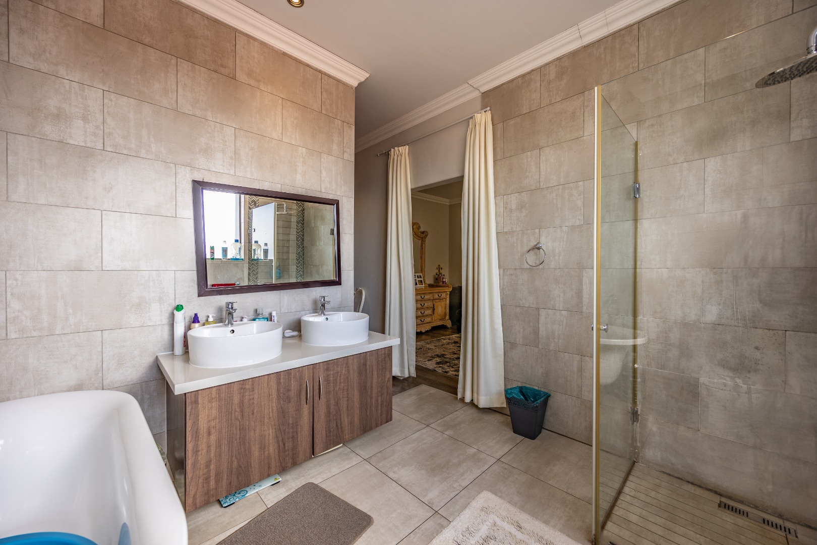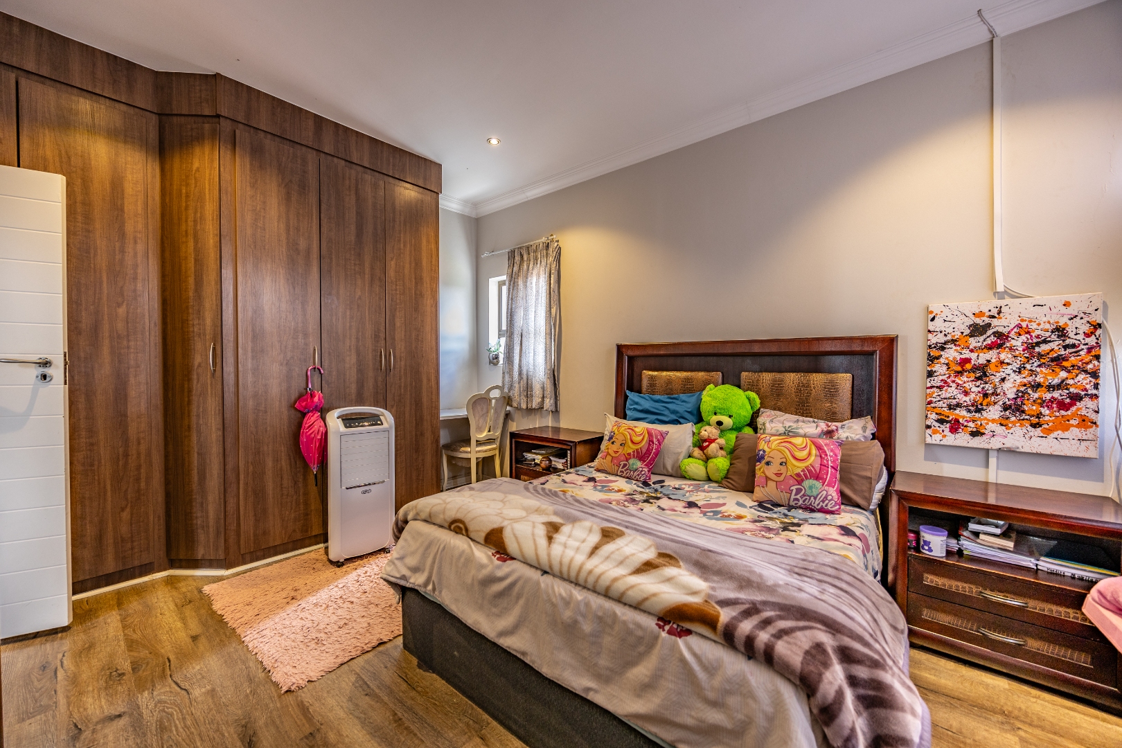 Upstairs, the layout continues to impress with three well-appointed bedrooms. The first bedroom features laminated flooring and built-in cupboards, serviced by a nearby bathroom with a shower. The main bedroom is a standout — spacious, beautifully laid out, complete with a full en-suite bathroom and a walk-in closet that adds that touch of luxury. The third bedroom also enjoys its own en-suite bathroom, making it perfect for family or guests who value privacy. Set within one of Olympus’ most sought-after estates, this home delivers strong flow, practical design, and the kind of lifestyle buyers are actively looking for.