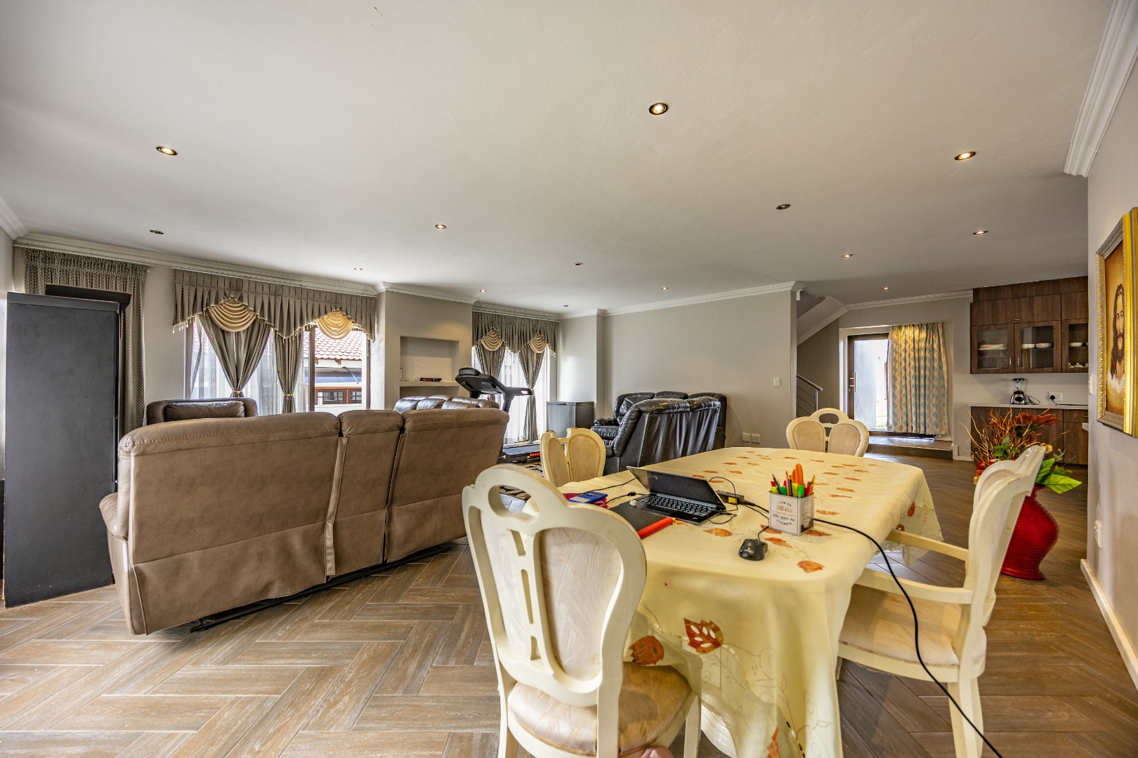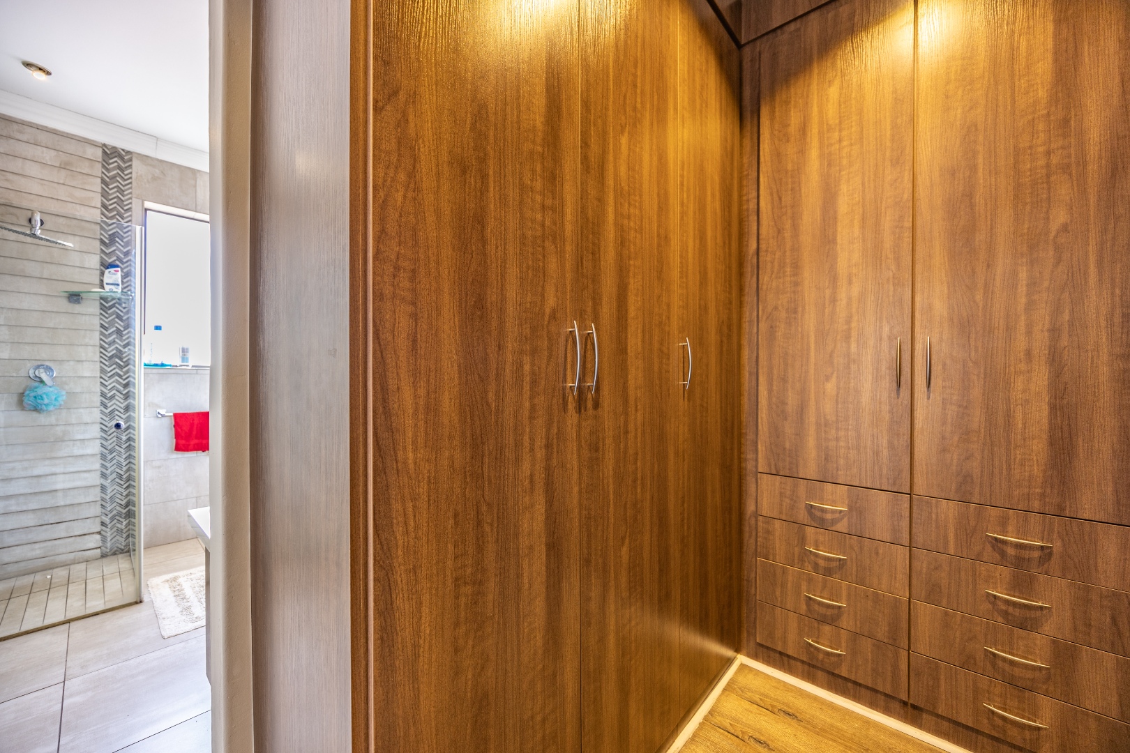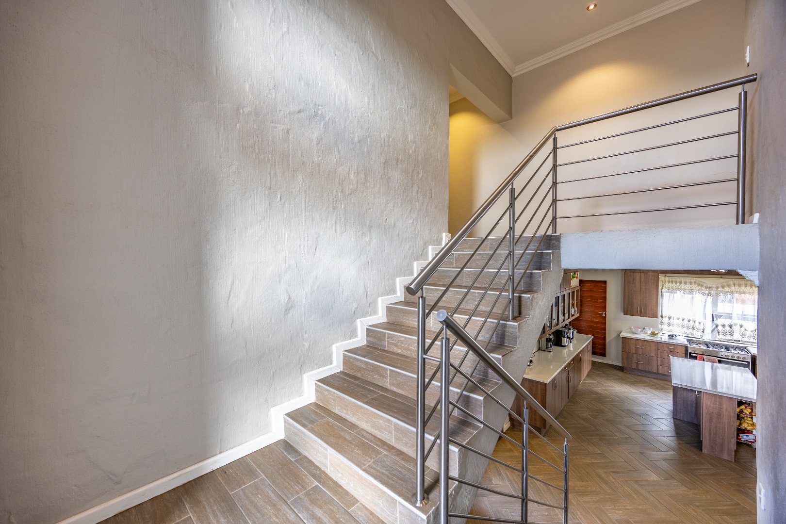 Upstairs, the layout continues to impress with three well-appointed bedrooms. The first bedroom features laminated flooring and built-in cupboards, serviced by a nearby bathroom with a shower. The main bedroom is a standout — spacious, beautifully laid out, complete with a full en-suite bathroom and a walk-in closet that adds that touch of luxury. The third bedroom also enjoys its own en-suite bathroom, making it perfect for family or guests who value privacy. Set within one of Olympus’ most sought-after estates, this home delivers strong flow, practical design, and the kind of lifestyle buyers are actively looking for.