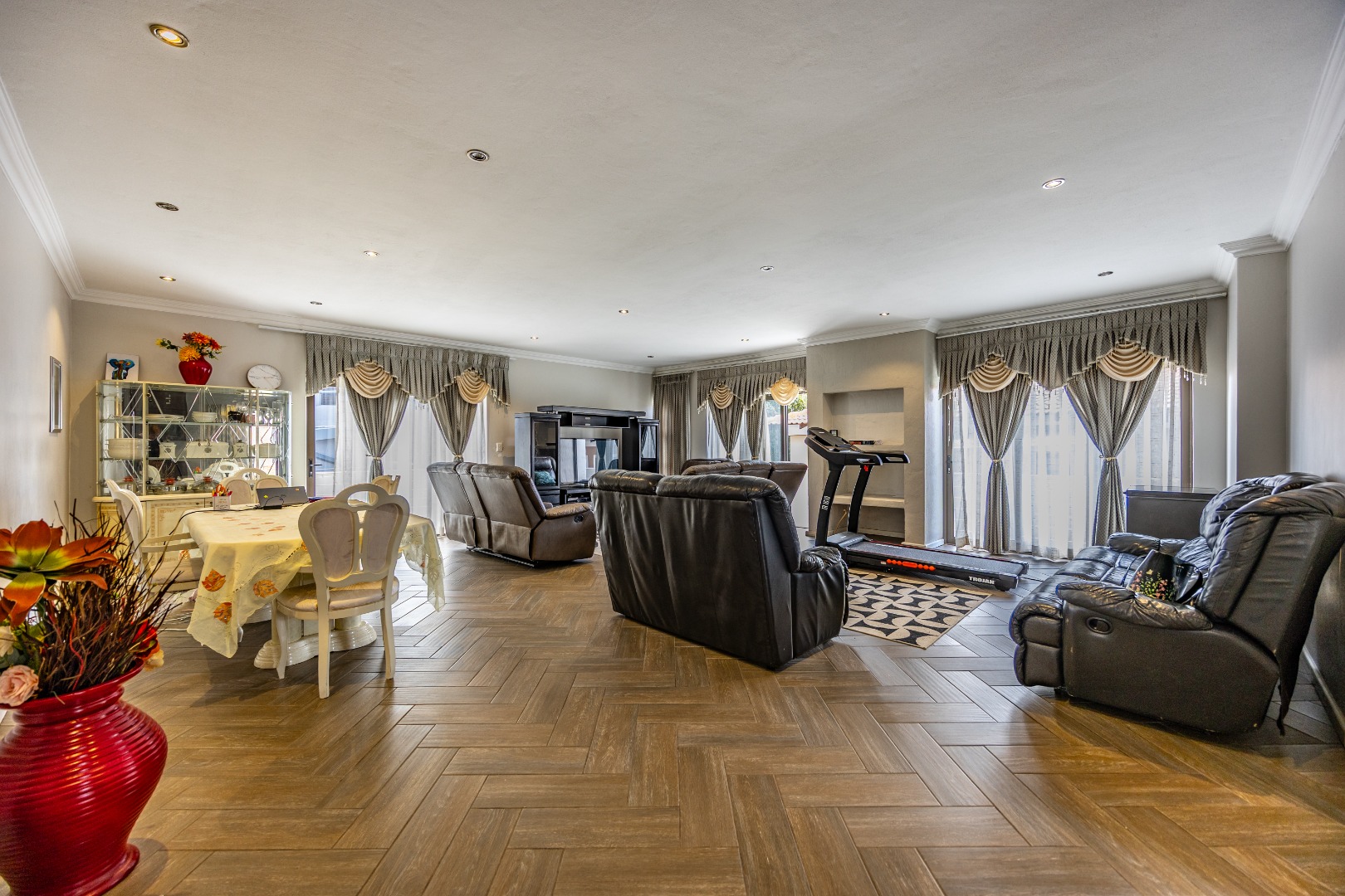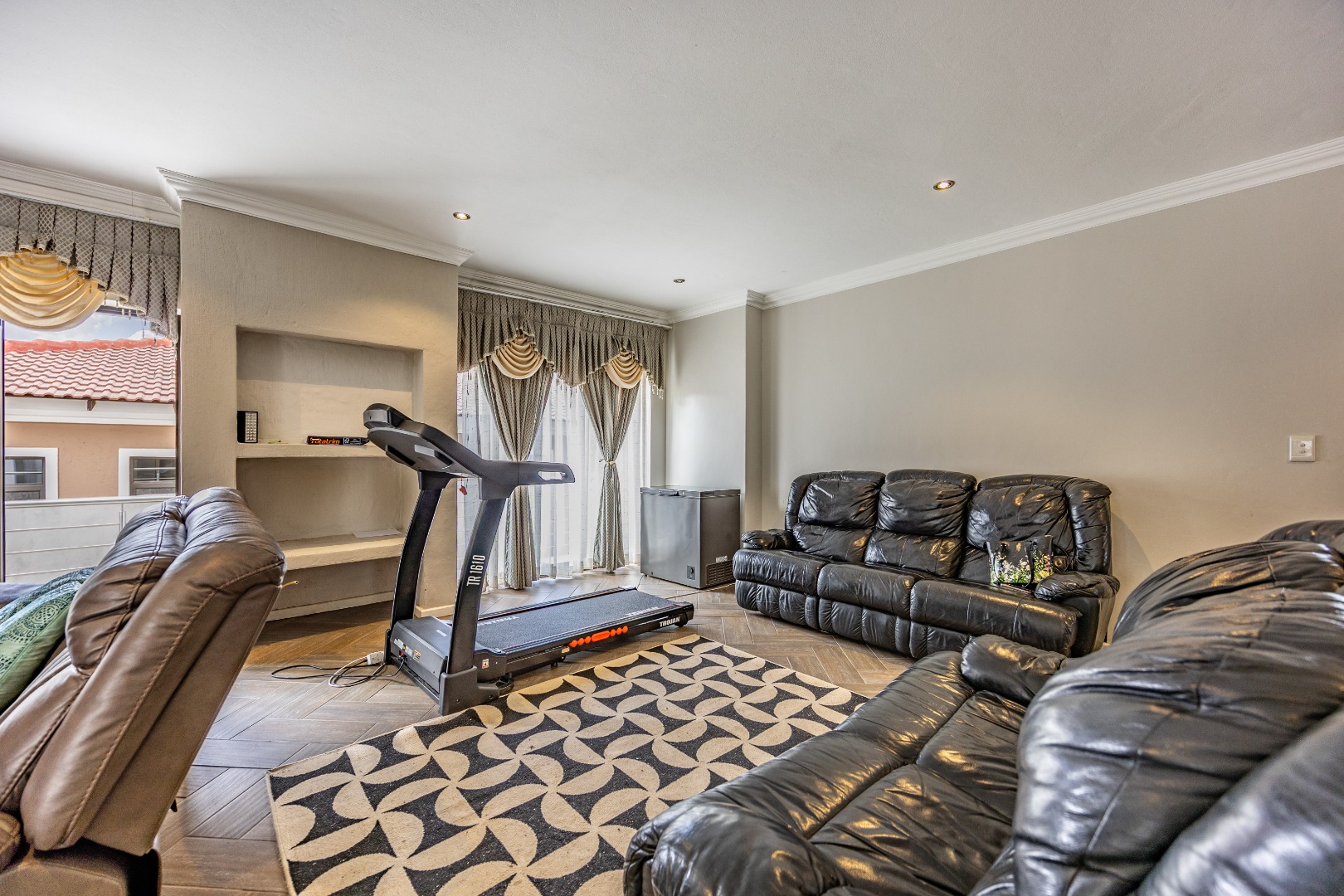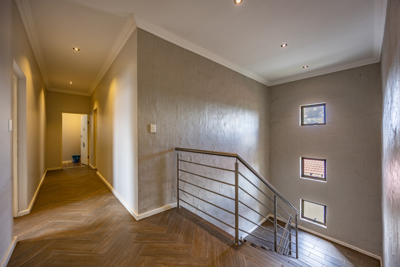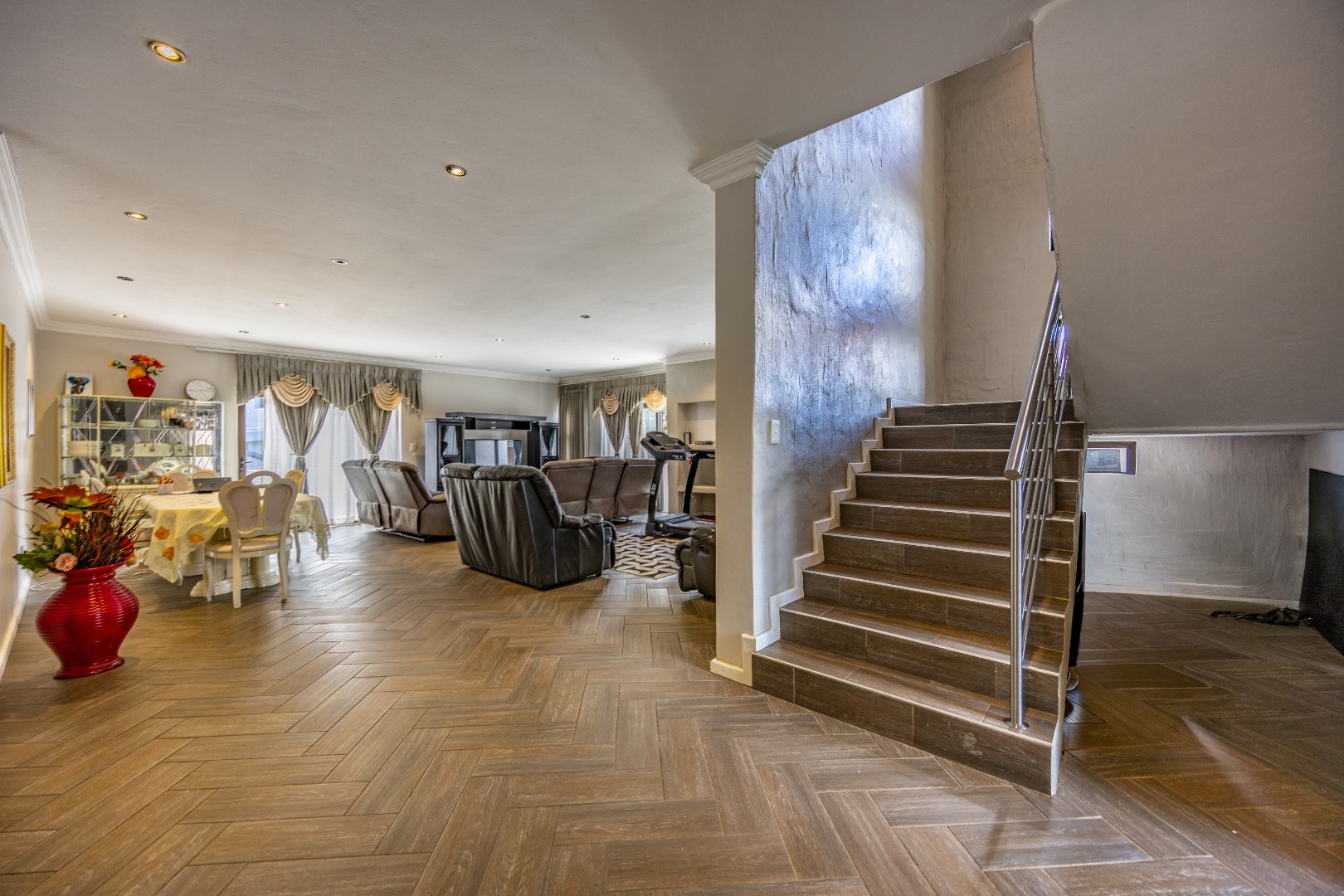 Upstairs, the layout continues to impress with three well-appointed bedrooms. The first bedroom features laminated flooring and built-in cupboards, serviced by a nearby bathroom with a shower. The main bedroom is a standout — spacious, beautifully laid out, complete with a full en-suite bathroom and a walk-in closet that adds that touch of luxury. The third bedroom also enjoys its own en-suite bathroom, making it perfect for family or guests who value privacy. Set within one of Olympus’ most sought-after estates, this home delivers strong flow, practical design, and the kind of lifestyle buyers are actively looking for.