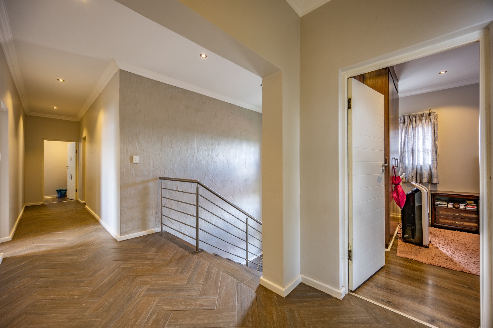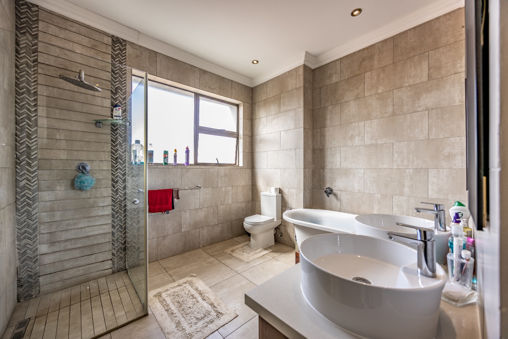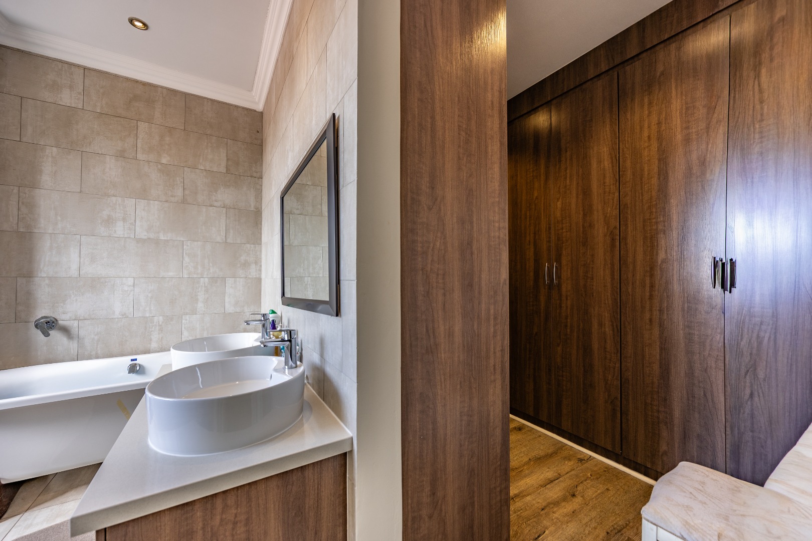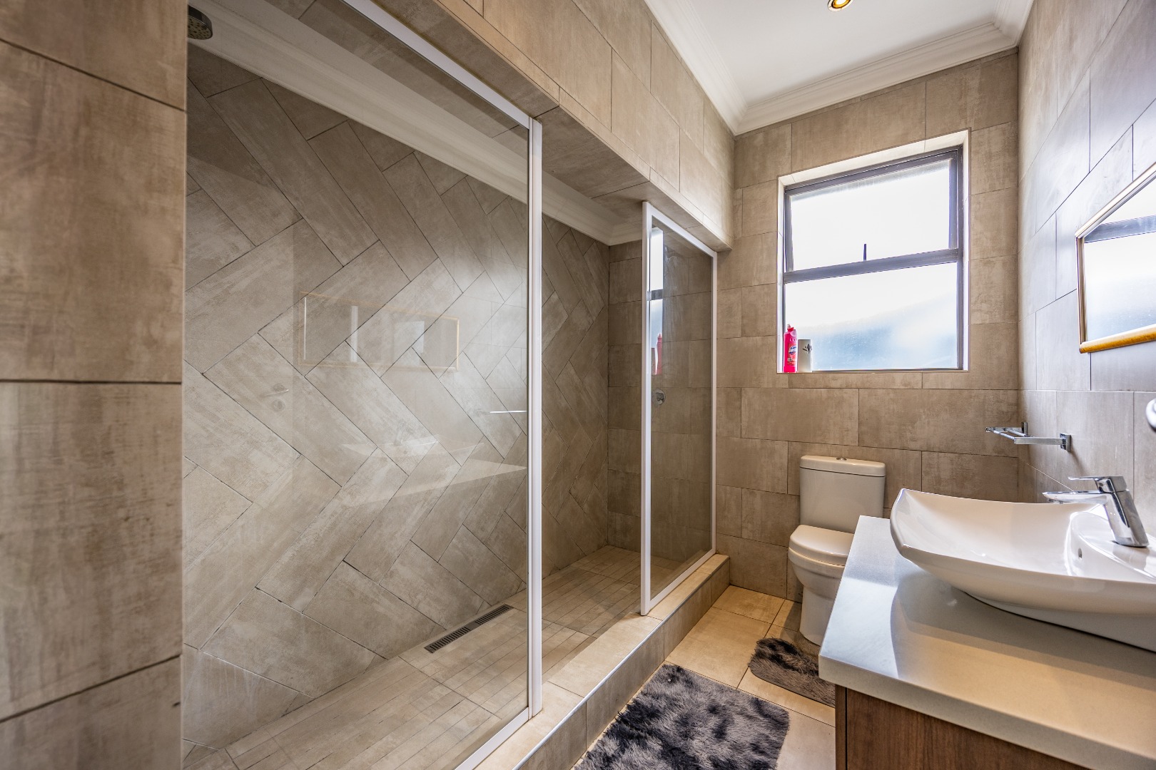 Upstairs, the layout continues to impress with three well-appointed bedrooms. The first bedroom features laminated flooring and built-in cupboards, serviced by a nearby bathroom with a shower. The main bedroom is a standout — spacious, beautifully laid out, complete with a full en-suite bathroom and a walk-in closet that adds that touch of luxury. The third bedroom also enjoys its own en-suite bathroom, making it perfect for family or guests who value privacy. Set within one of Olympus’ most sought-after estates, this home delivers strong flow, practical design, and the kind of lifestyle buyers are actively looking for.