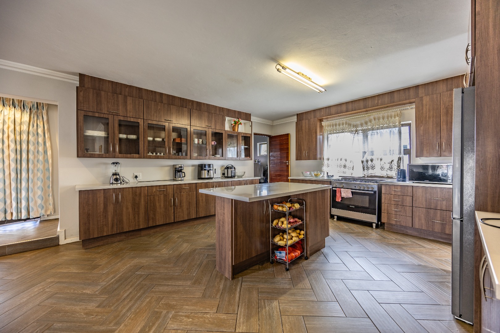 Step through the front door and you’re immediately welcomed into a home designed for both comfort and effortless living. To your right, a well-positioned guest bedroom with its own bathroom offers privacy and convenience for visitors or extended family. The home then opens up into a seamless flow of space — a modern open-plan kitchen anchors the living areas, complemented by a spacious scullery that keeps everything practical and tucked away. The kitchen flows naturally into a generous dining area and a large lounge, creating the perfect setting for both relaxed family time and entertaining. From here, you’re drawn outside to a dedicated braai area with a built-in braai, perfectly positioned alongside the staff quarters with its own bathroom — creating a functional and private outdoor setup that works just as well for entertaining as it does for day-to-day living. The double garage leads directly into the home, adding both convenience and security, with additional storage neatly tucked under the staircase.