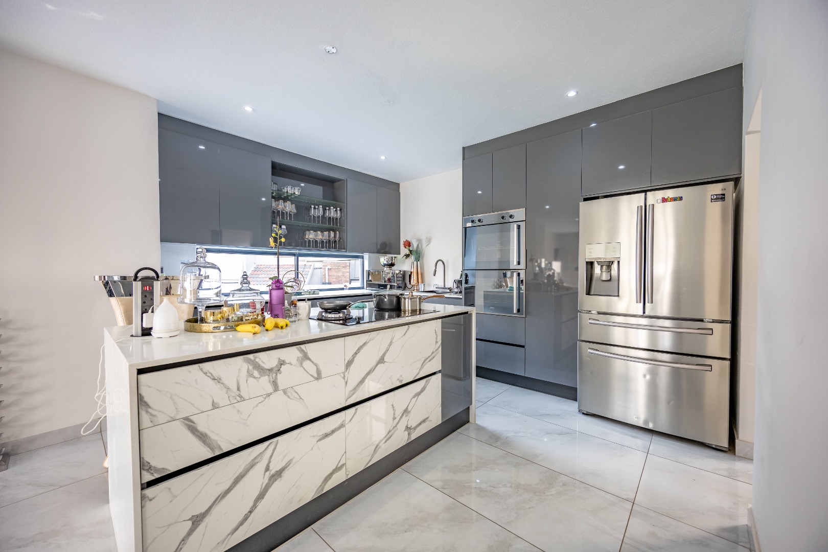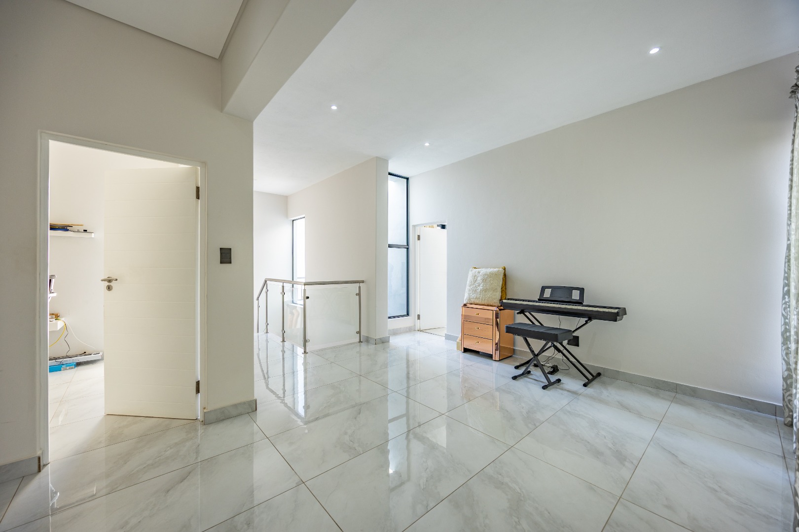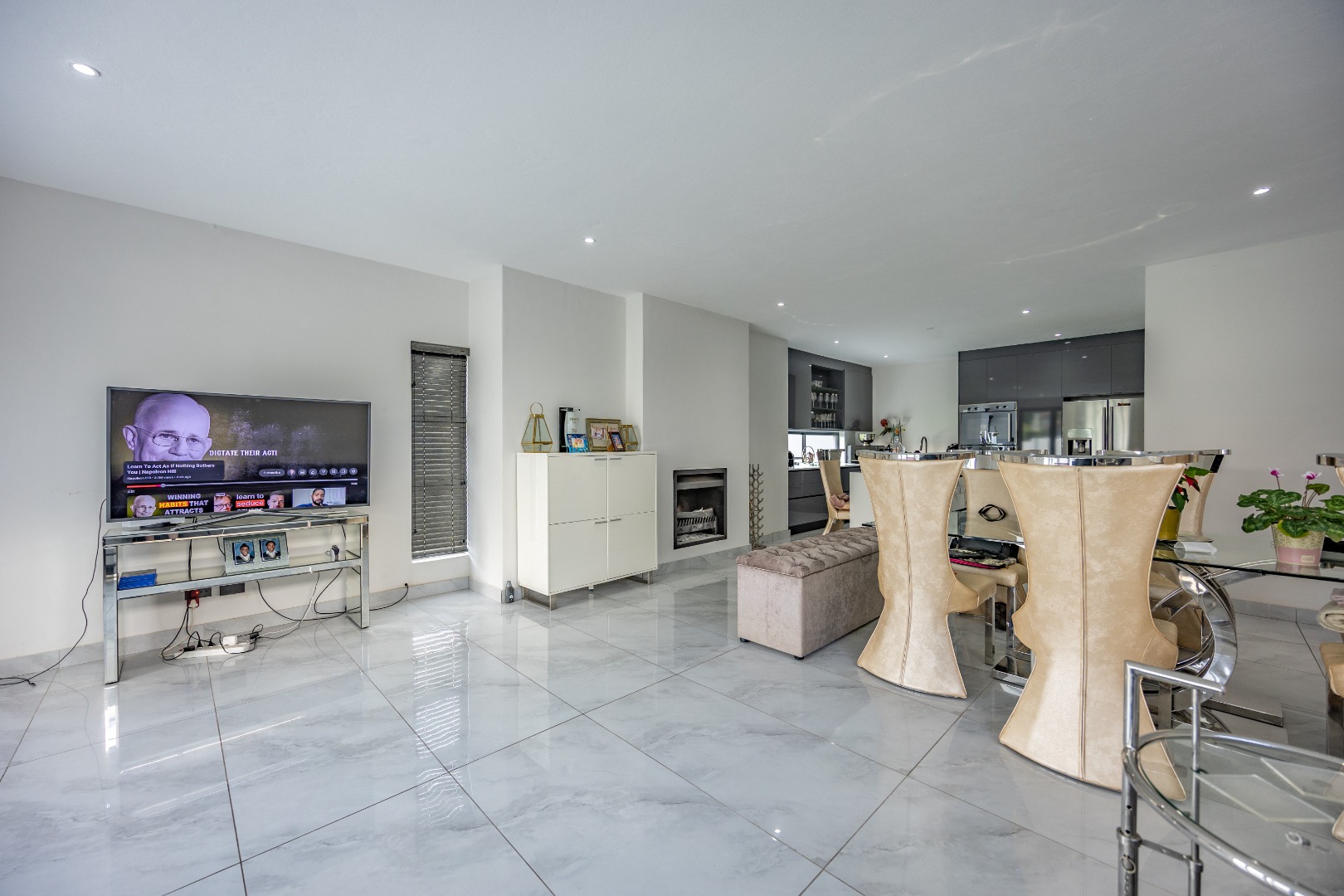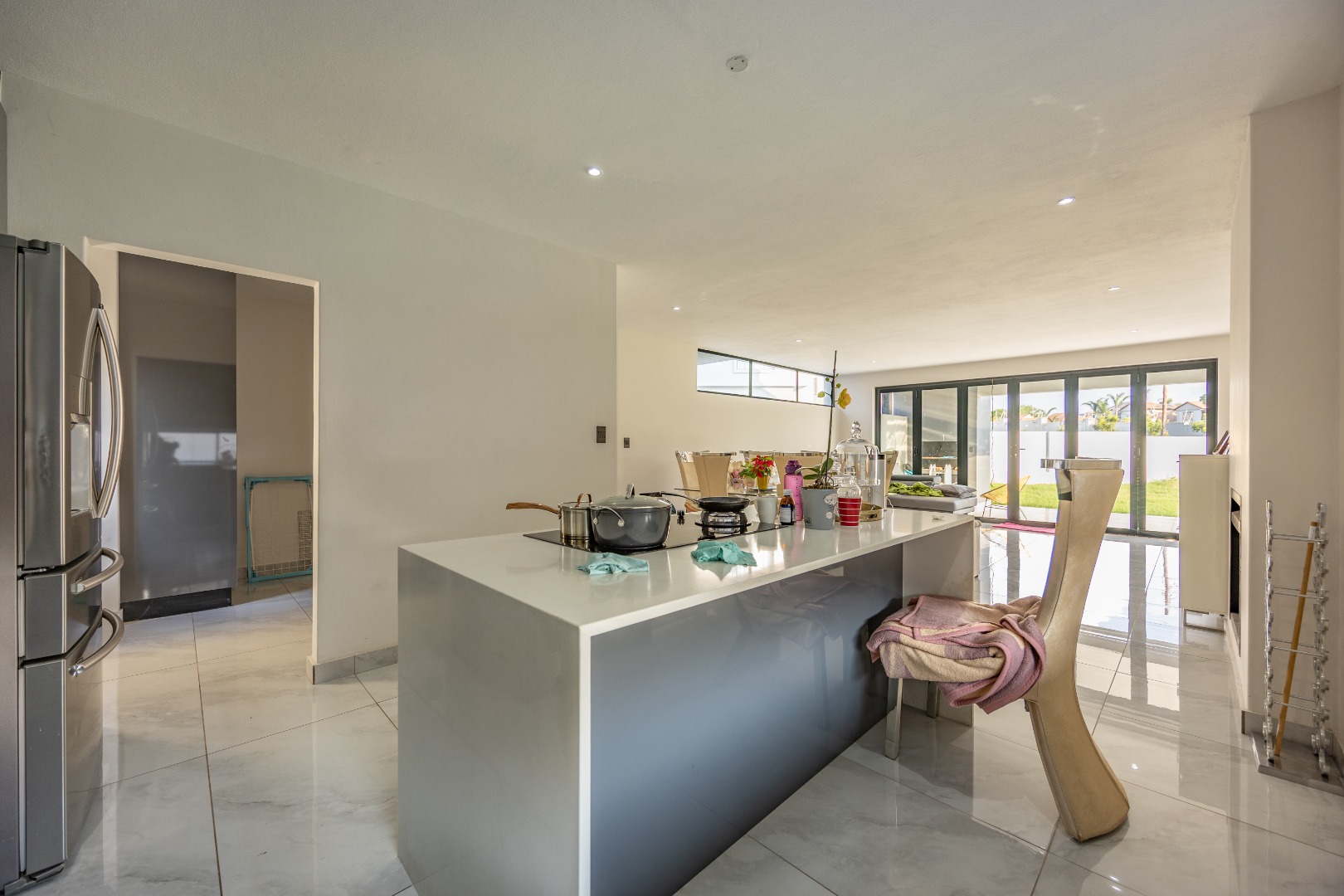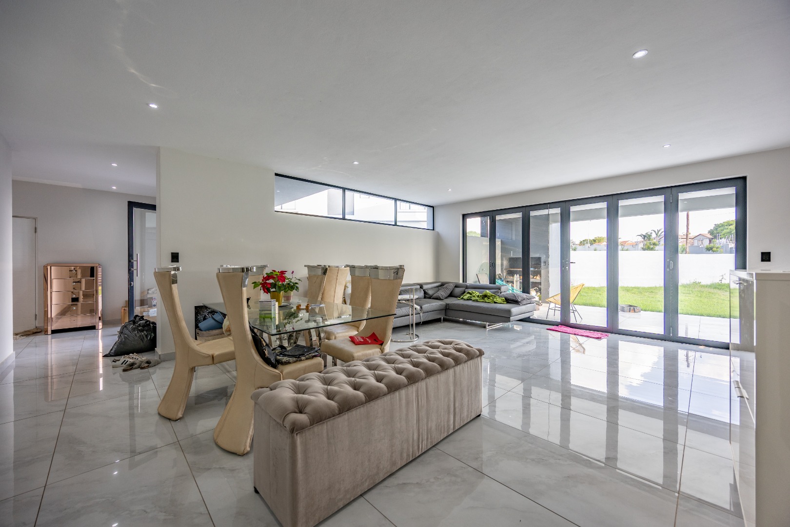 Step into contemporary elegance with this newly built modern-industrial masterpiece in the prestigious Highlands Estate. The exterior boasts striking industrial finishes, including clean lines, mixed materials, and bold architectural details, creating a standout presence. Inside, a grand entrance hall welcomes you to a spacious living area featuring a statement fireplace, a sleek gourmet kitchen with a large scullery, and a seamless flow to the outdoor patio with a built-in braai—perfect for indoor-outdoor living. The home includes four generously sized bedrooms, with the luxurious main suite offering an en-suite bathroom, a walk-in closet, and a private balcony to soak in the serene views.