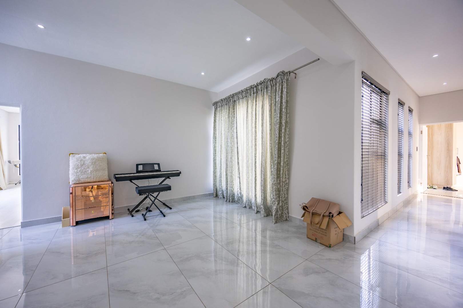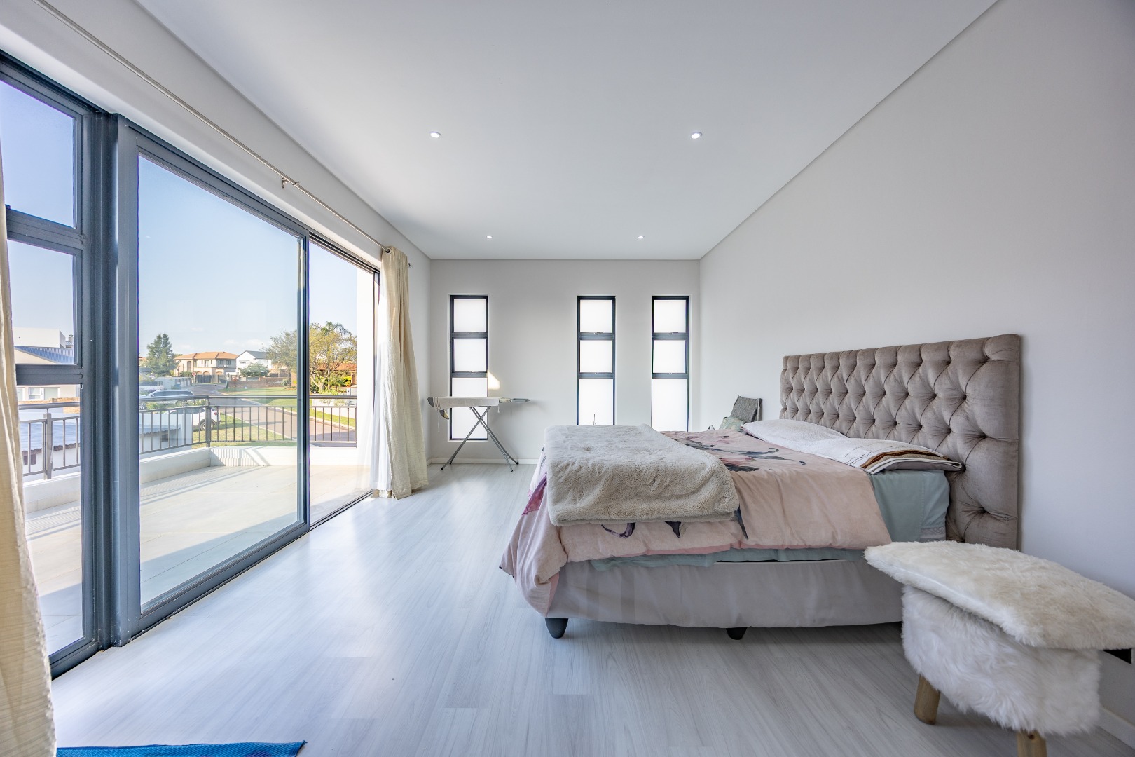 Designed for both style and functionality, this property also features a pajama lounge, a dedicated study, two garages, a sparkling pool, and a sprawling yard—rare for estate living. Additional highlights include an outside storeroom, full bathroom, and ample storage with linen cupboards. Bedroom 1 offers direct outdoor access, while Bedroom 3 includes its own balcony, enhancing the home’s modern appeal. With premium finishes, an expansive outdoor space, and a prime location, this home is a true sanctuary for those who appreciate cutting-edge design and luxury living. Don’t miss this exceptional opportunity!