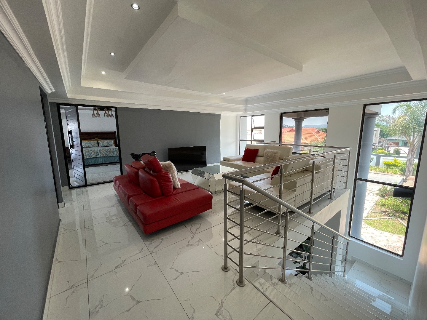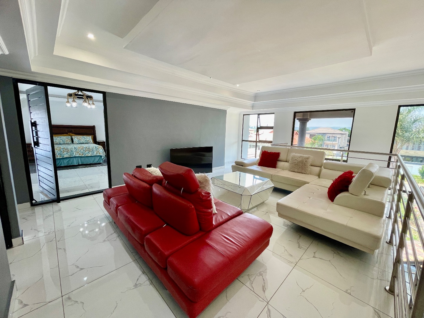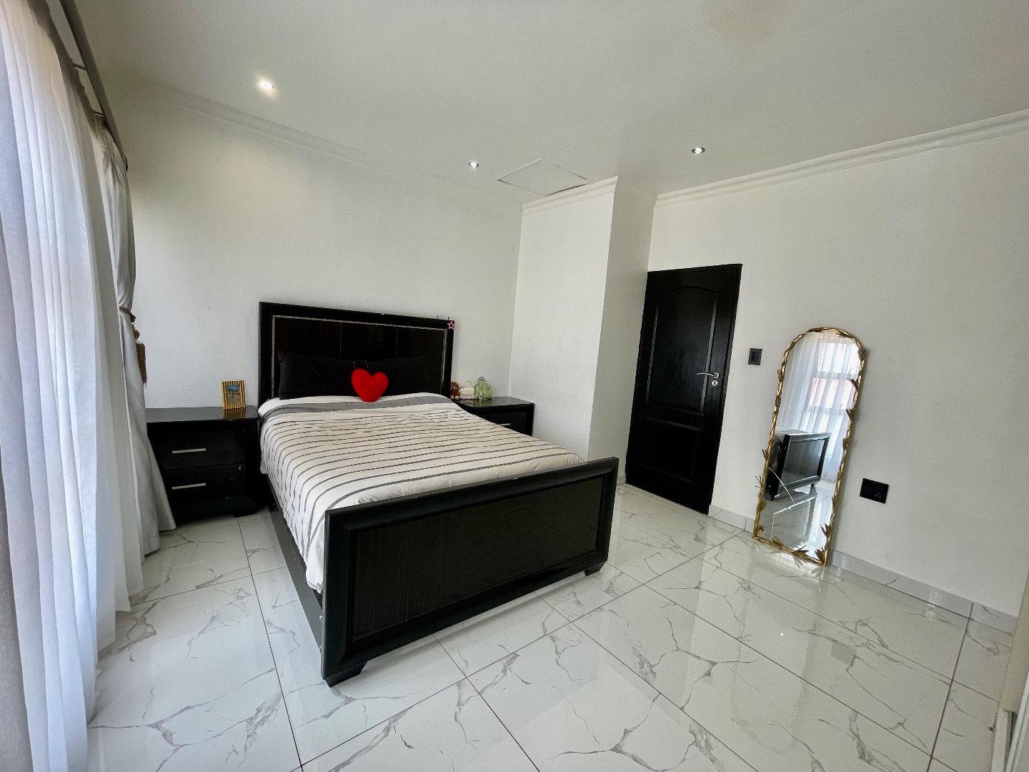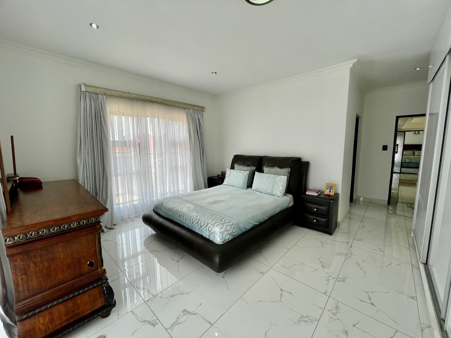 The property features 4 spacious bedrooms, all en suite, including a large bedroom downstairs—ideal for guests or extended family. Upstairs offers 3 bedrooms, with an impressive main bedroom boasting ample space for a walk-in closet, as well as a cozy pyjama lounge.
