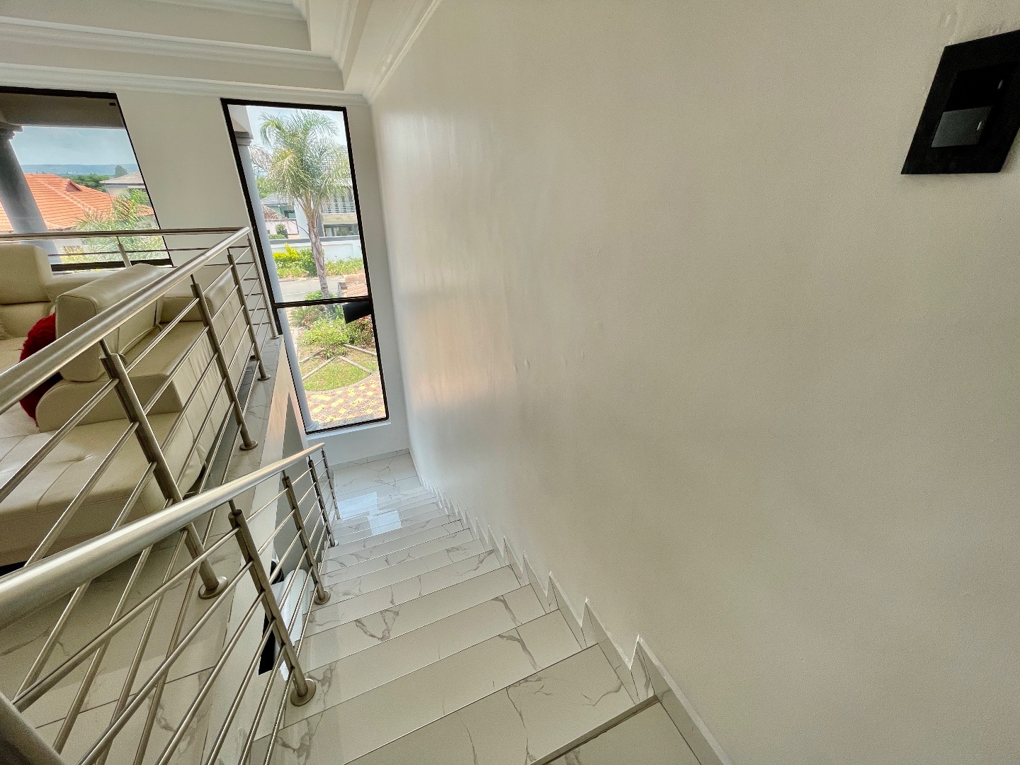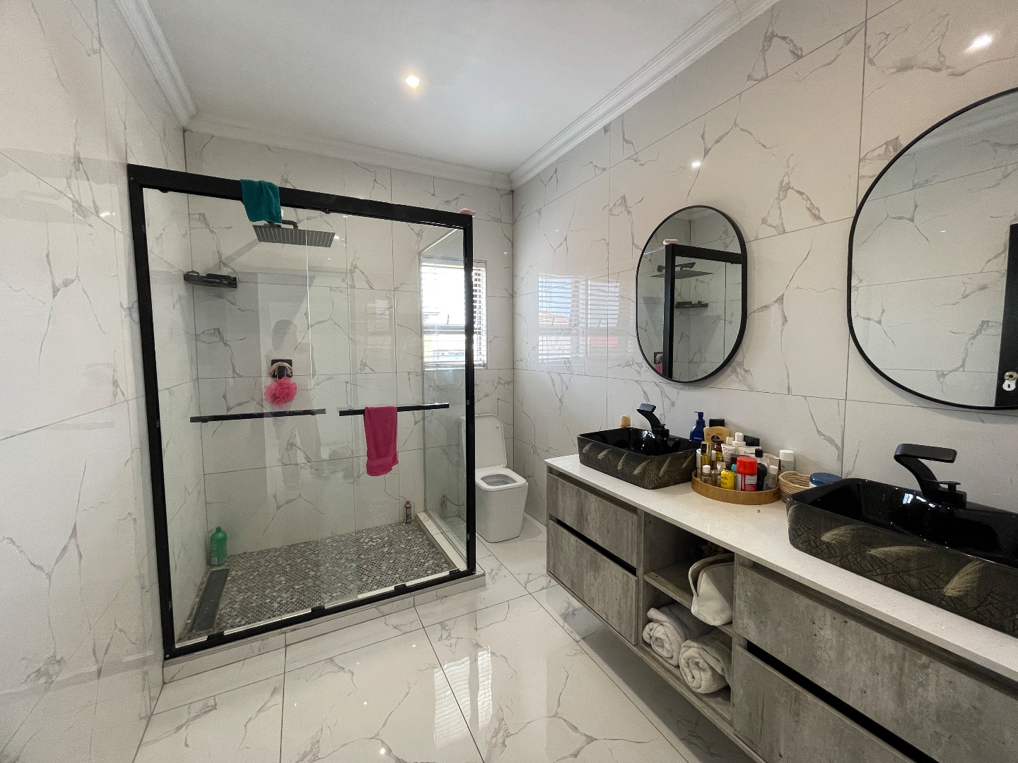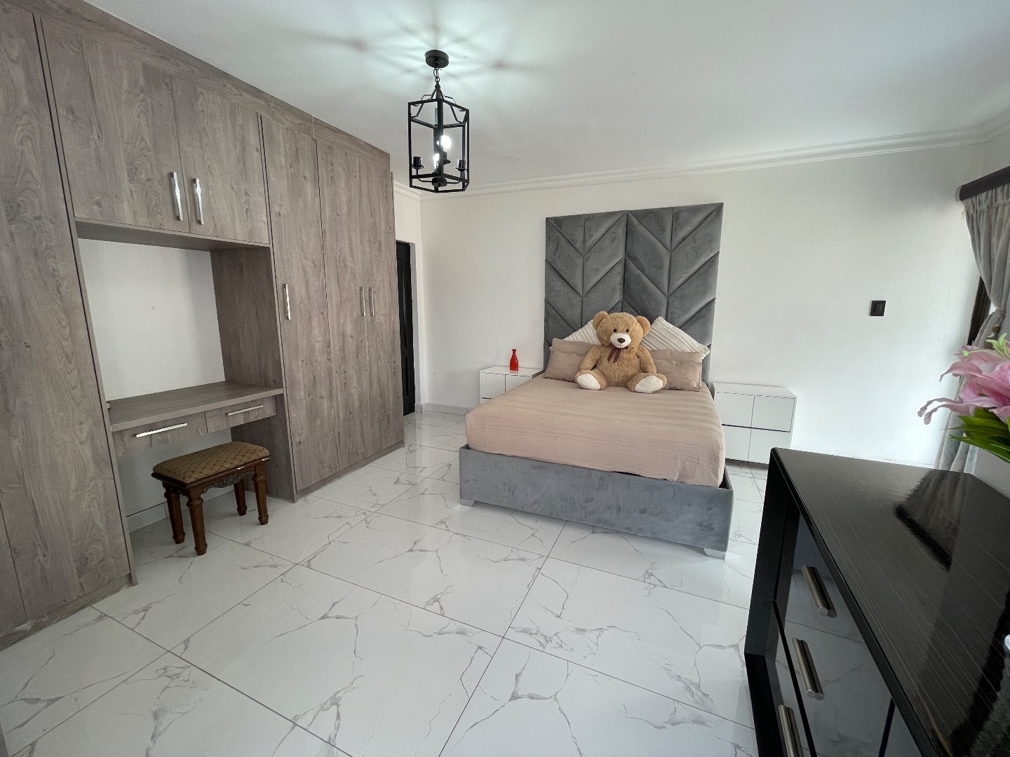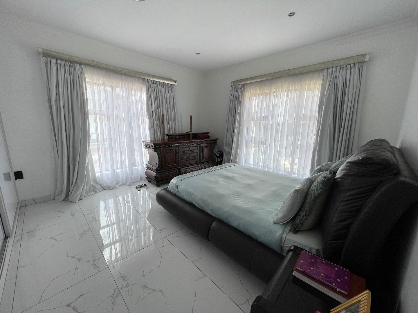 The property features 4 spacious bedrooms, all en suite, including a large bedroom downstairs—ideal for guests or extended family. Upstairs offers 3 bedrooms, with an impressive main bedroom boasting ample space for a walk-in closet, as well as a cozy pyjama lounge.