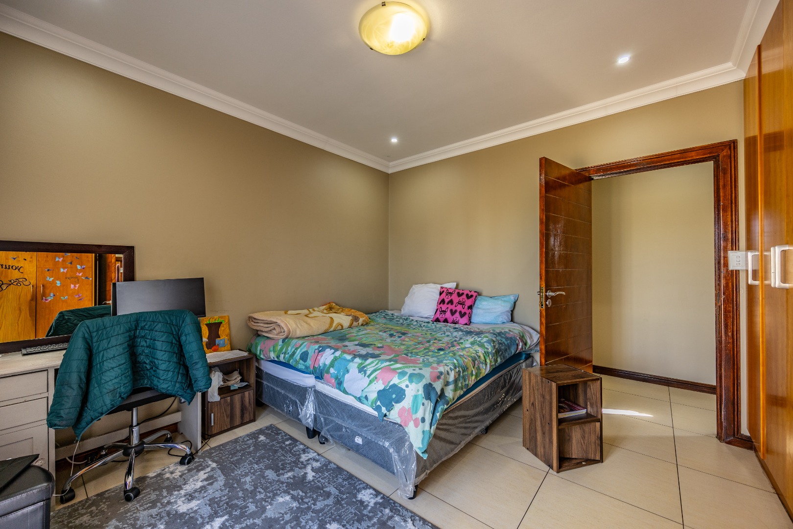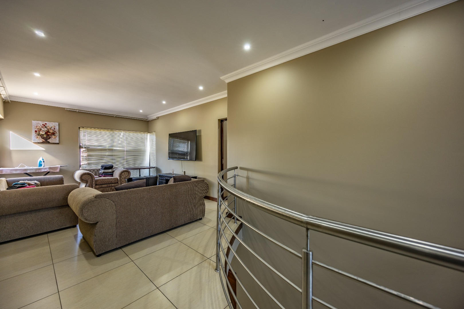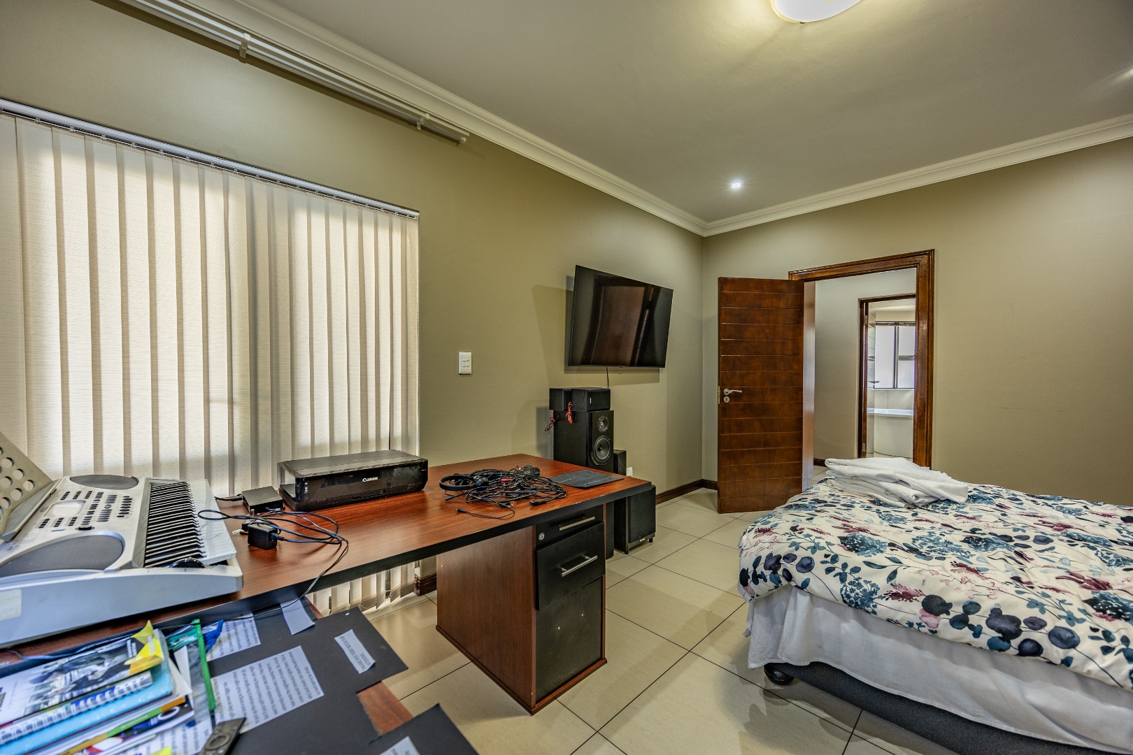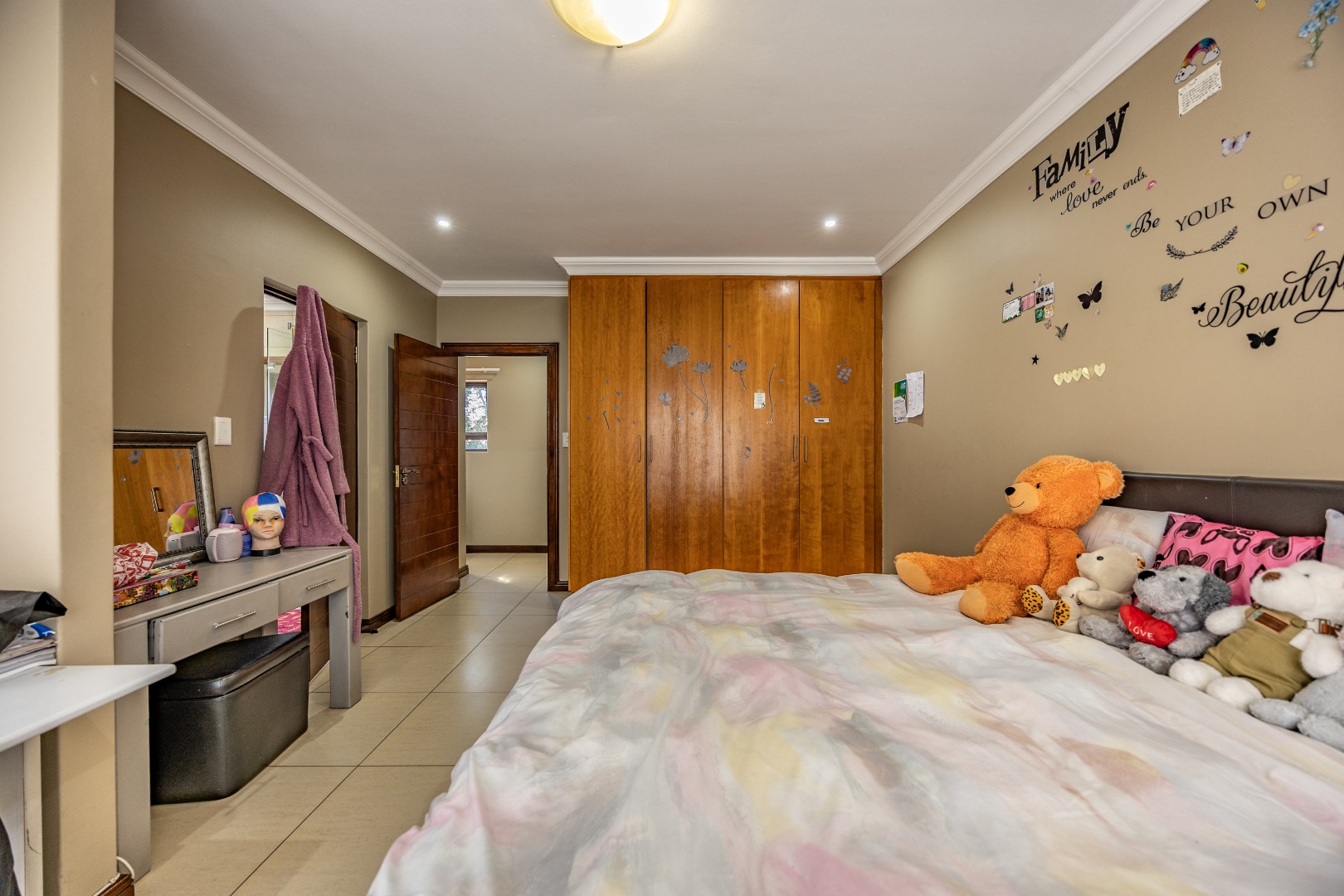 Upstairs, the home continues to impress with a comfortable pajama lounge, ideal for relaxed evenings or a quiet retreat. Three generously sized bedrooms complete the upper level, including two air-conditioned rooms and a luxurious main suite featuring air conditioning, a private balcony, and a full en-suite bathroom with his-and-hers finishes. The second bedroom also enjoys its own en-suite bathroom, air conditioning, and balcony access, creating a sense of space and comfort throughout.