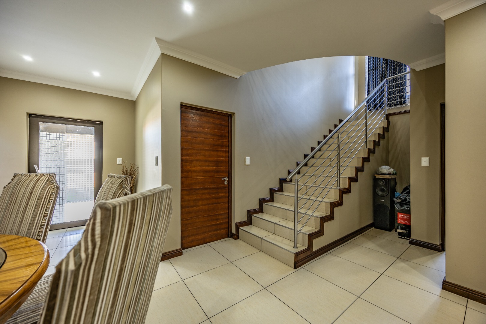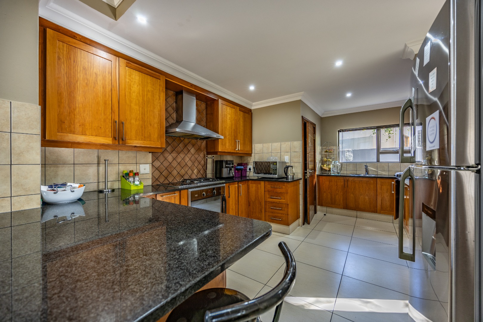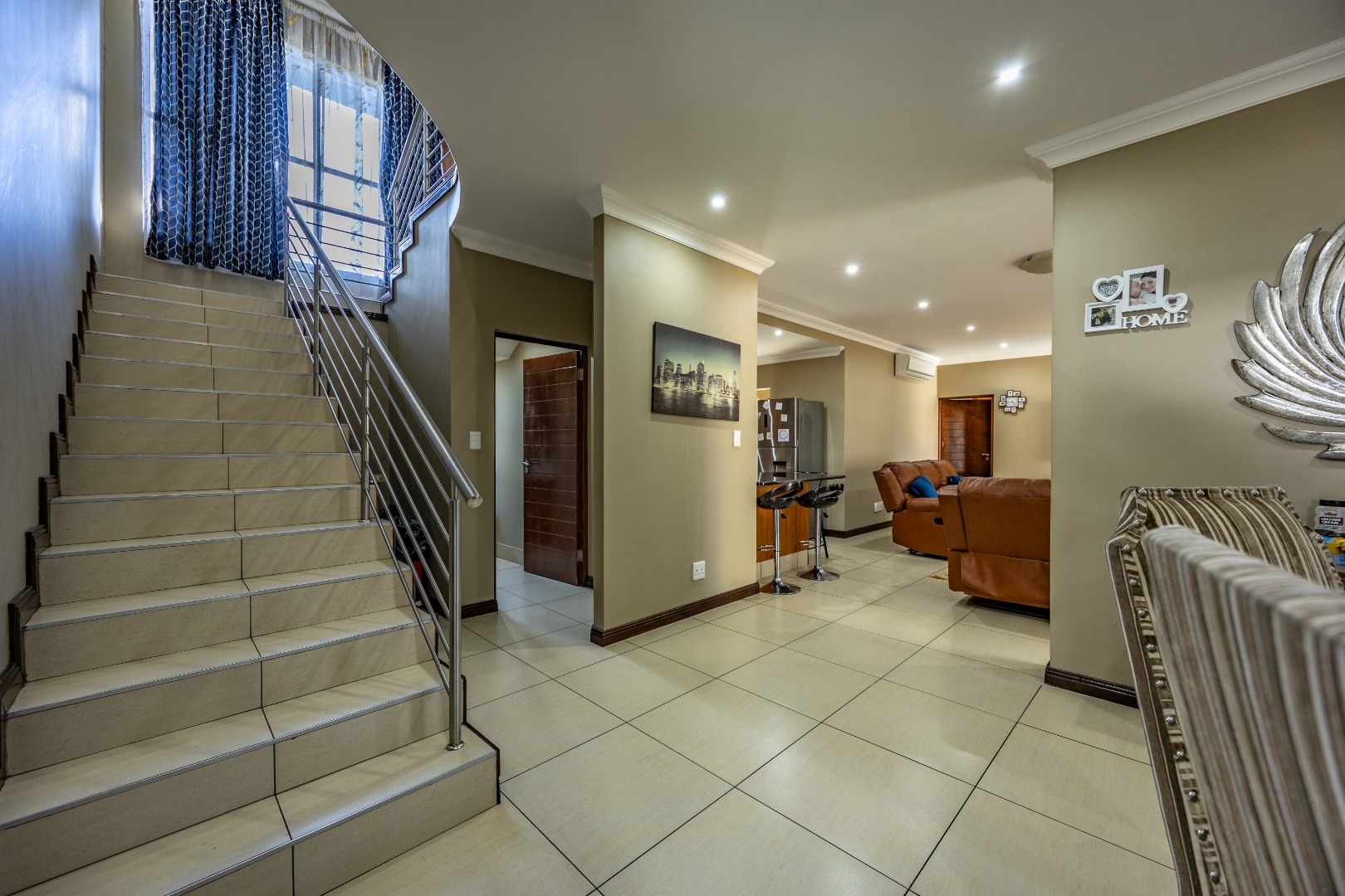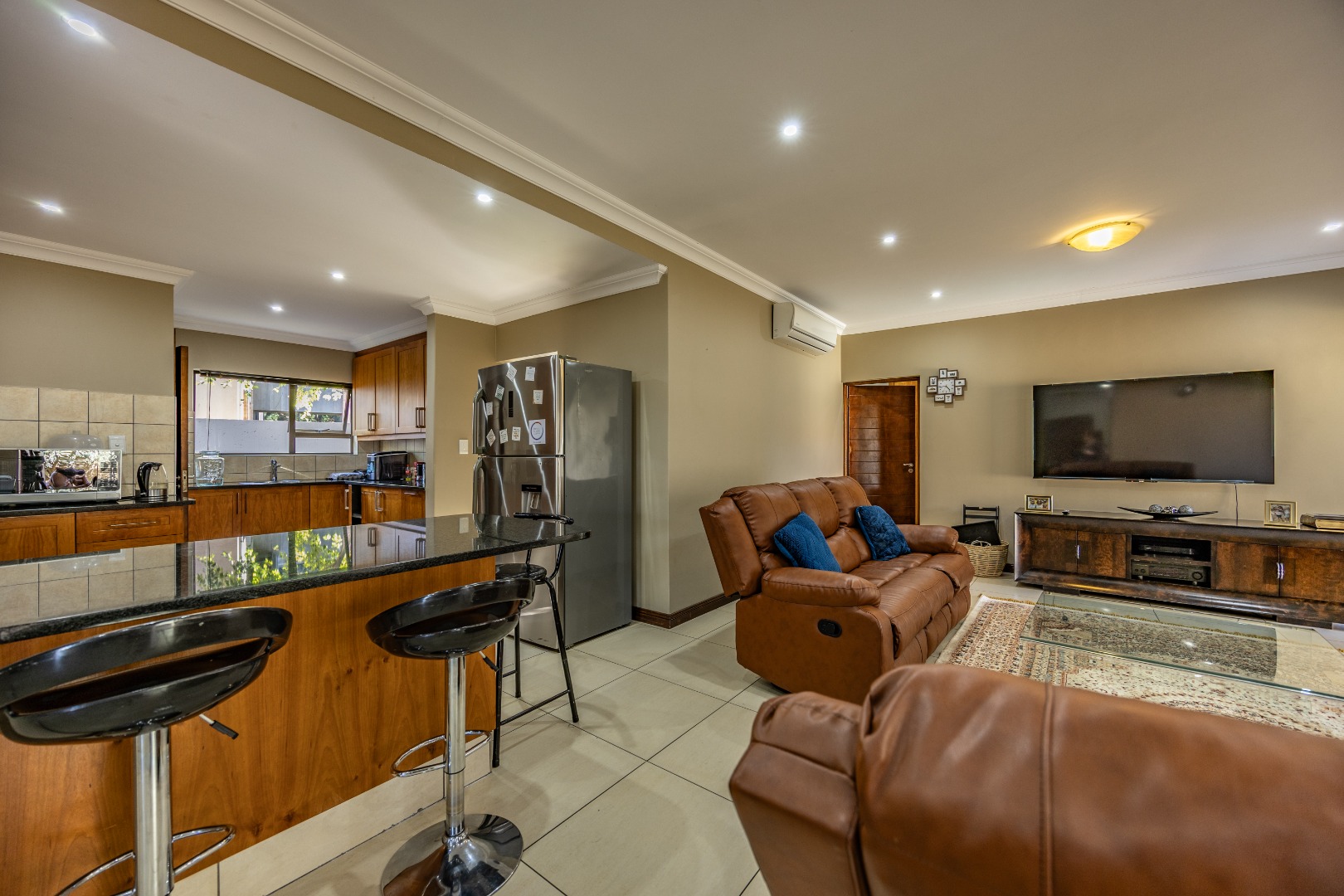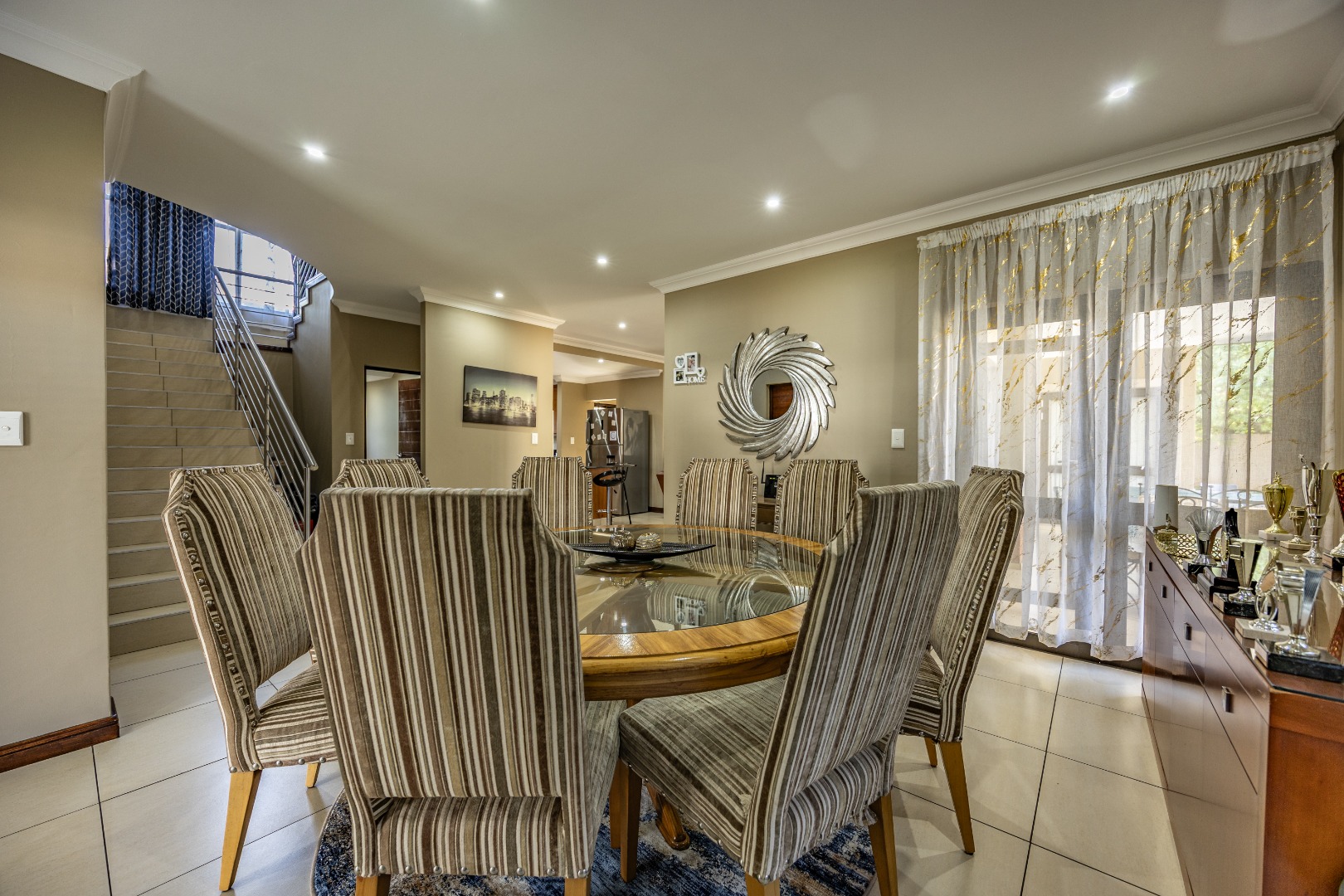 Situated within the prestigious Silverwoods Country Estate, this elegant double-storey residence offers a seamless blend of modern comfort and refined family living. The ground floor welcomes you with spacious open-plan living and dining areas that flow effortlessly into a contemporary kitchen, complete with a gas stove and electric oven—perfect for both everyday living and entertaining. A well-sized guest bedroom is conveniently located downstairs, serviced by a full guest bathroom.