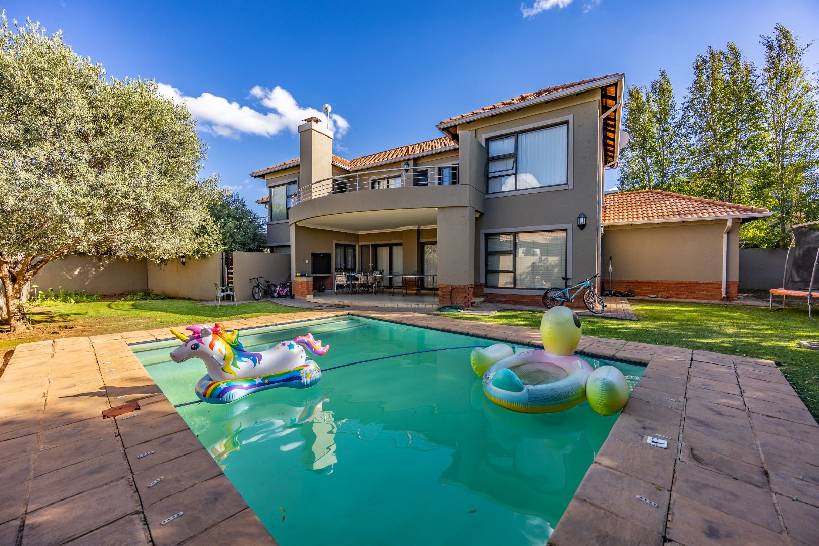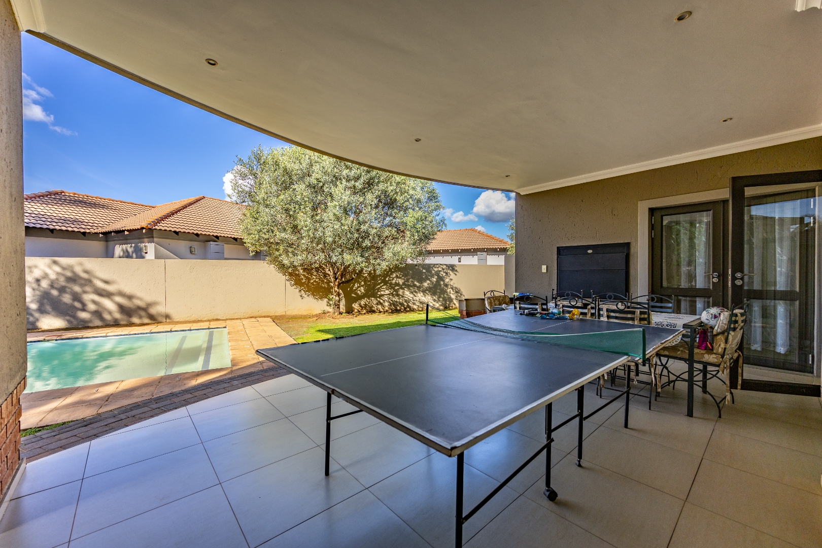 Designed for effortless indoor-outdoor living, the exterior boasts a large garden, a sparkling pool, and an expansive patio perfect for entertaining. The built-in braai area makes hosting gatherings easy and enjoyable, while the double garage ensures secure parking and additional storage. This home offers the perfect balance of style, functionality, and estate living in one of Pretoria’s most sought-after addresses.