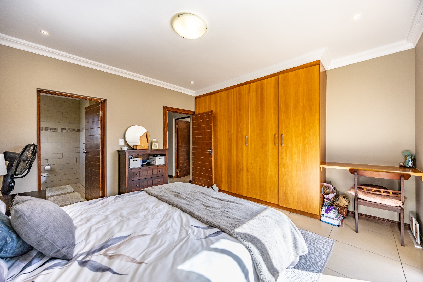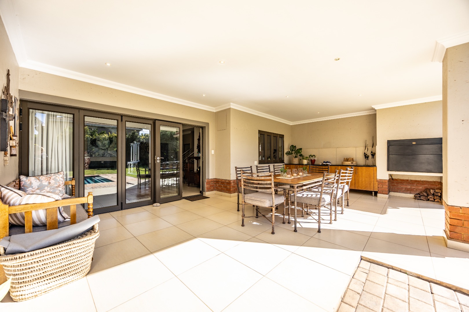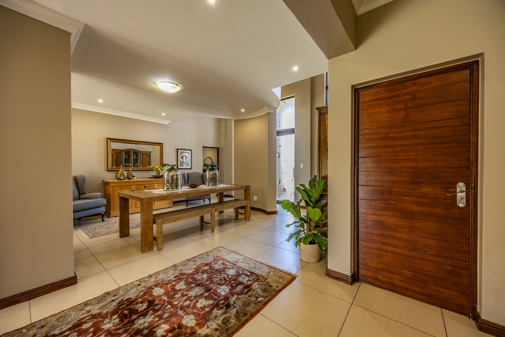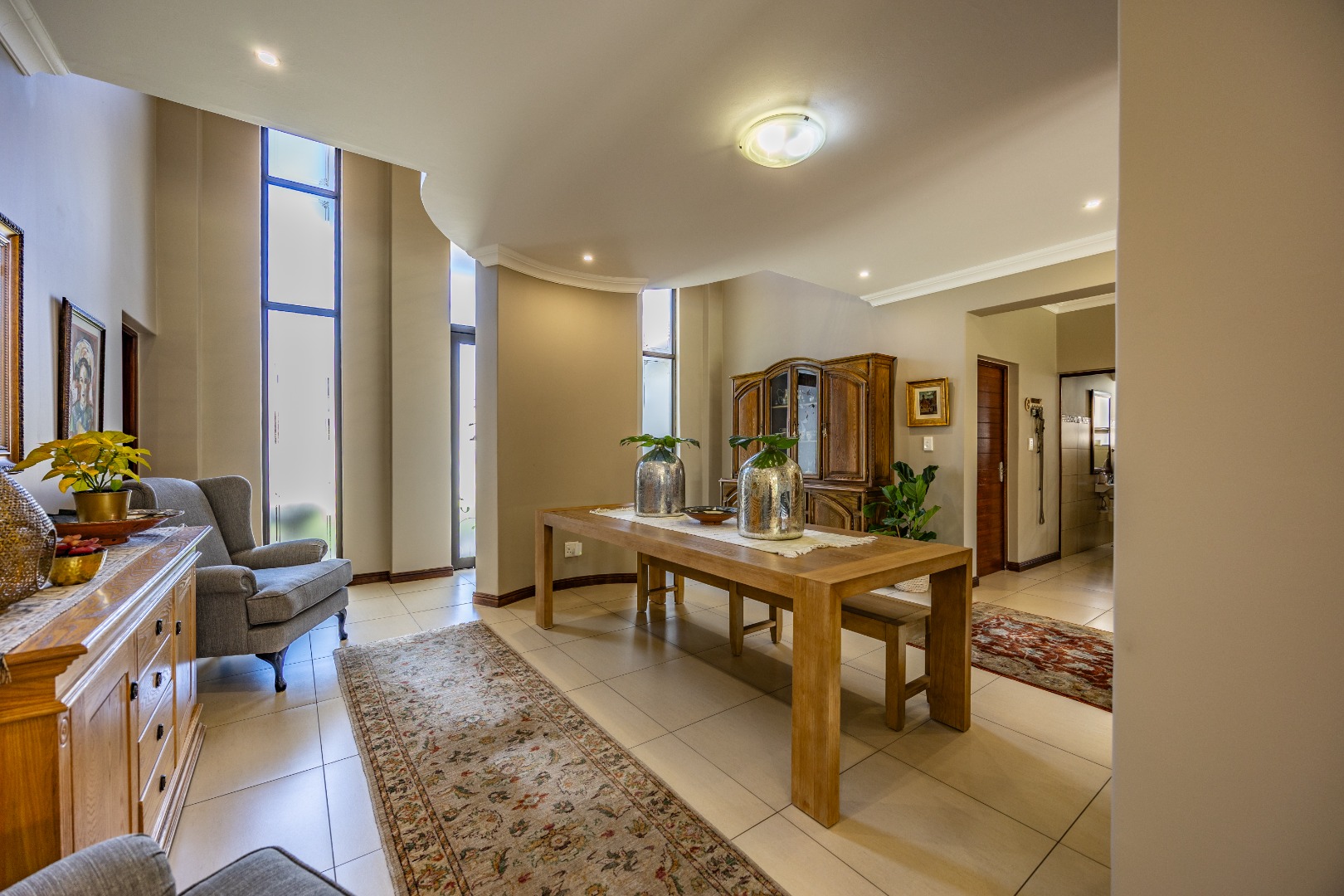 Set on a generous stand, this impressive home is designed for comfortable family living with a strong focus on entertaining. The outdoor space features a large garden, a sparkling pool, and an expansive entertainment area complete with a built-in braai—perfect for hosting friends and family year-round. Three garages provide ample parking and storage, adding to the practicality of this well-rounded property.
