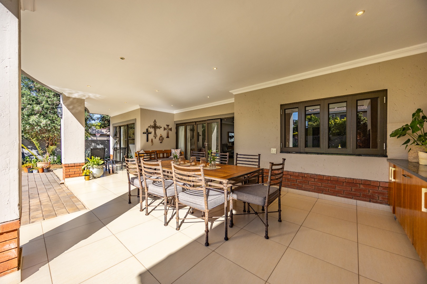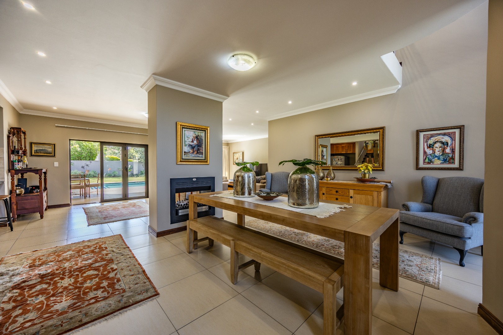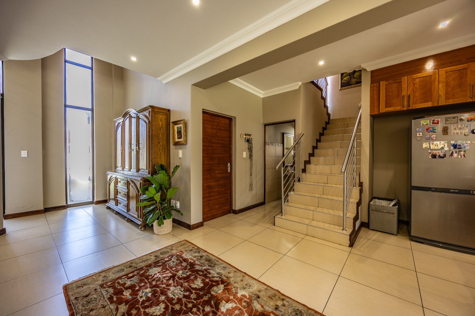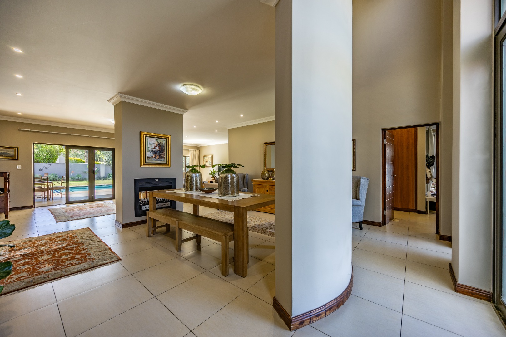 Set on a generous stand, this impressive home is designed for comfortable family living with a strong focus on entertaining. The outdoor space features a large garden, a sparkling pool, and an expansive entertainment area complete with a built-in braai—perfect for hosting friends and family year-round. Three garages provide ample parking and storage, adding to the practicality of this well-rounded property.