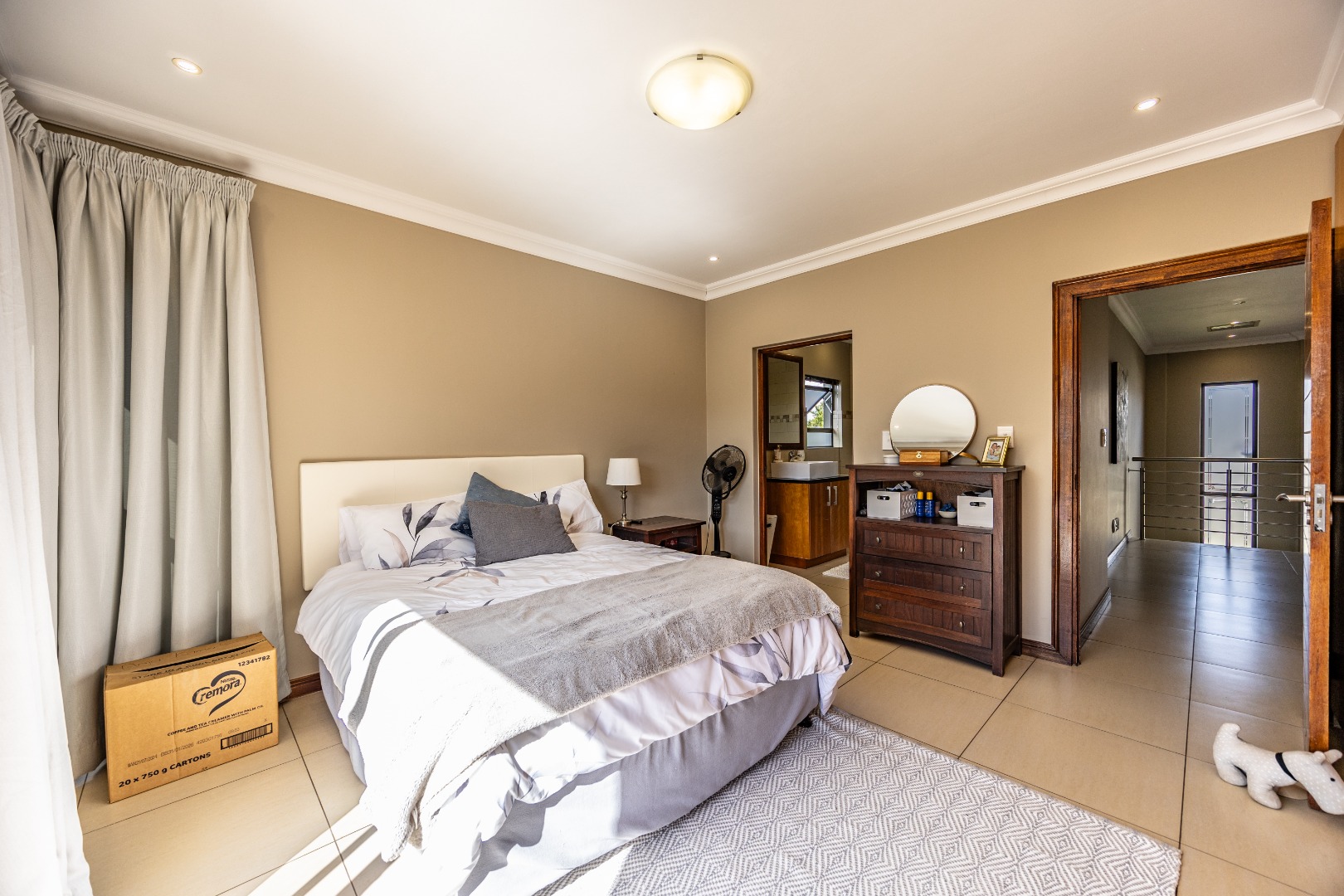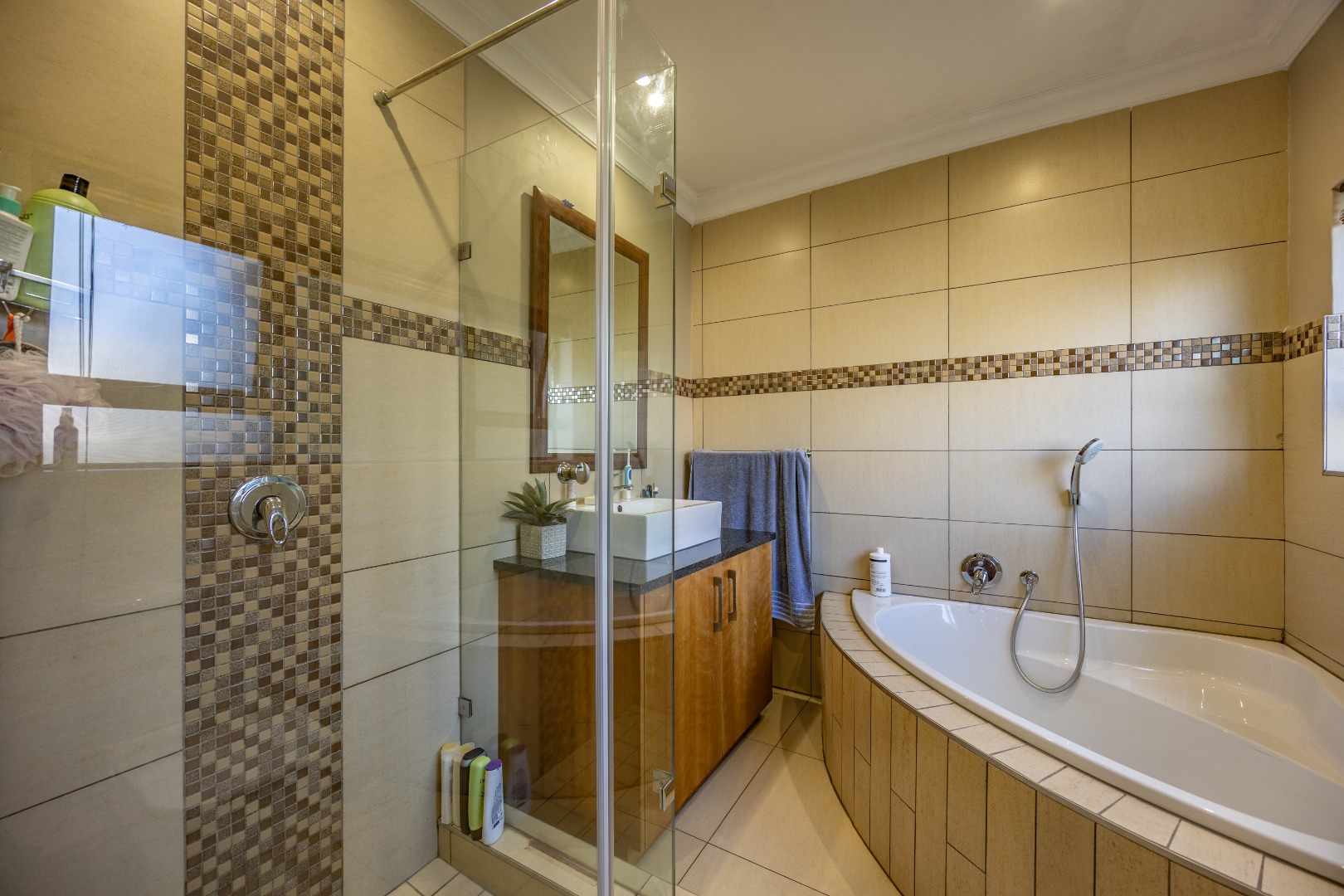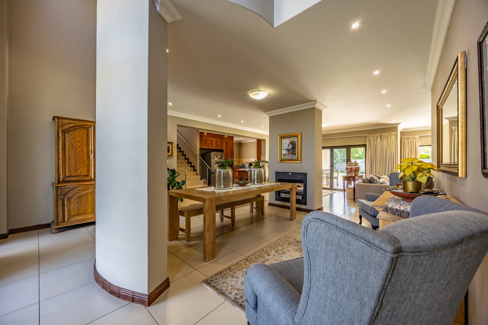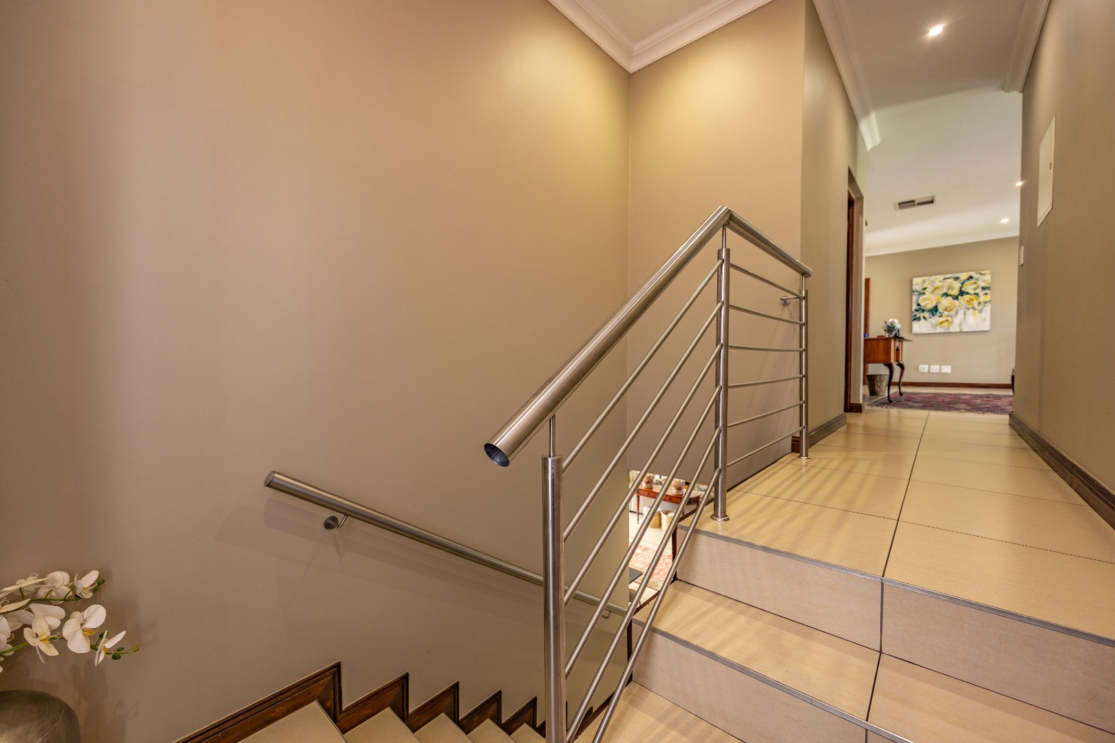 Set on a generous stand, this impressive home is designed for comfortable family living with a strong focus on entertaining. The outdoor space features a large garden, a sparkling pool, and an expansive entertainment area complete with a built-in braai—perfect for hosting friends and family year-round. Three garages provide ample parking and storage, adding to the practicality of this well-rounded property.