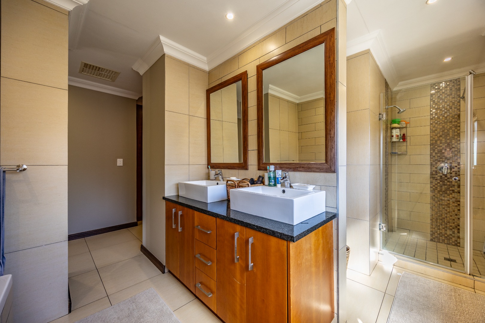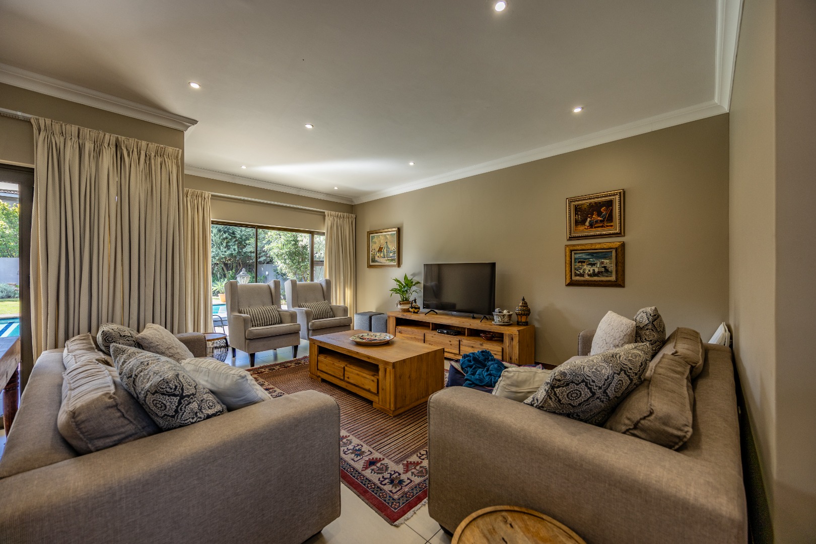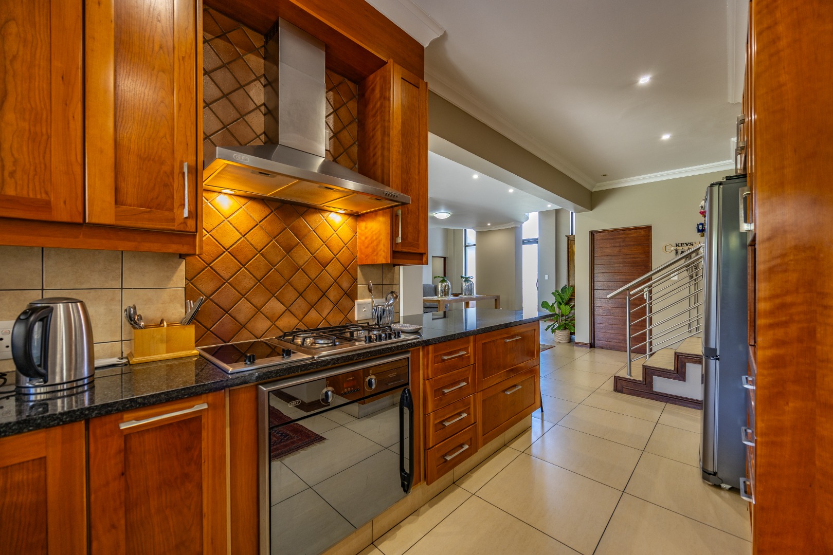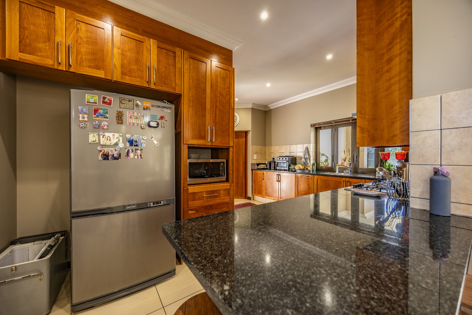 Set on a generous stand, this impressive home is designed for comfortable family living with a strong focus on entertaining. The outdoor space features a large garden, a sparkling pool, and an expansive entertainment area complete with a built-in braai—perfect for hosting friends and family year-round. Three garages provide ample parking and storage, adding to the practicality of this well-rounded property.