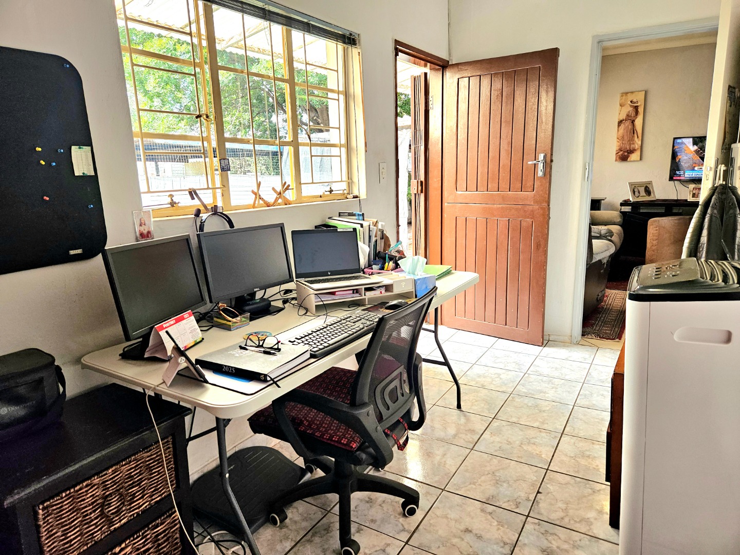 For those requiring additional workspace, two dedicated studies provide the ideal setting for remote work or studying. Storage is ample, with two linen cupboards, while a covered carport accommodates up to four vehicles, complemented by additional parking space. Extras such as an outside toilet, solar geyser, alarm beams for enhanced security, and high-speed fibre connectivity further elevate the appeal of this exceptional residence.