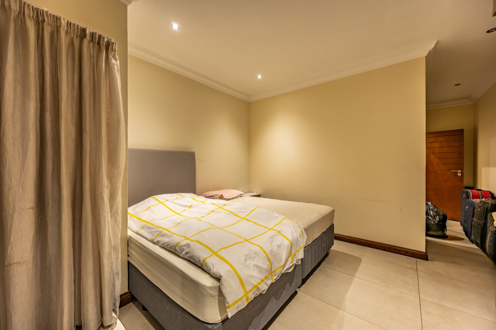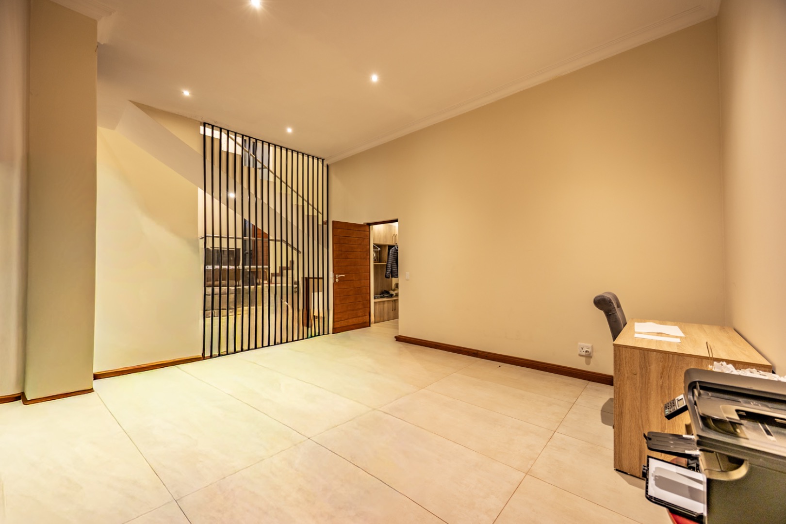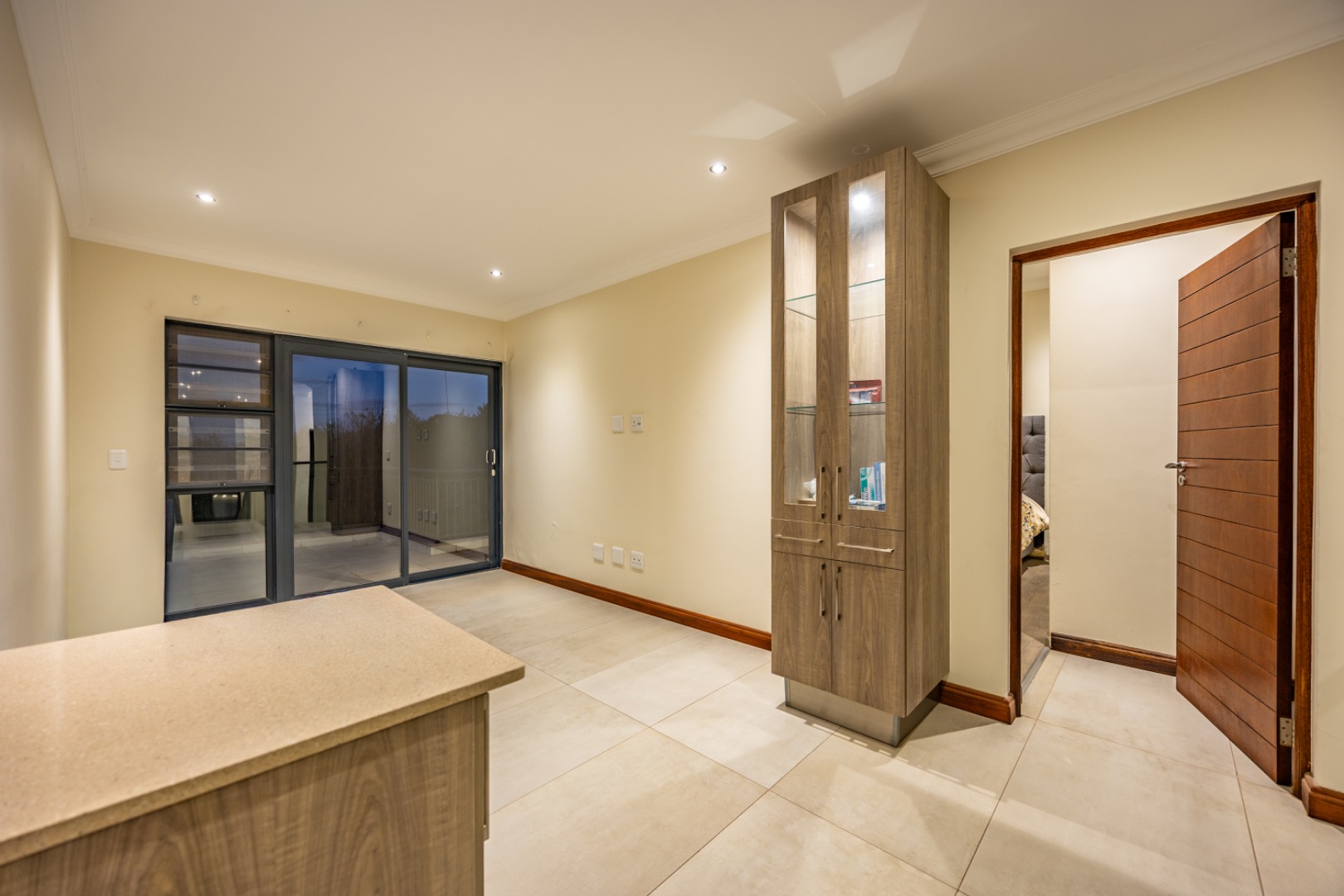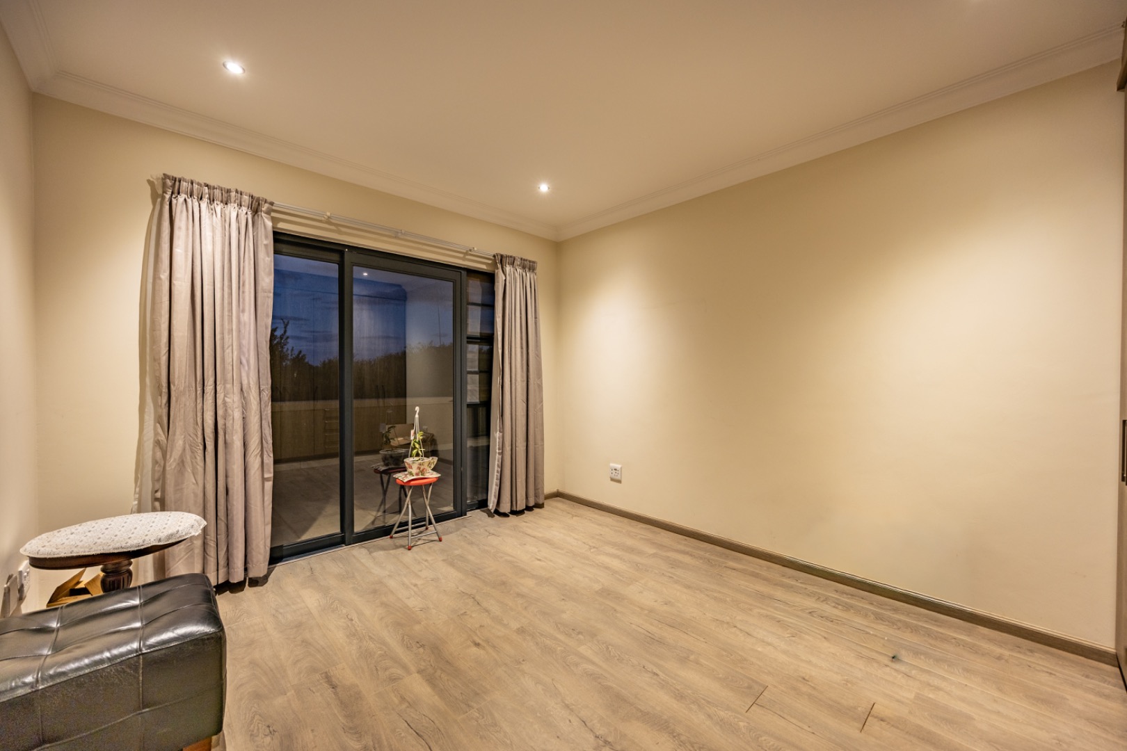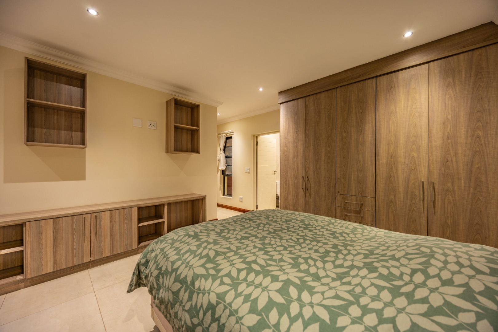 Upstairs, the home continues to offer comfortable accommodation with a relaxed pajama lounge and a tranquil zen garden that adds a peaceful touch to the space. Two well-sized bedrooms provide excellent comfort, including one with a full en-suite bathroom, built-in shelving and cupboards, and air conditioning, while the second bedroom offers built-in cupboards and access to a private balcony. The main bedroom suite serves as a private retreat, complete with air conditioning, a spacious walk-in closet, and a stylish en-suite bathroom with a large shower.