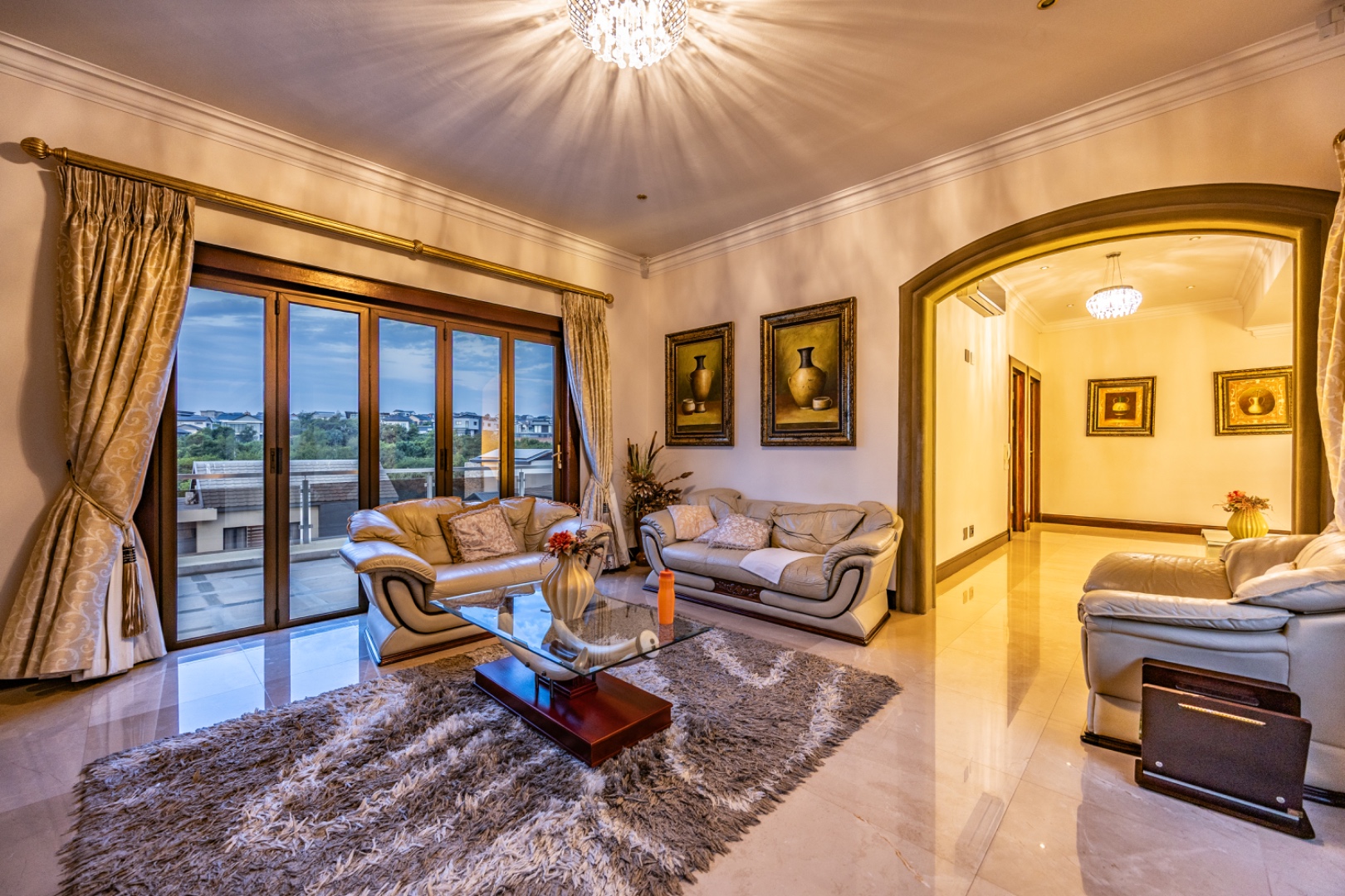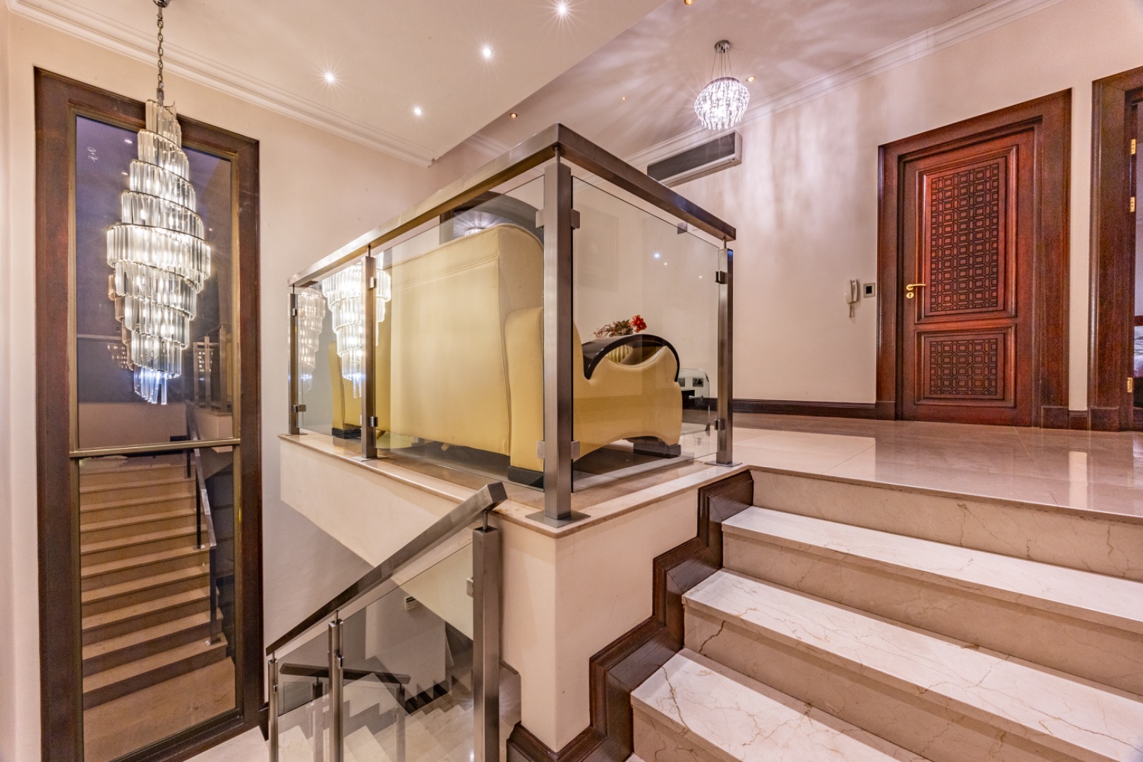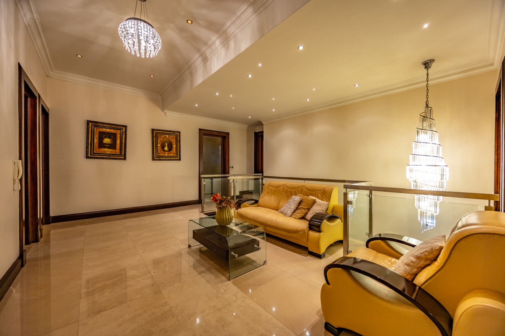 - Marble flooring throughout living areas