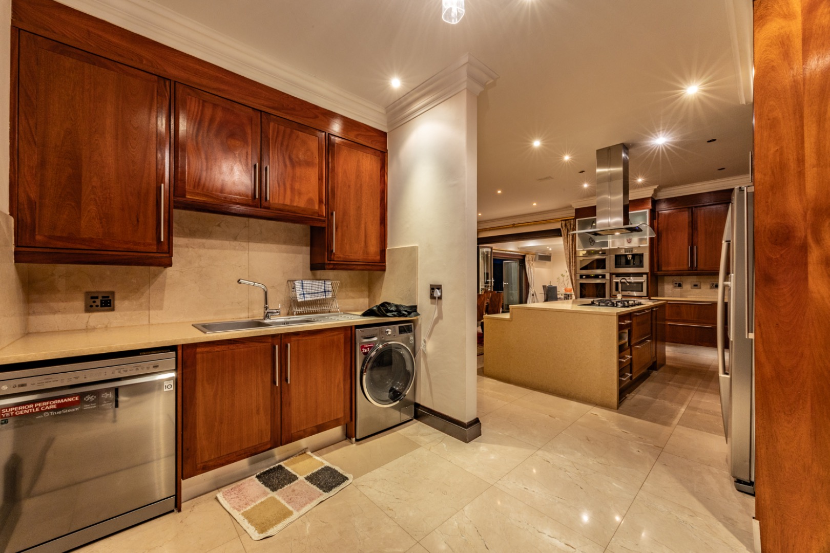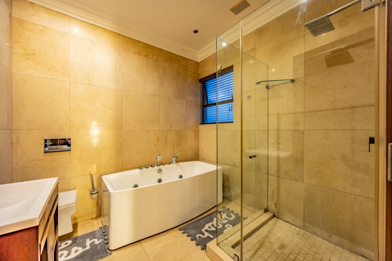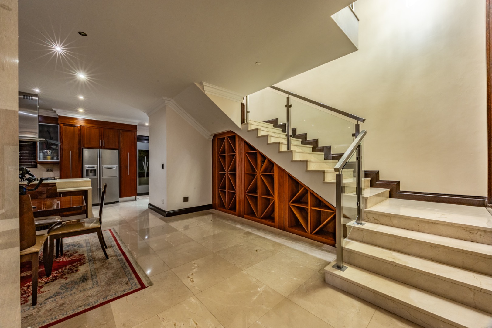 - Marble flooring throughout living areas