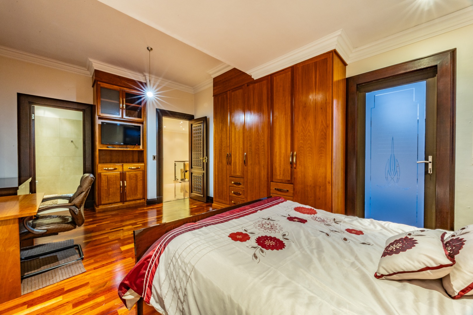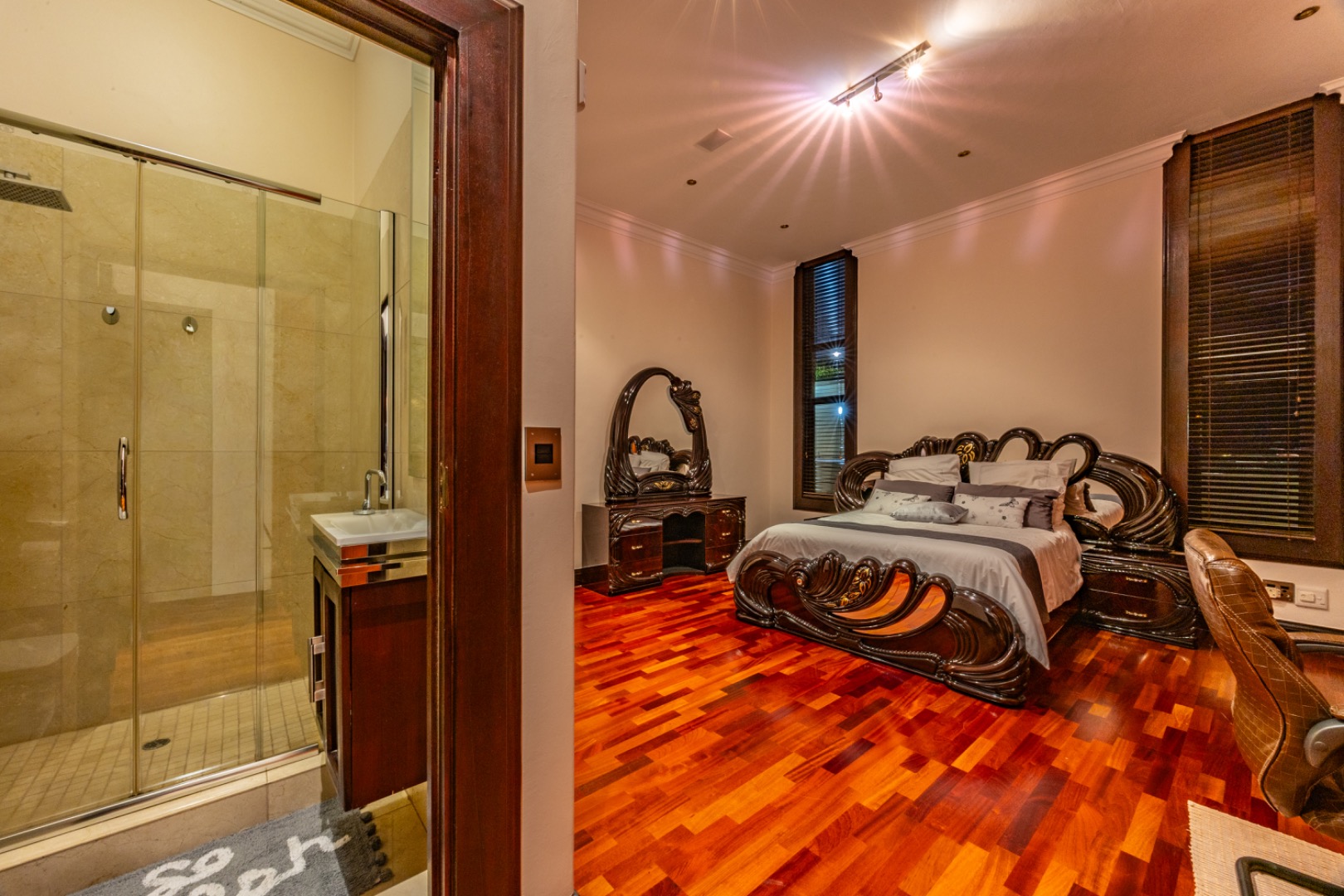 The luxurious master suite features:
