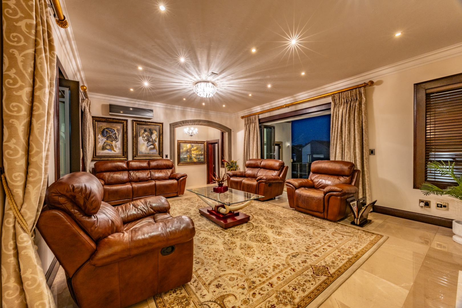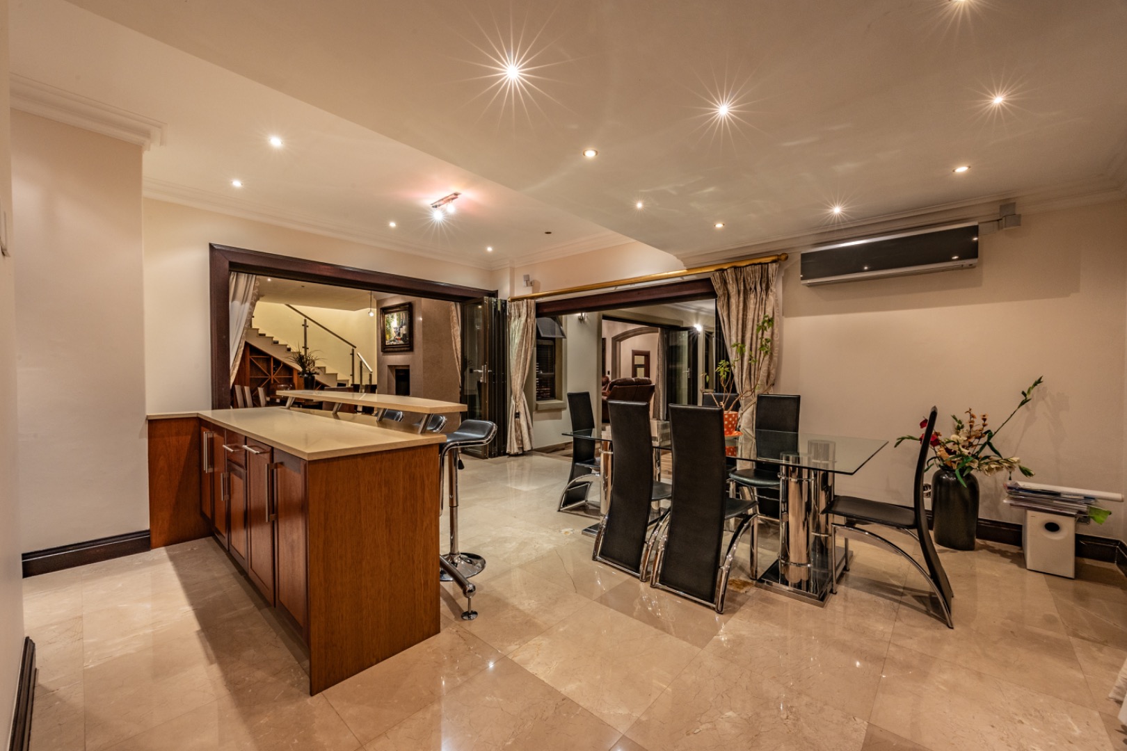 Comfort is ensured with 11 air-conditioning units, underfloor heating throughout, and a full surround sound systemintegrated across the home.