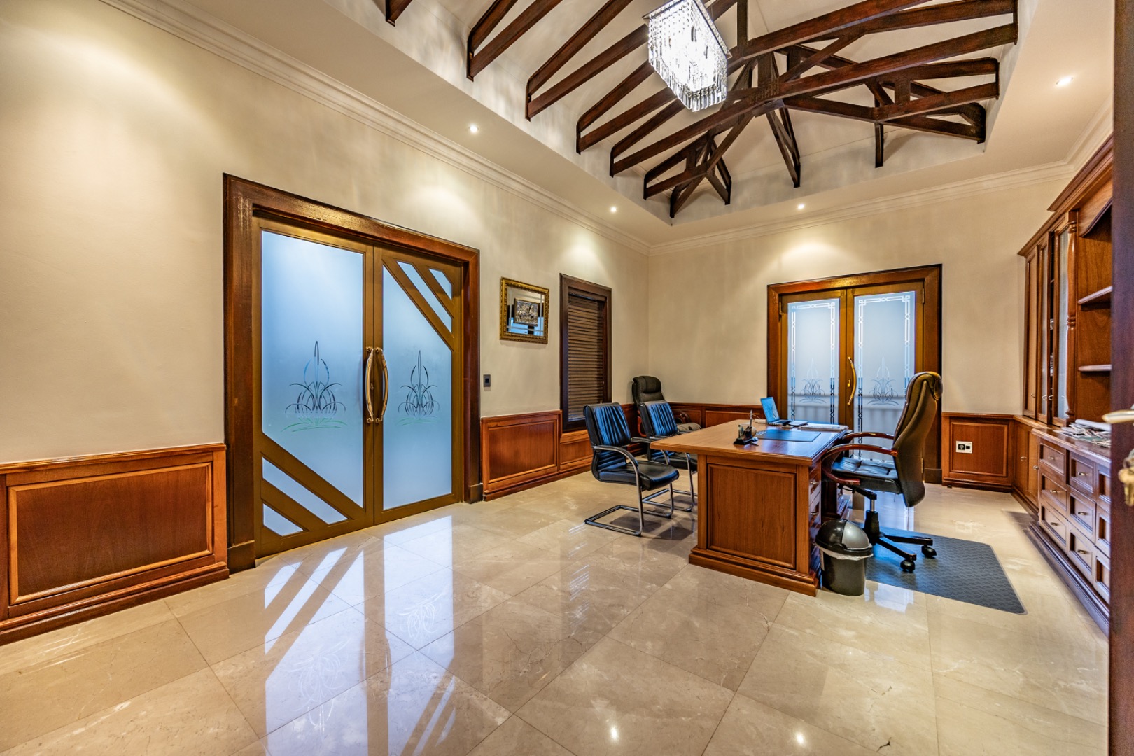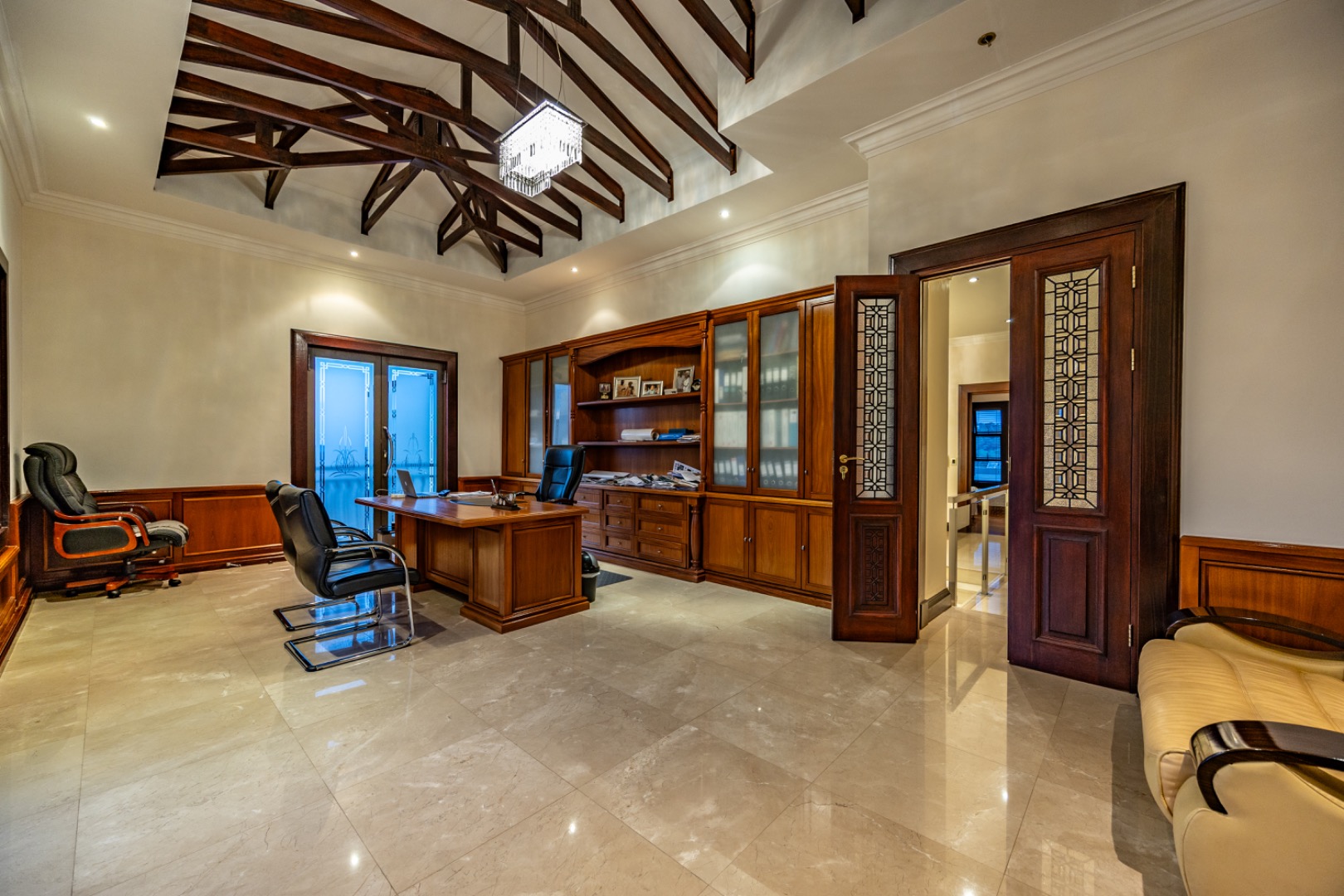 - Custom carved wooden doors