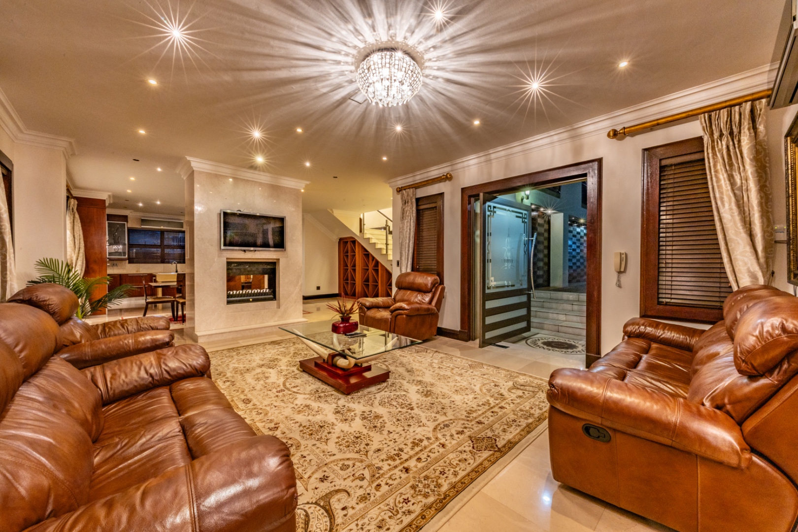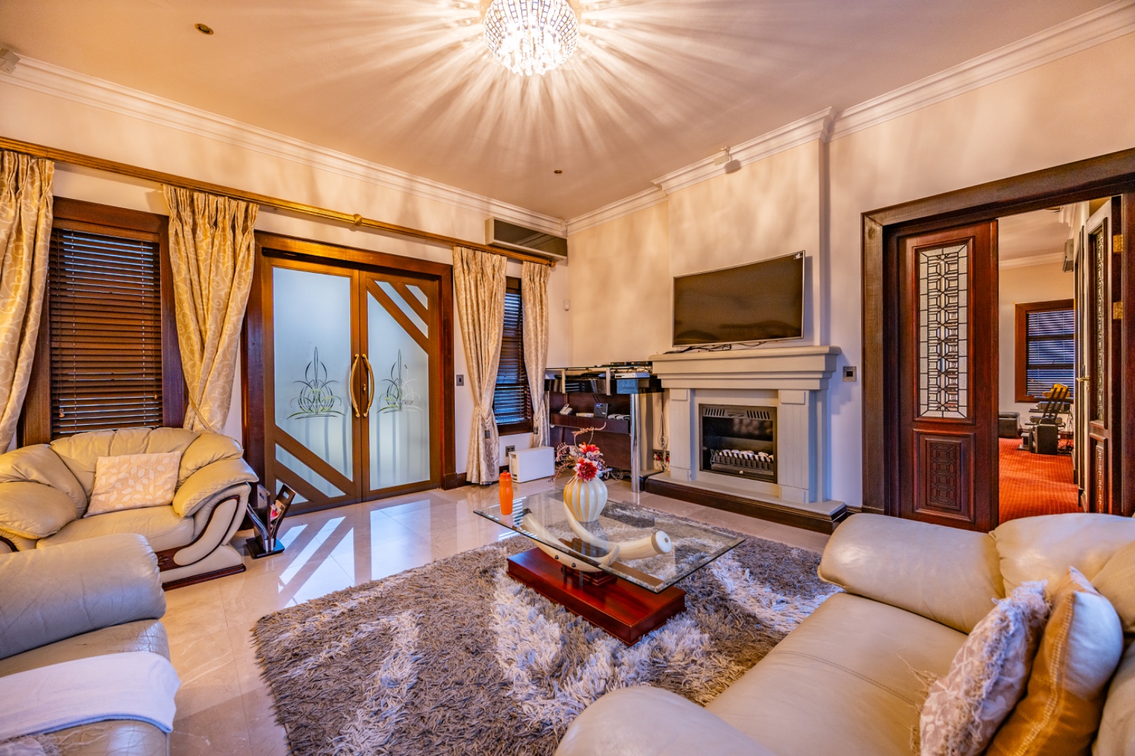 - Spacious lounge with double gas fireplace