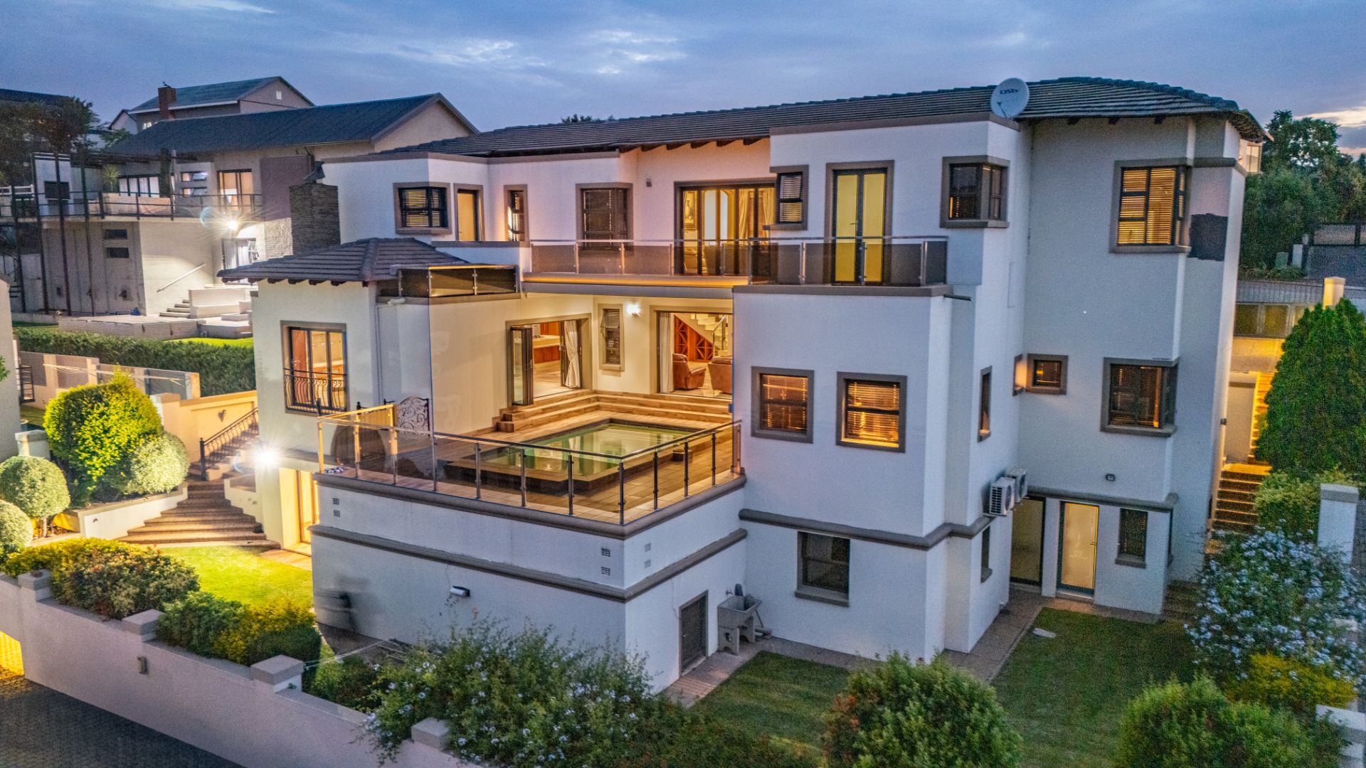 Situated in the prestigious The Hills Game Reserve Estate, this exceptional three-level luxury residence offers an impressive 673m² under roof on a 988m² stand, combining elegant design, premium finishes and versatile living spaces.
