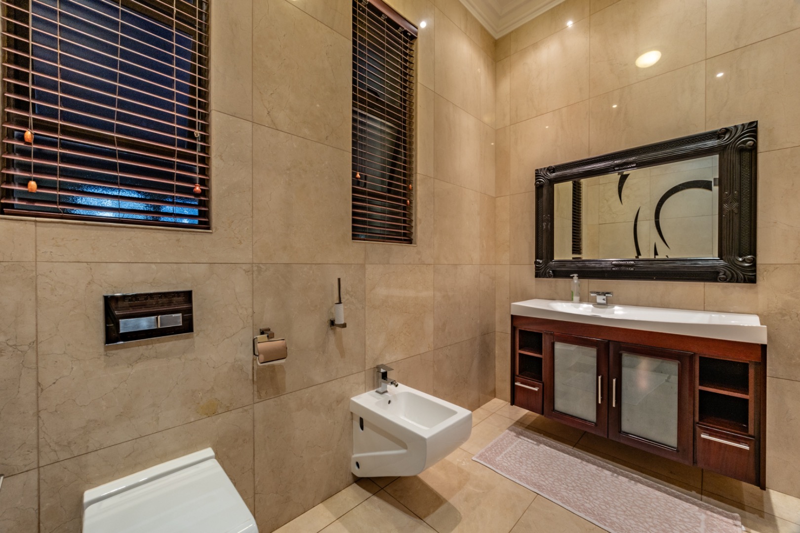 - Guest powder room with marble finishes