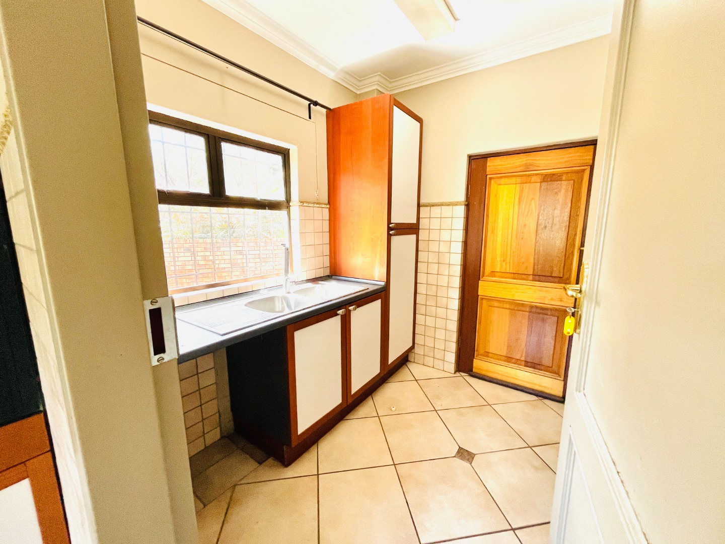 This lovely family home is situated in the secure, boomed-off Wapadrand Security Estate and offers space, comfort, and versatility. The property features two separate dwellings – a three-bedroom main house and a separate office or granny flat with its own electricity and water meters, making it ideal for extended family, rental income, or working from home. The home welcomes you with a large open-plan kitchen with ample cupboard space, a walk-in pantry, and a separate scullery. The kitchen flows into a spacious living and dining area that opens onto the patio and entertainment space, perfect for relaxed family living. The generous 1,222m² garden is beautifully maintained with established trees and a tranquil water feature.