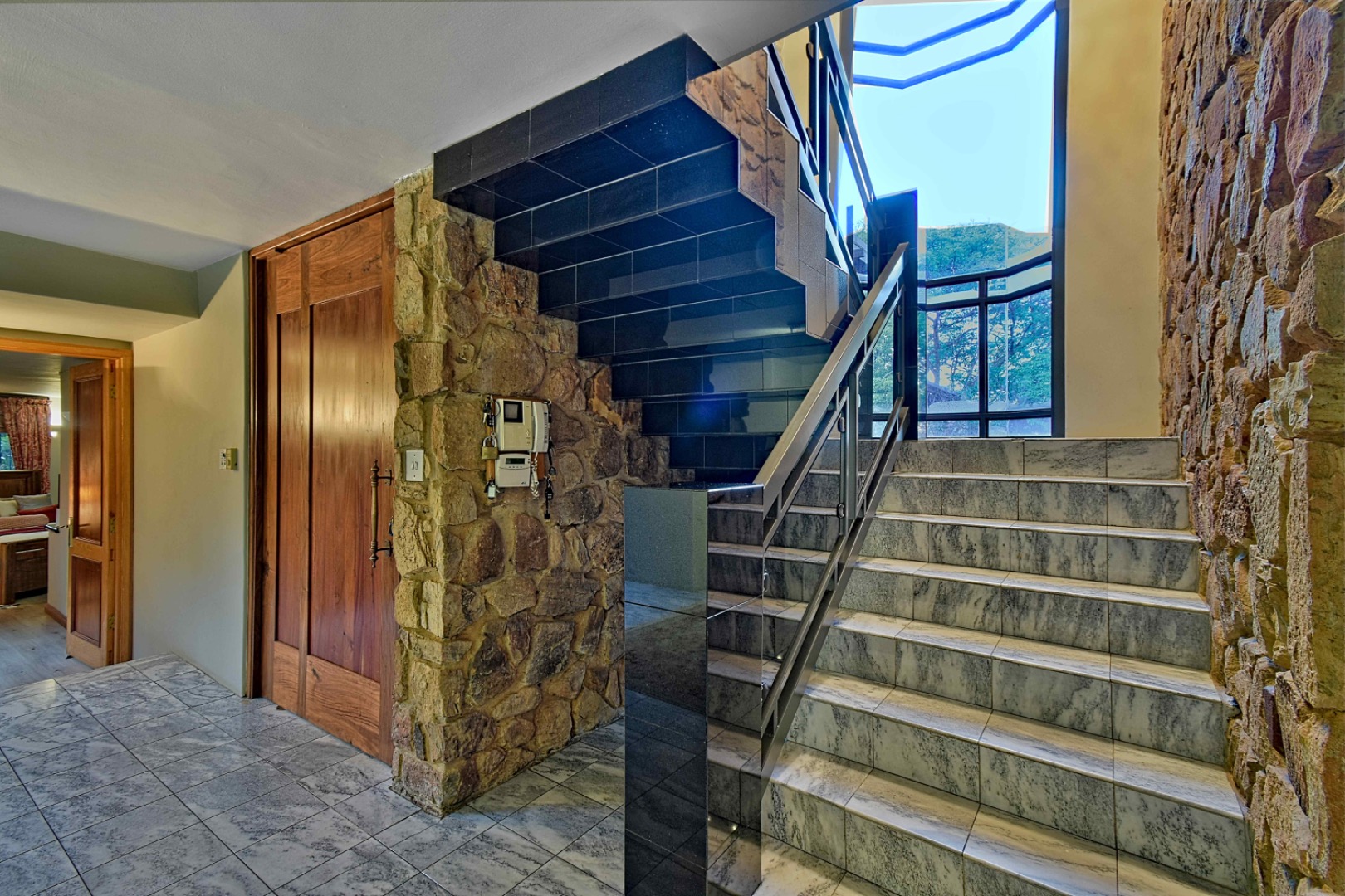 The property has 3 phase electricity and is also powered by a robust solar system consisting of 16 panels, 4 batteries, and an 8kW inverter, covering all lighting indoor, outdoor, and guard house. A 44KVA generator serves as a backup power source. Water supply is secured with a fully operational borehole connected to the main house, garden, guard house, and servant’s quarters. This is supported by two 5,000-liter JoJo tanks and a 10,000-liter backup tank, along with four pressure pumps and five geysers.