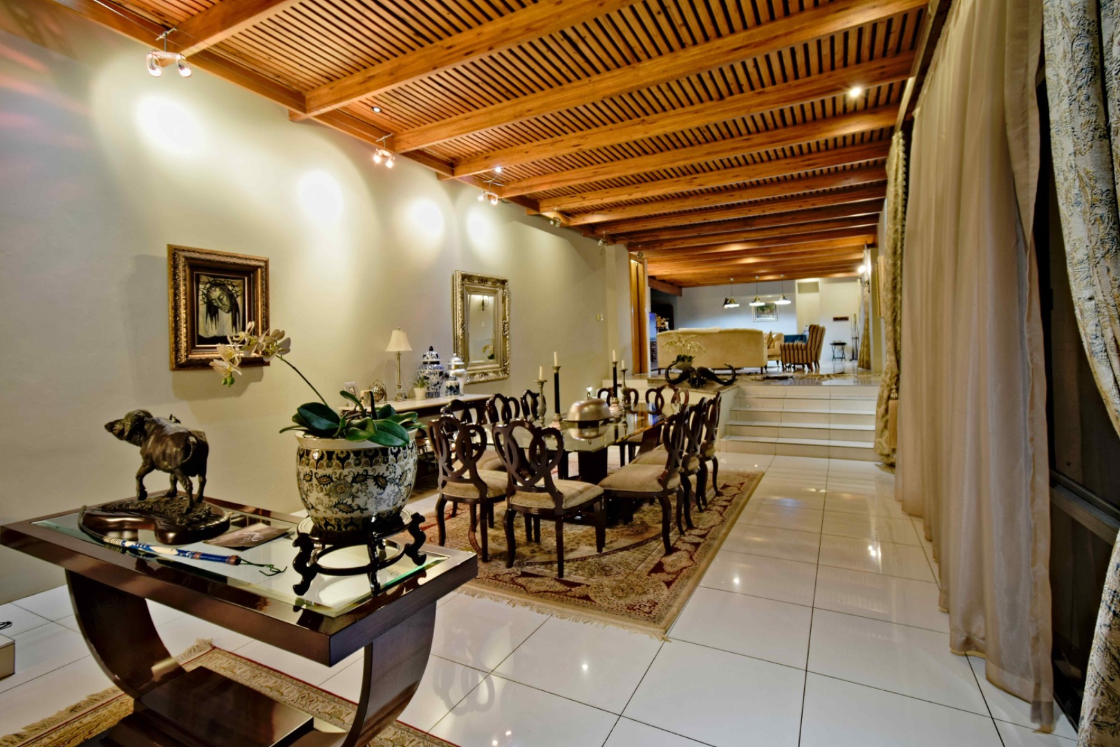 This impressive 4 bedroom property, located in Waterkloof Park, offers a blend of luxury, comfort, and functionality. Upon entering, you're welcomed by a grand entrance hall leading to a guest bedroom ensuite, ideal for visitors. A private flatlet with its own kitchen, bathroom, living room, and secluded patio provides a perfect setup for extended family or rental opportunity.
