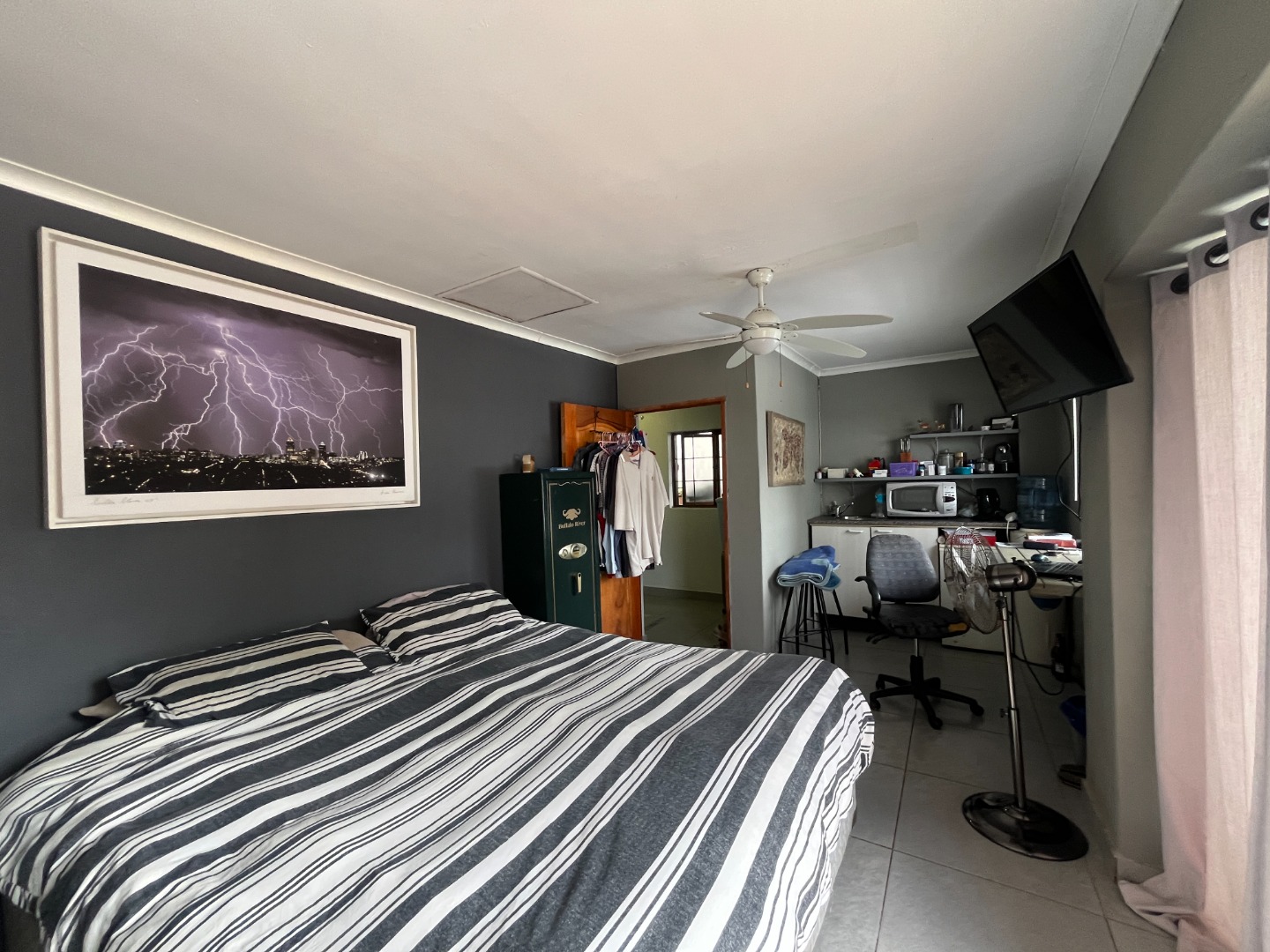 A fourth bedroom with its own entrance connects to the main house and is ideal for a private home office or guest suite. The property also includes a separate flatlet with its own entrance, featuring an open-plan bedroom, kitchenette, and a bathroom with a shower, basin and toilet. Additional outdoor features include double automated tandem garages, a toolshed, domestic bathroom, and a 2,500-litre JoJo water tank, making this property a fantastic opportunity with plenty of potential.