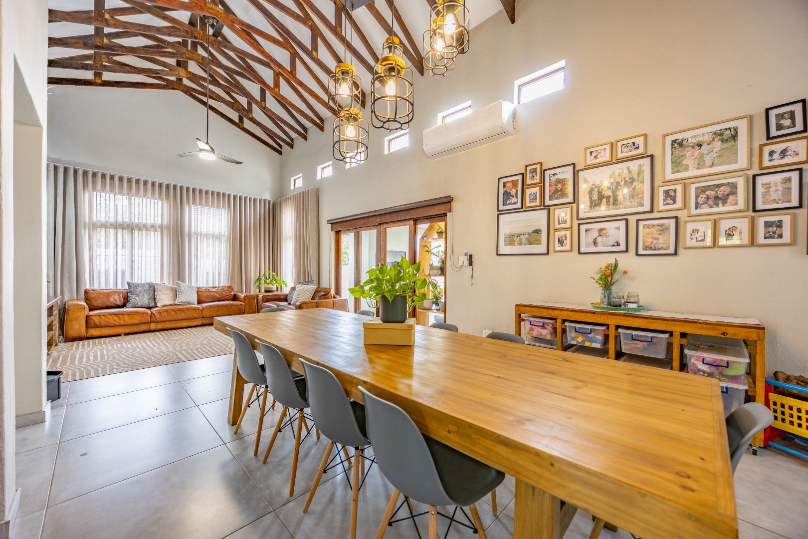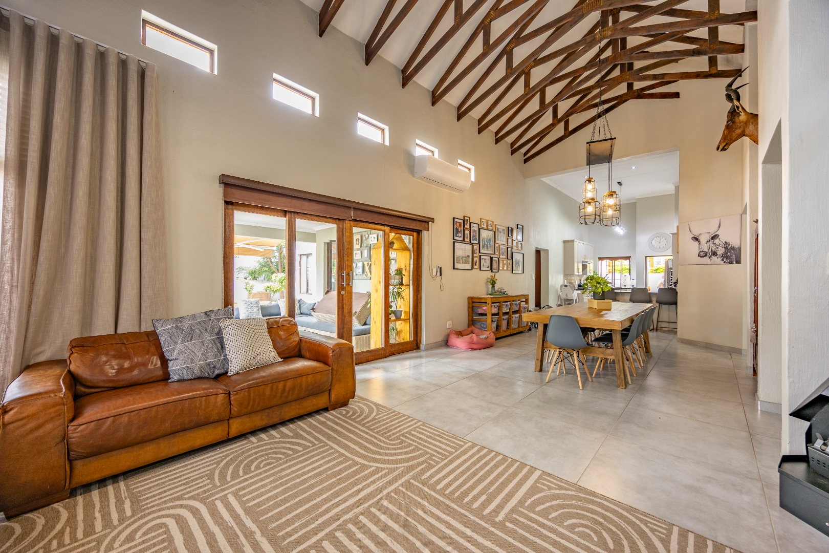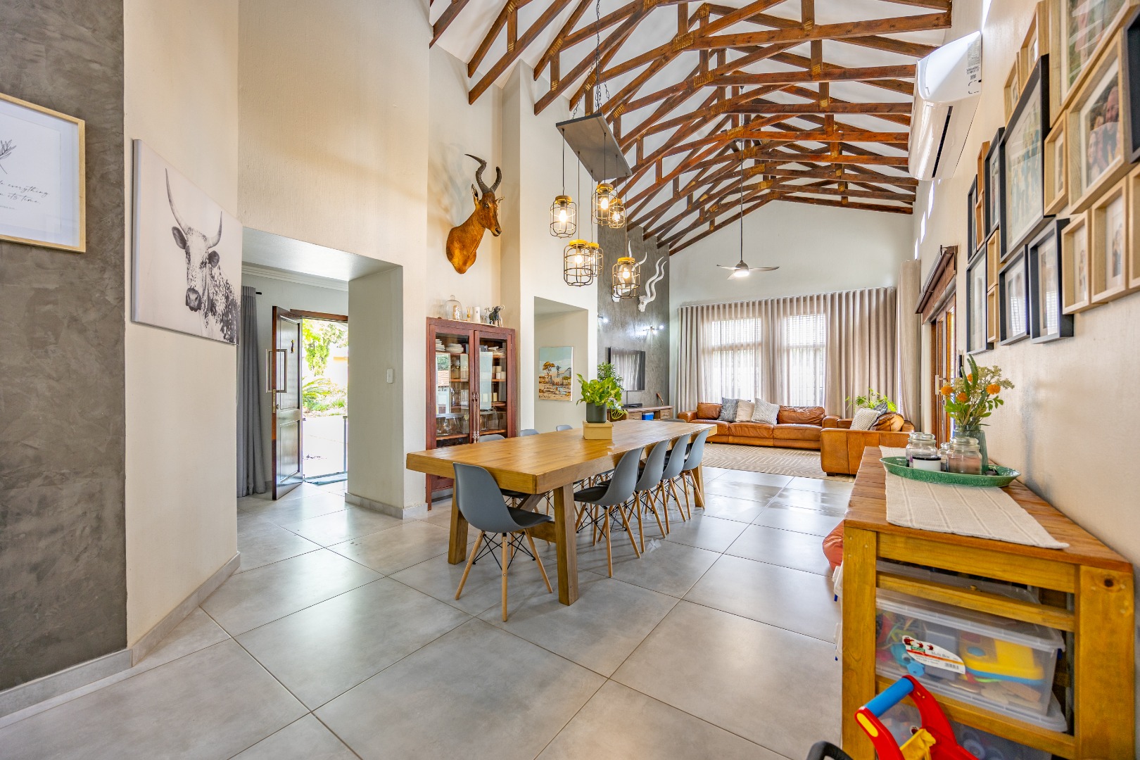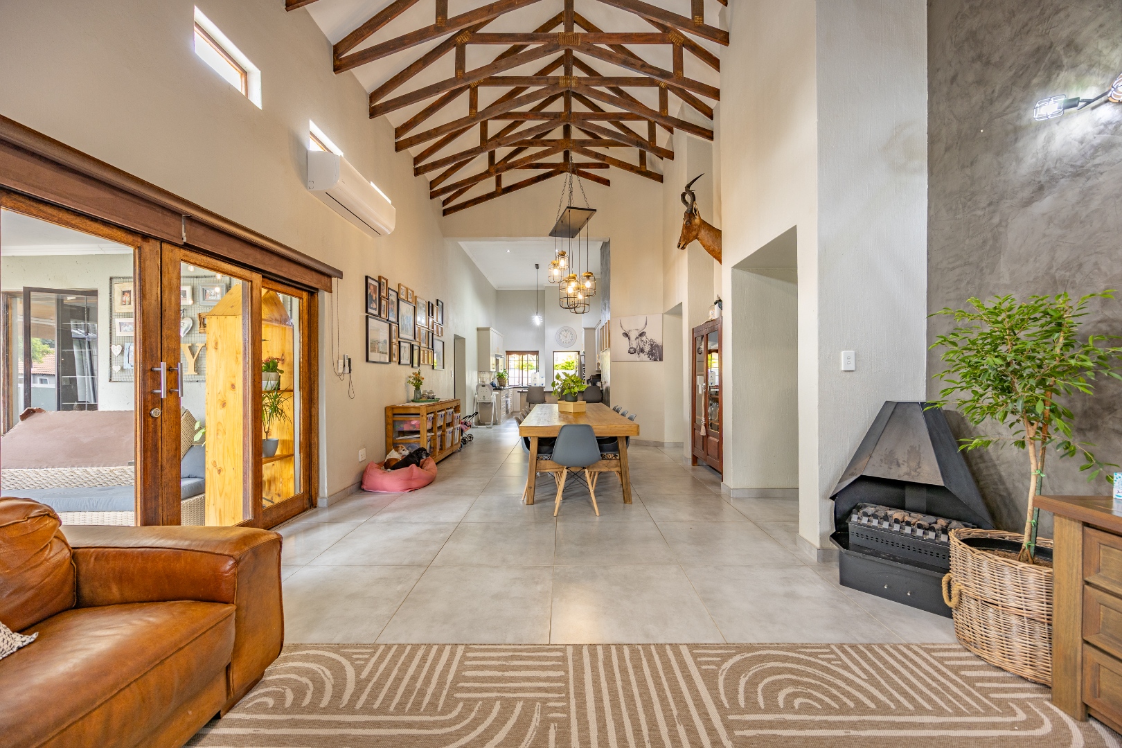 Elegant Comfort, Effortless Living, tucked away in the secure Willow Acres Estate, this beautifully upgraded home offers a seamless blend of family comfort and modern convenience. From the moment you step inside, you’re welcomed by expansive open-plan living areas, centred around a gas fireplace and cooled by a large aircon – perfect for year-round entertaining. The kitchen is a chef’s dream with a gas stove, space for a double fridge, and a generous scullery with a walk-in pantry and room for three appliances. A guest toilet, versatile study or fourth bedroom, and new tiled floors throughout add to the home’s thoughtful design.