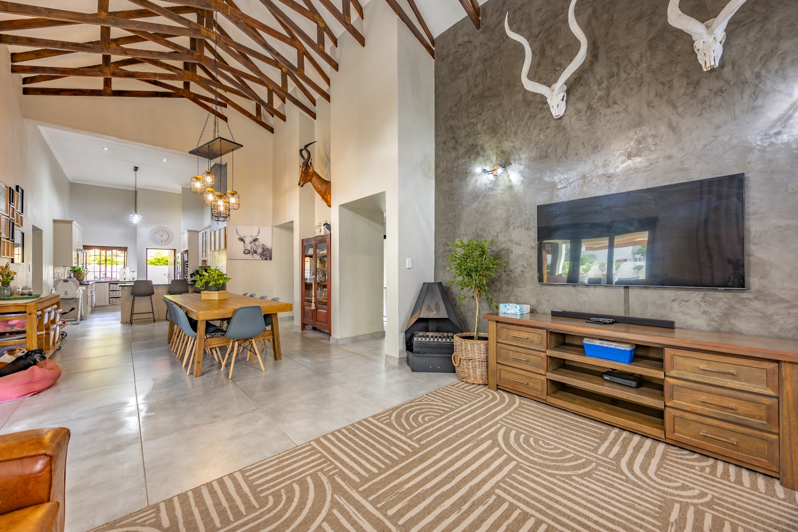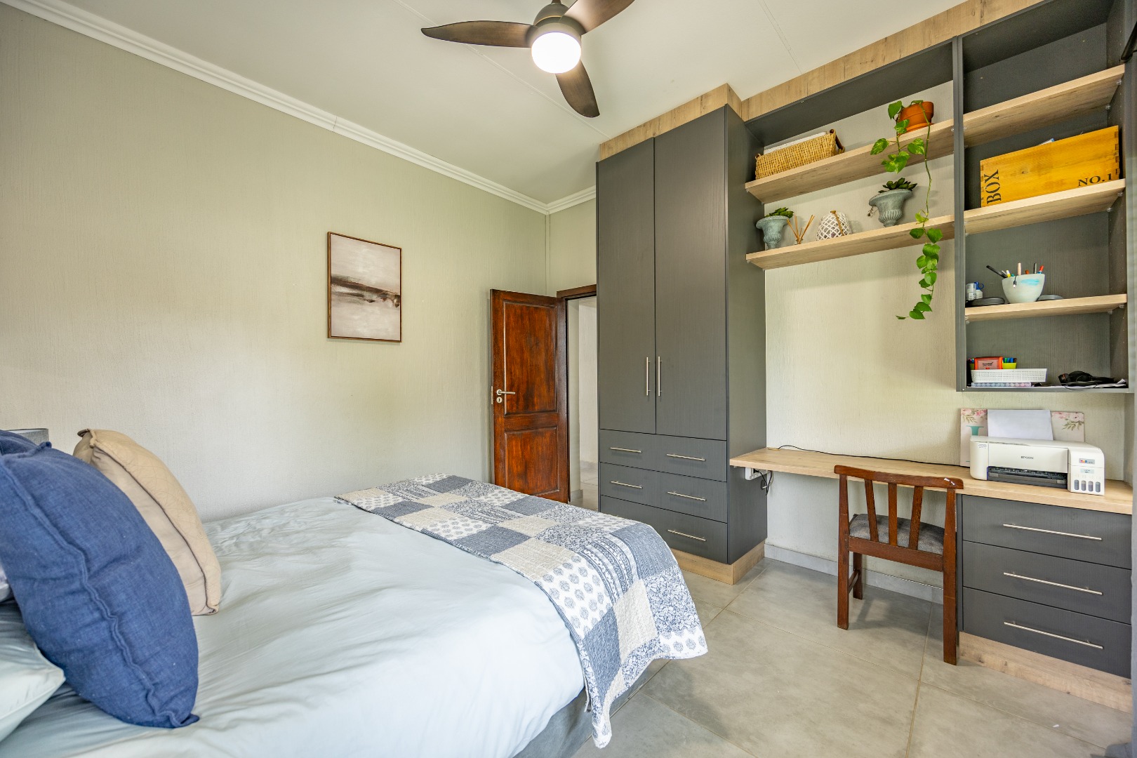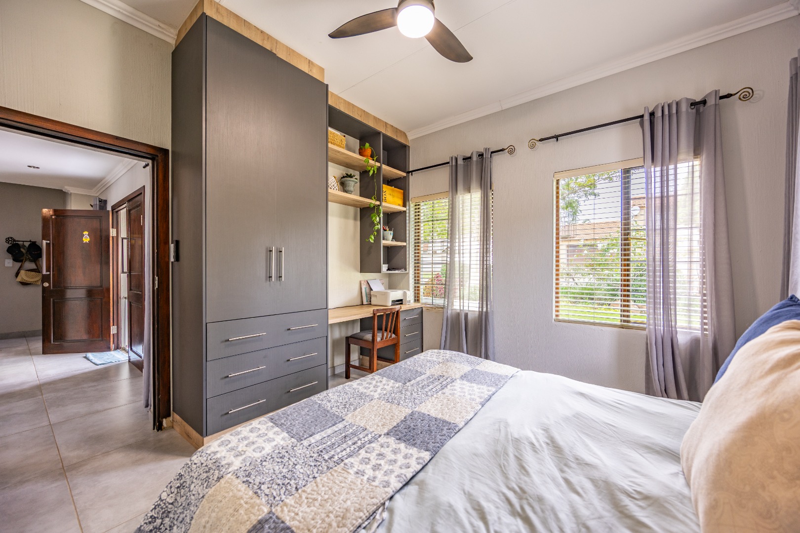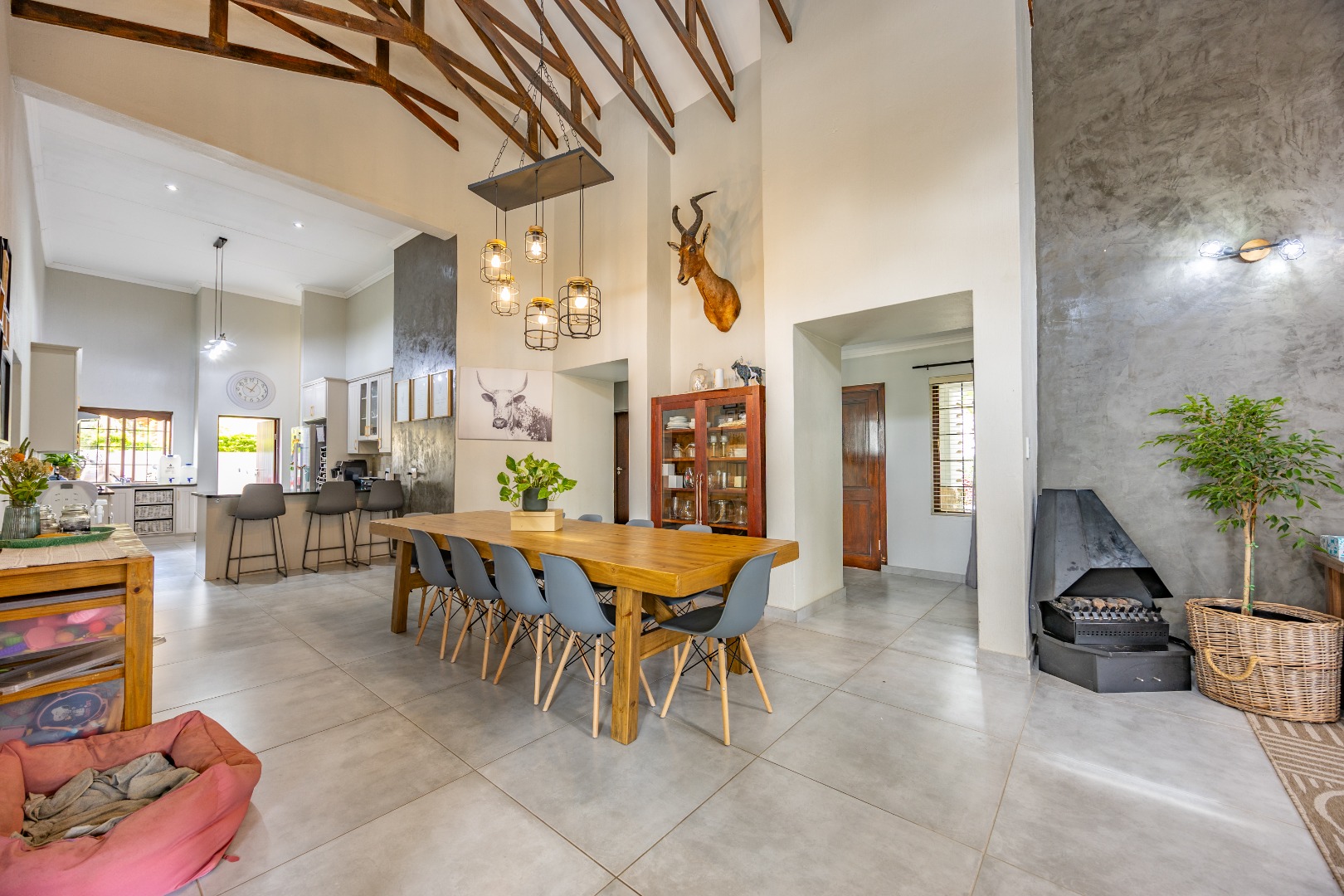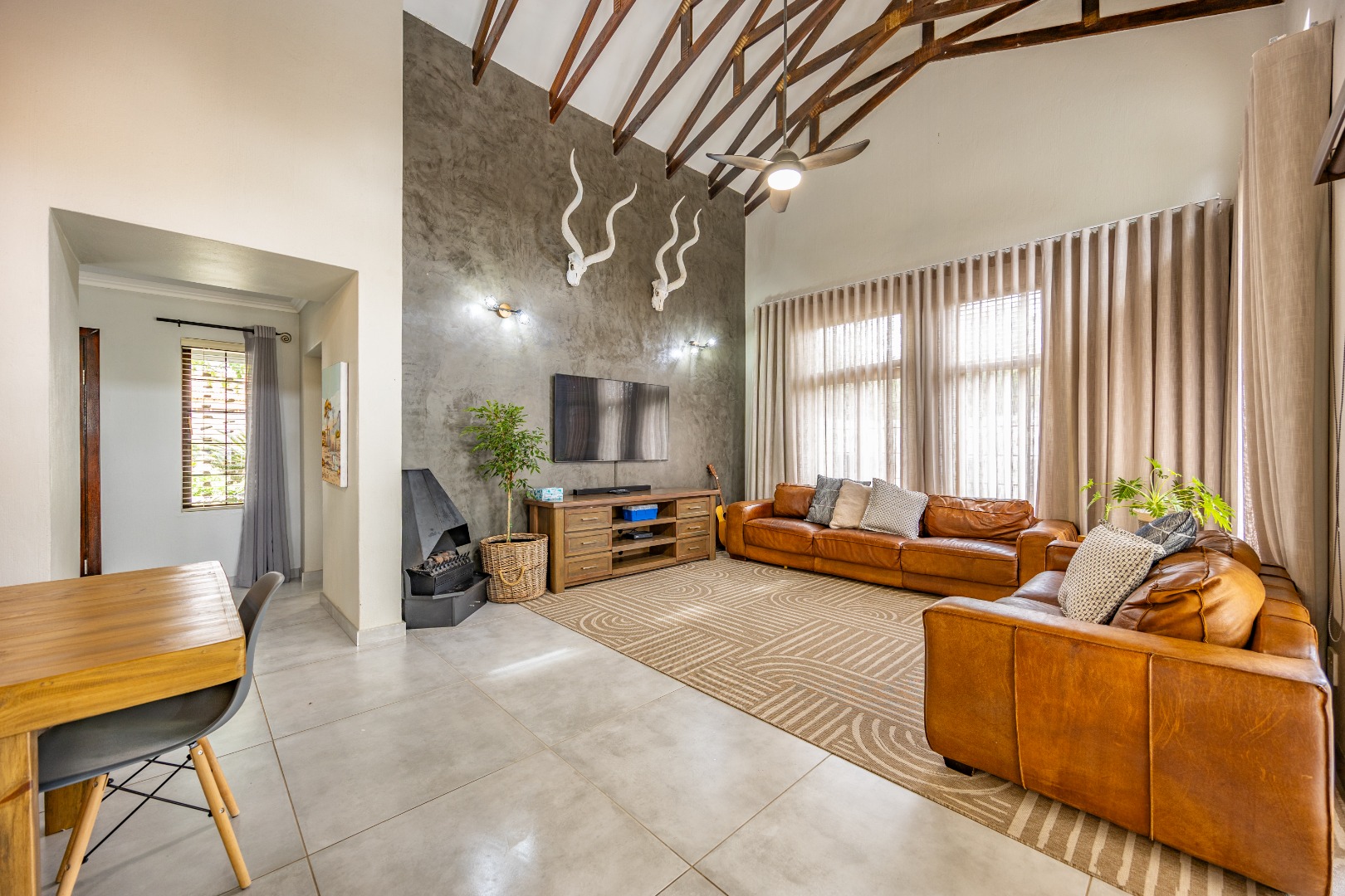 Elegant Comfort, Effortless Living, tucked away in the secure Willow Acres Estate, this beautifully upgraded home offers a seamless blend of family comfort and modern convenience. From the moment you step inside, you’re welcomed by expansive open-plan living areas, centred around a gas fireplace and cooled by a large aircon – perfect for year-round entertaining. The kitchen is a chef’s dream with a gas stove, space for a double fridge, and a generous scullery with a walk-in pantry and room for three appliances. A guest toilet, versatile study or fourth bedroom, and new tiled floors throughout add to the home’s thoughtful design.