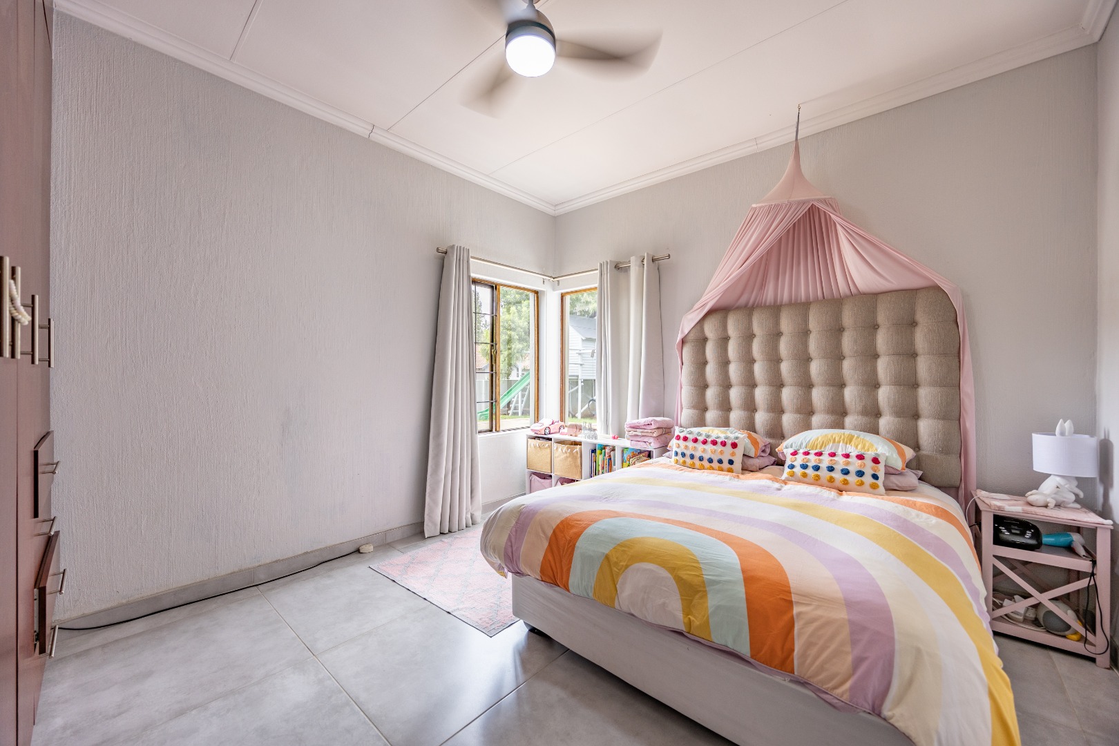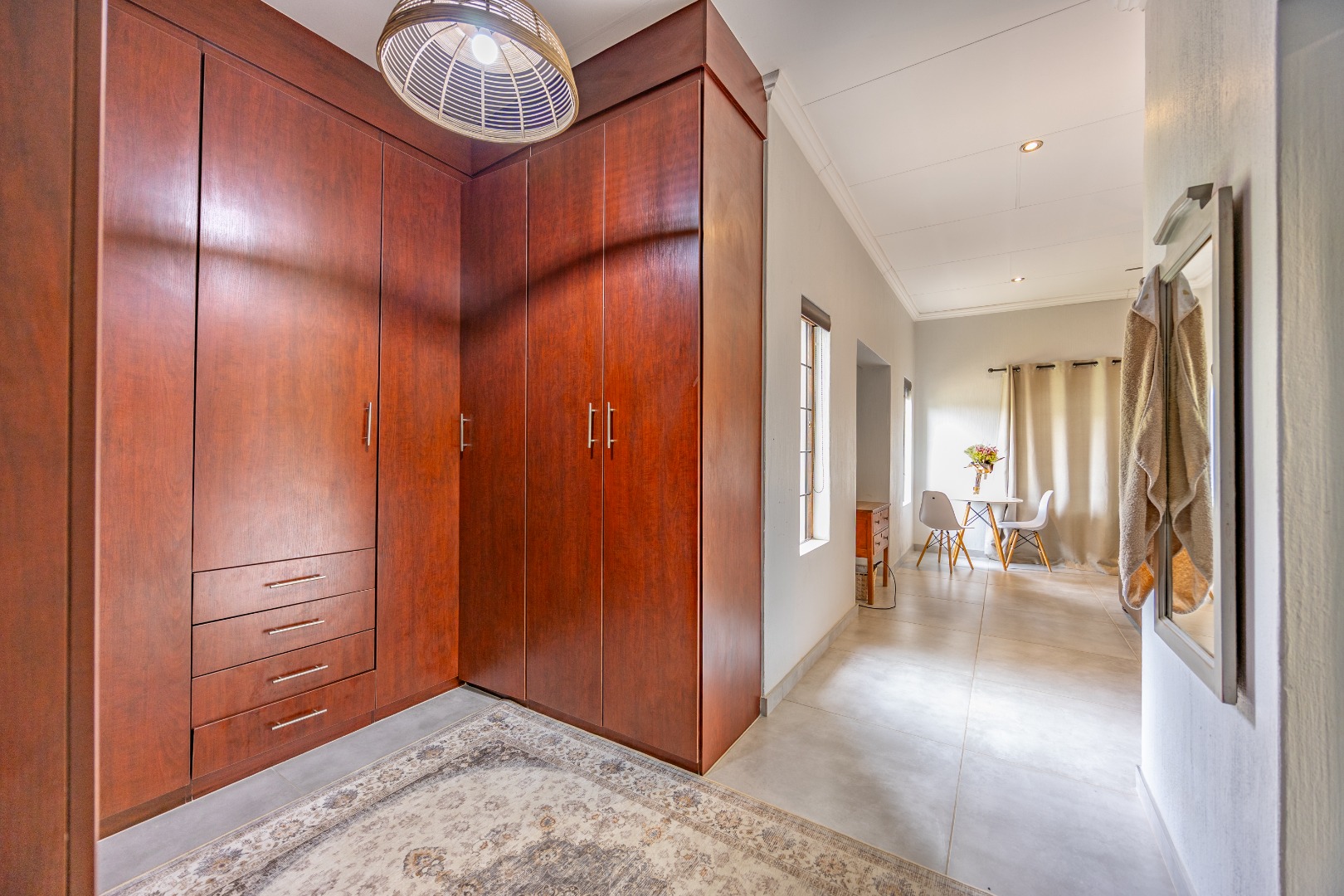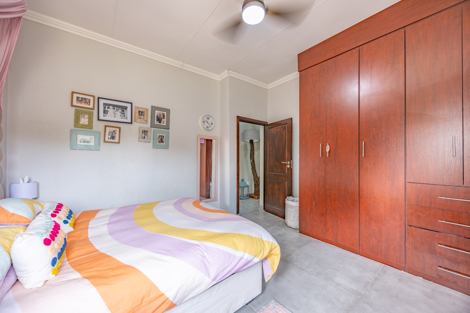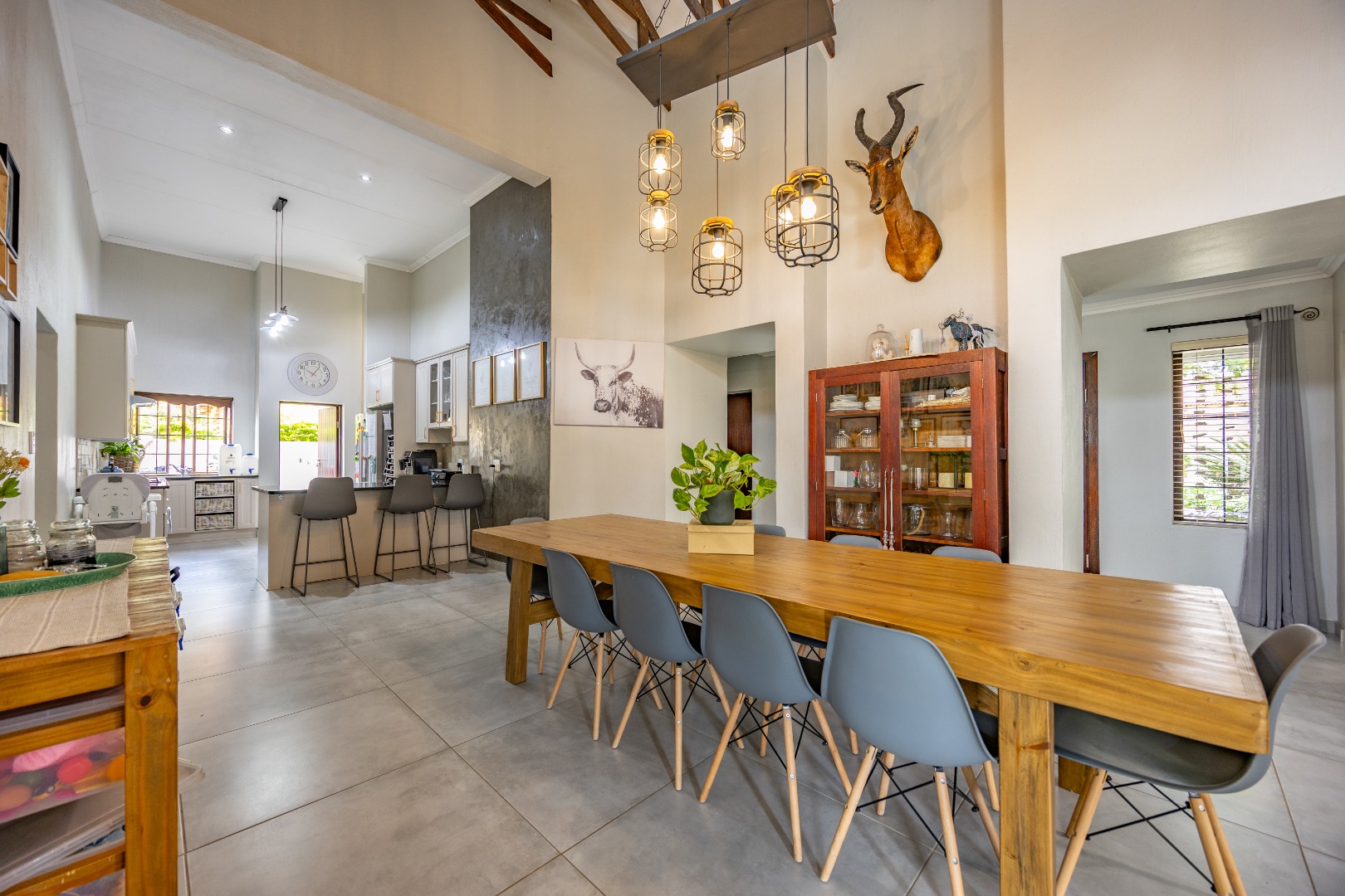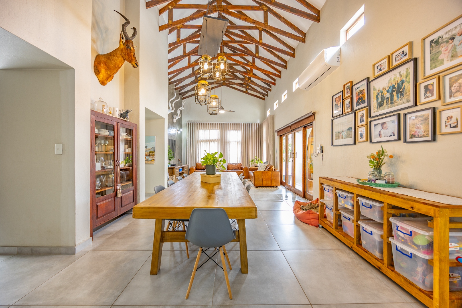 Elegant Comfort, Effortless Living, tucked away in the secure Willow Acres Estate, this beautifully upgraded home offers a seamless blend of family comfort and modern convenience. From the moment you step inside, you’re welcomed by expansive open-plan living areas, centred around a gas fireplace and cooled by a large aircon – perfect for year-round entertaining. The kitchen is a chef’s dream with a gas stove, space for a double fridge, and a generous scullery with a walk-in pantry and room for three appliances. A guest toilet, versatile study or fourth bedroom, and new tiled floors throughout add to the home’s thoughtful design.