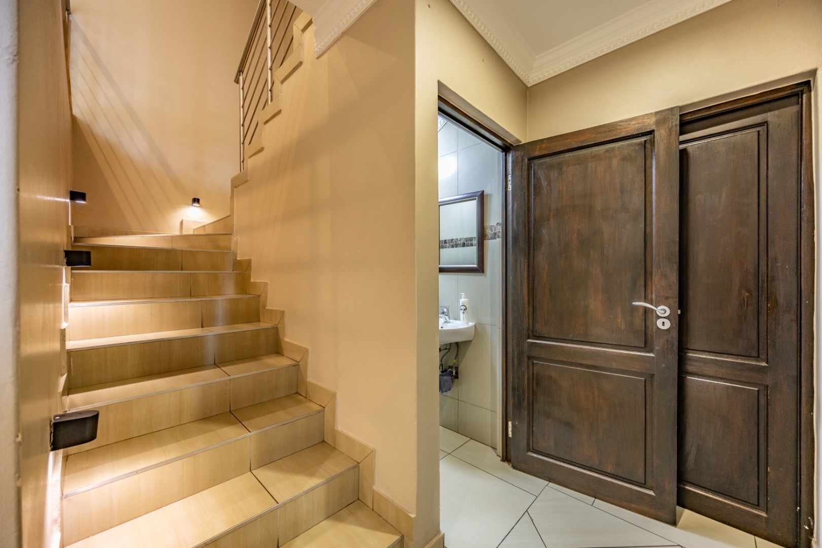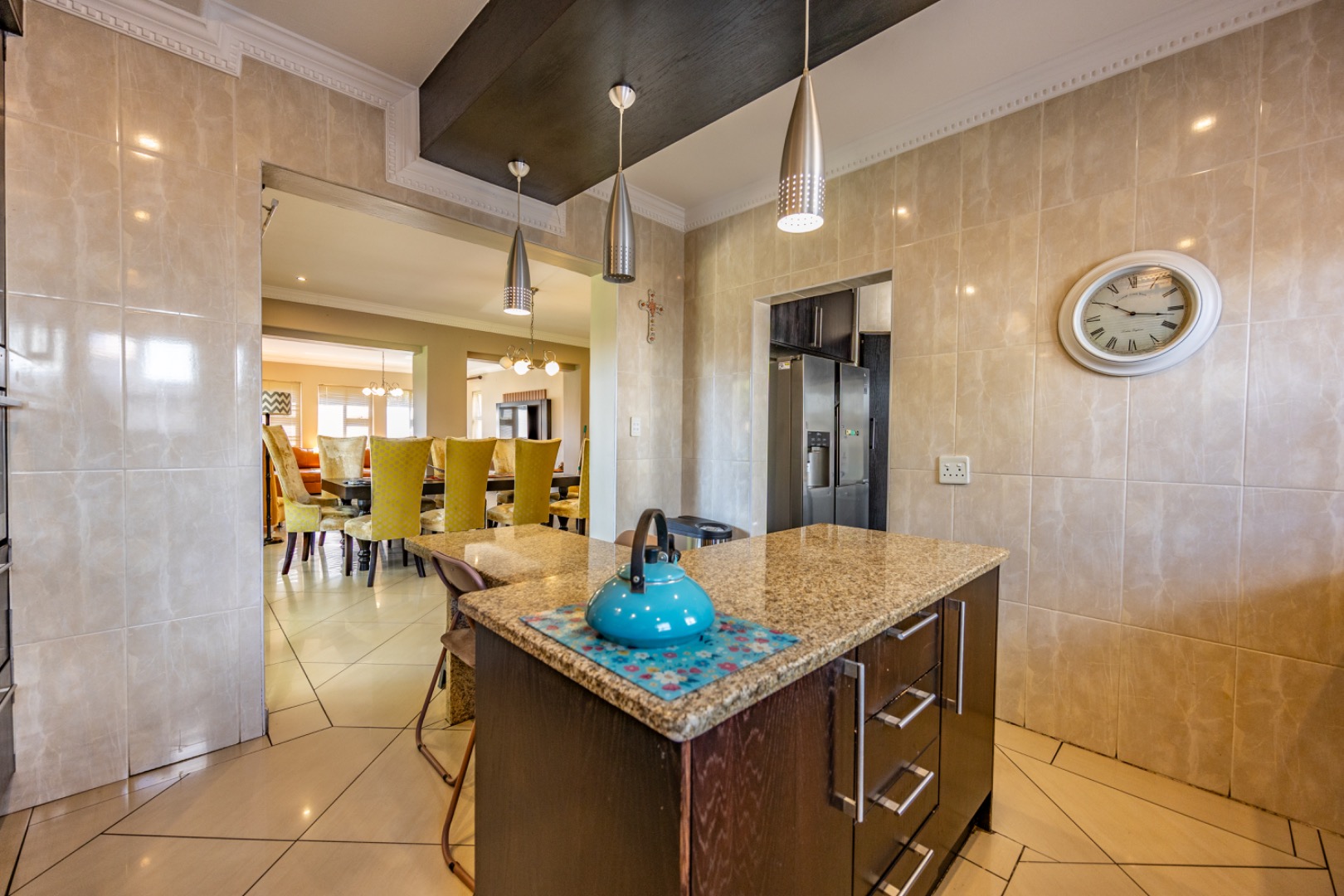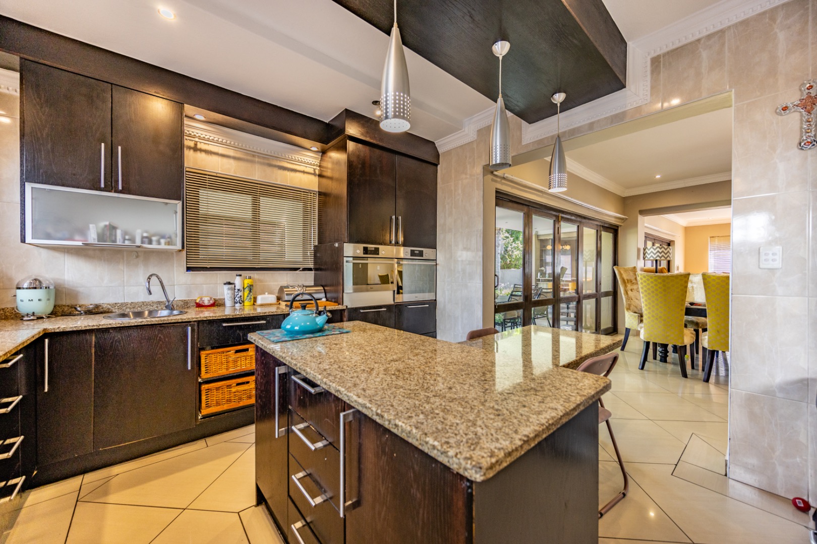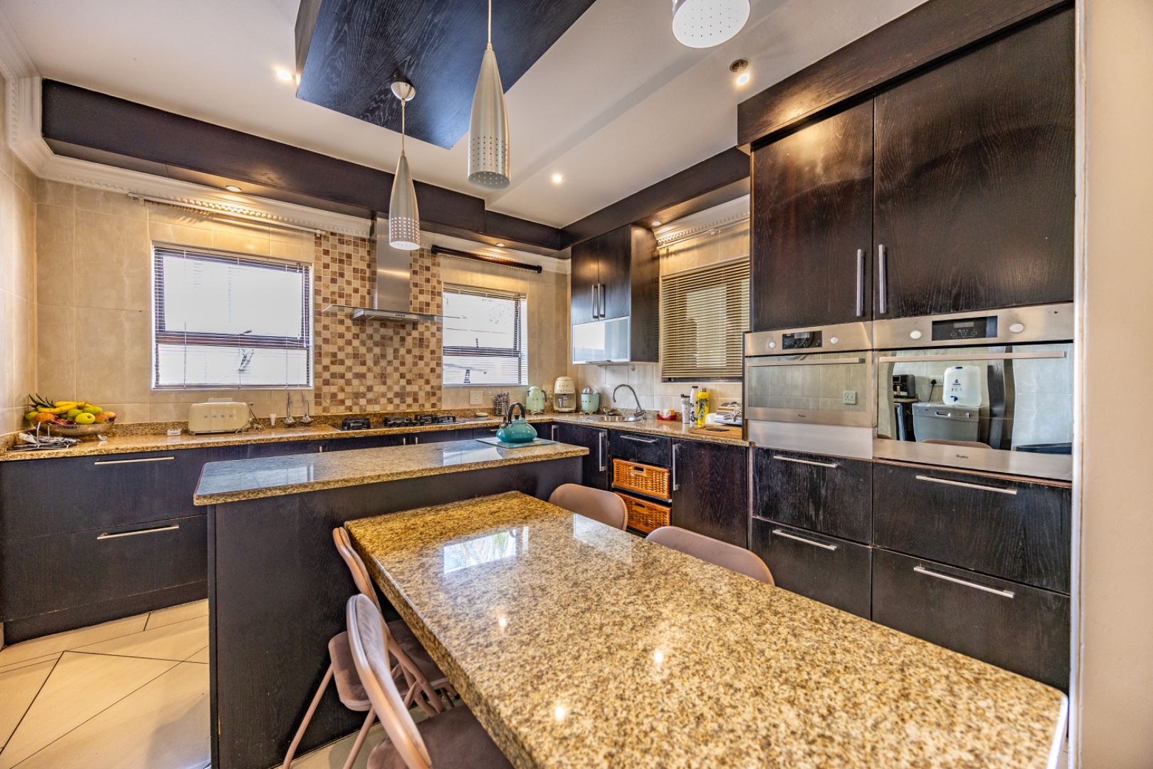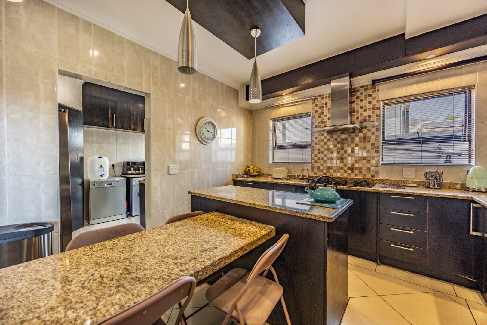 Set on an expansive 880 sqm erf, the outdoor area is a private oasis. Enjoy leisurely days by the swimming pool, relax on the patio, or cultivate the established garden. Ample parking is provided with three garages and an additional six open parking spaces, accommodating multiple vehicles. The property is pet-friendly, allowing furry companions to enjoy the space.